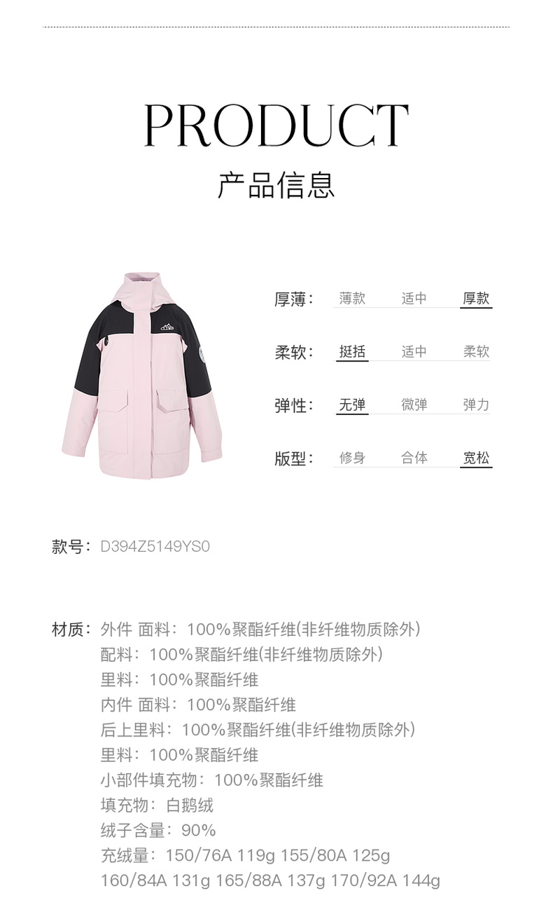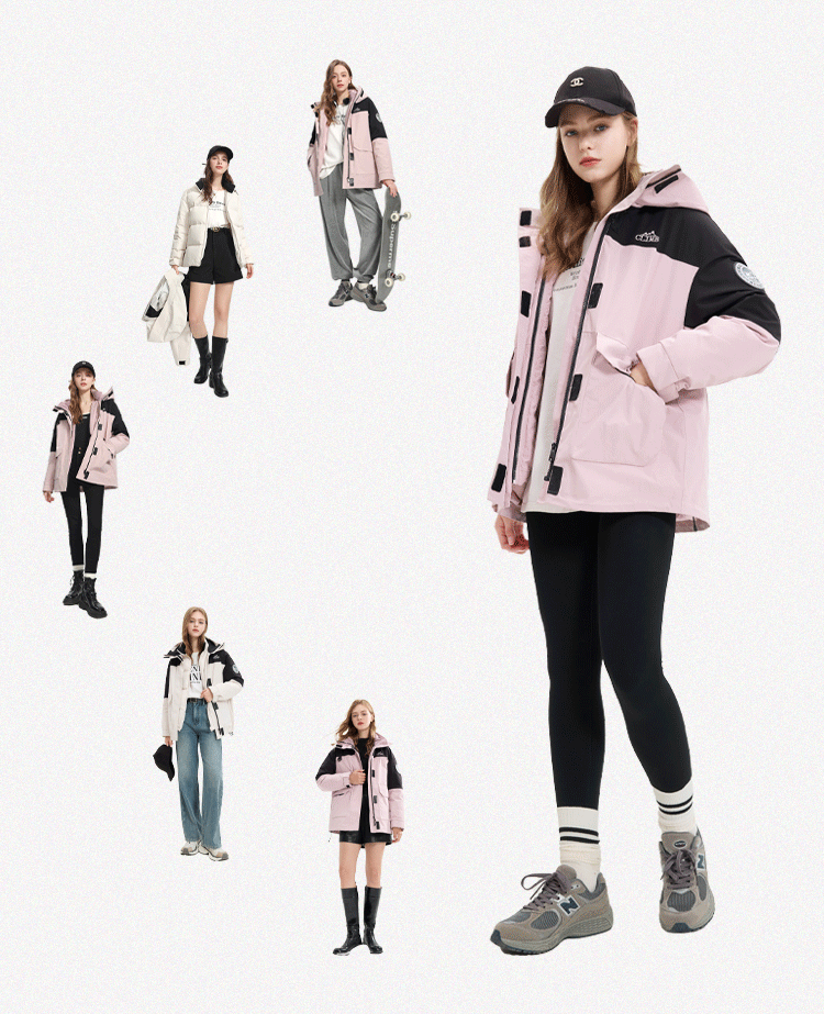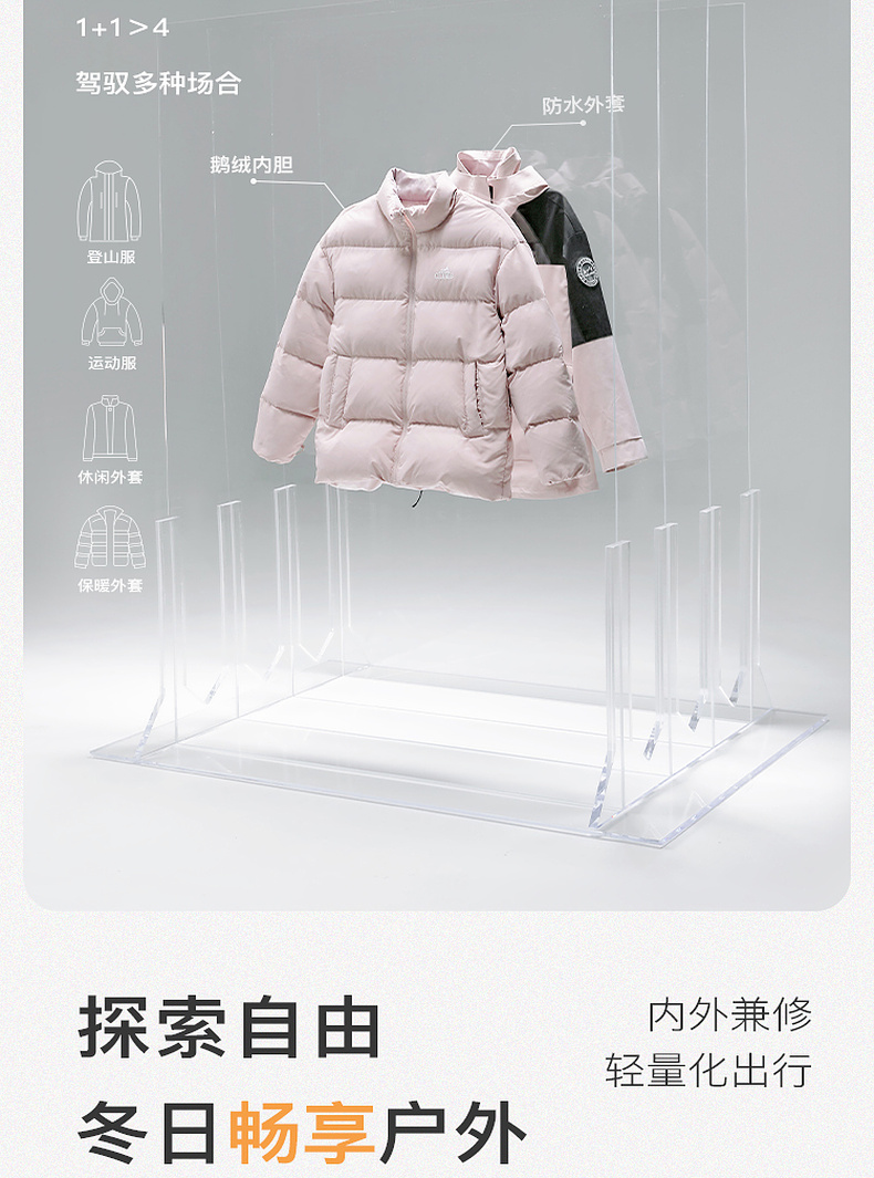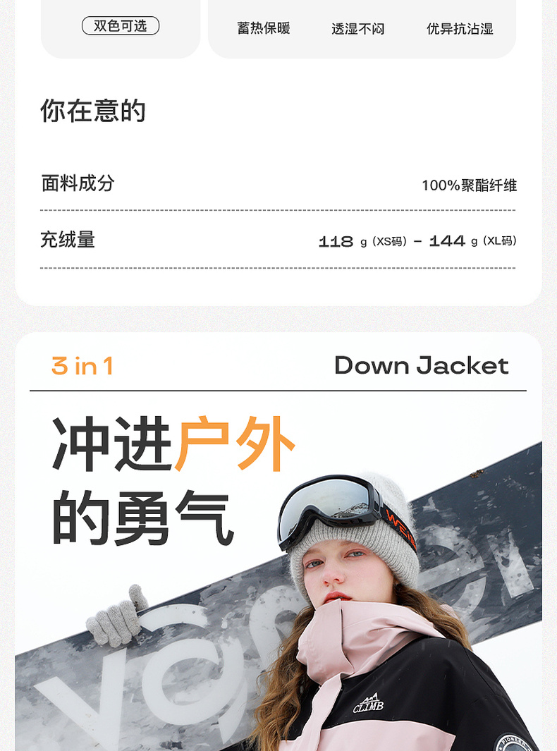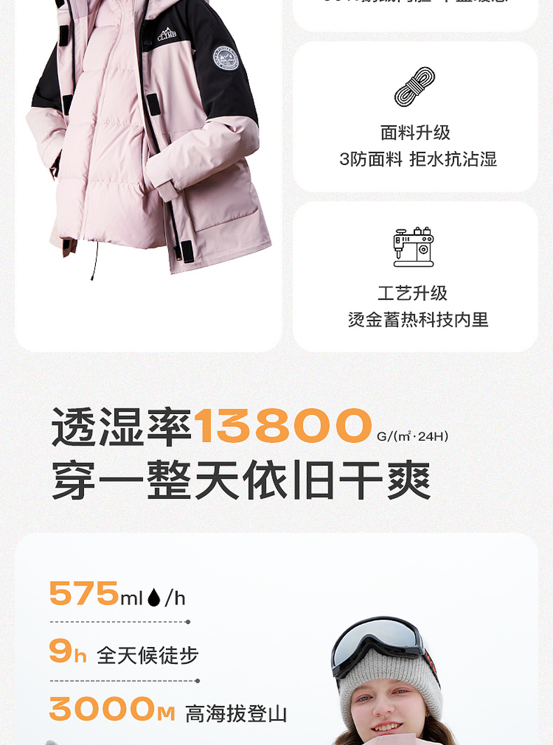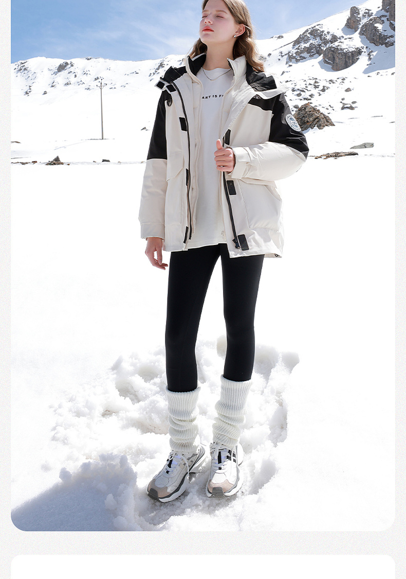 【一件抵3件】三彩冬季新款极寒鹅绒服两件套冲锋衣工装风三防羽绒服户外女M