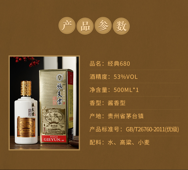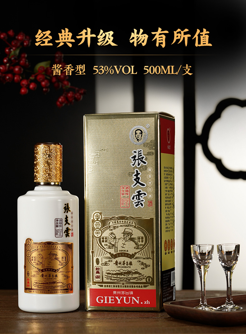 【張支雲】酱香型 白酒贵州茅台镇粮食酒高粱酒坤沙酒白酒礼盒 53度 500mL 1瓶 经典升级版