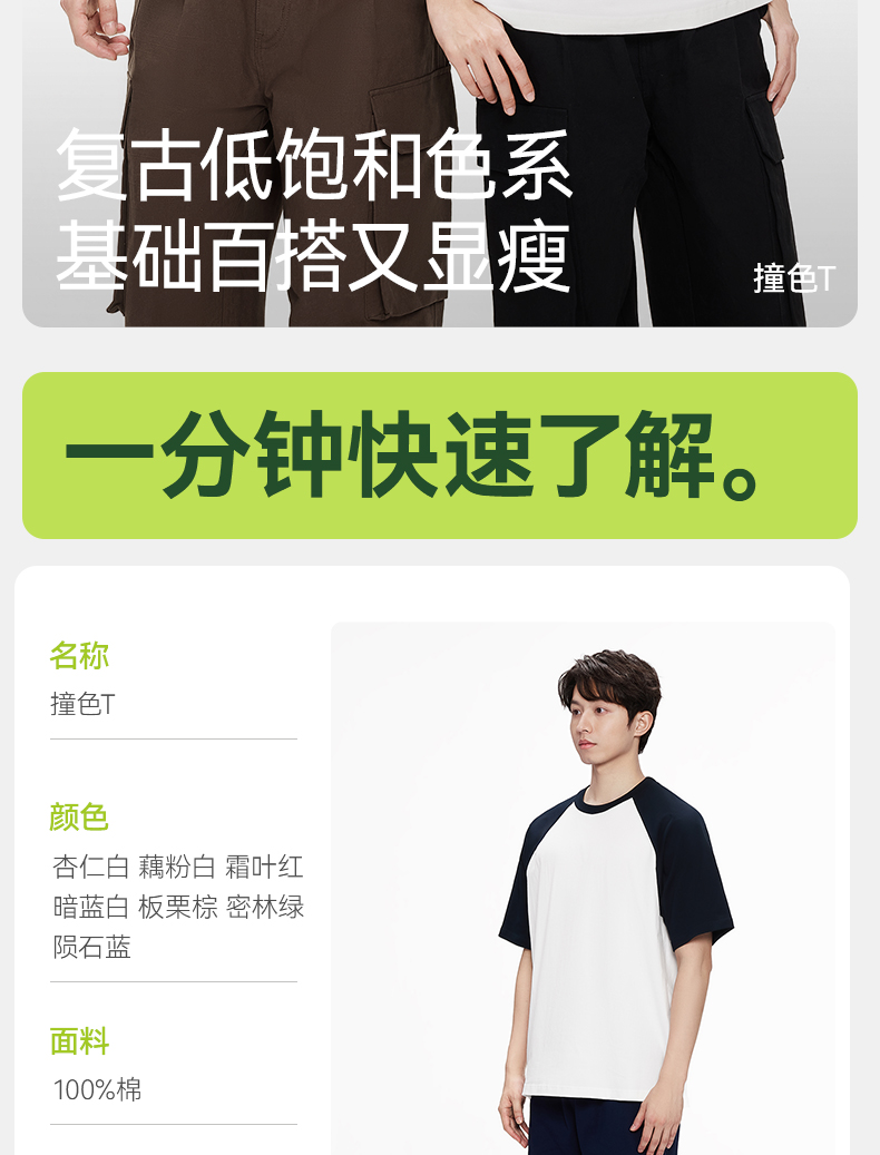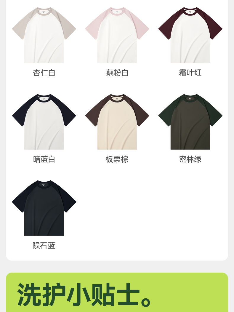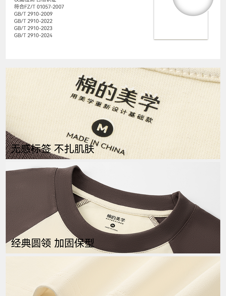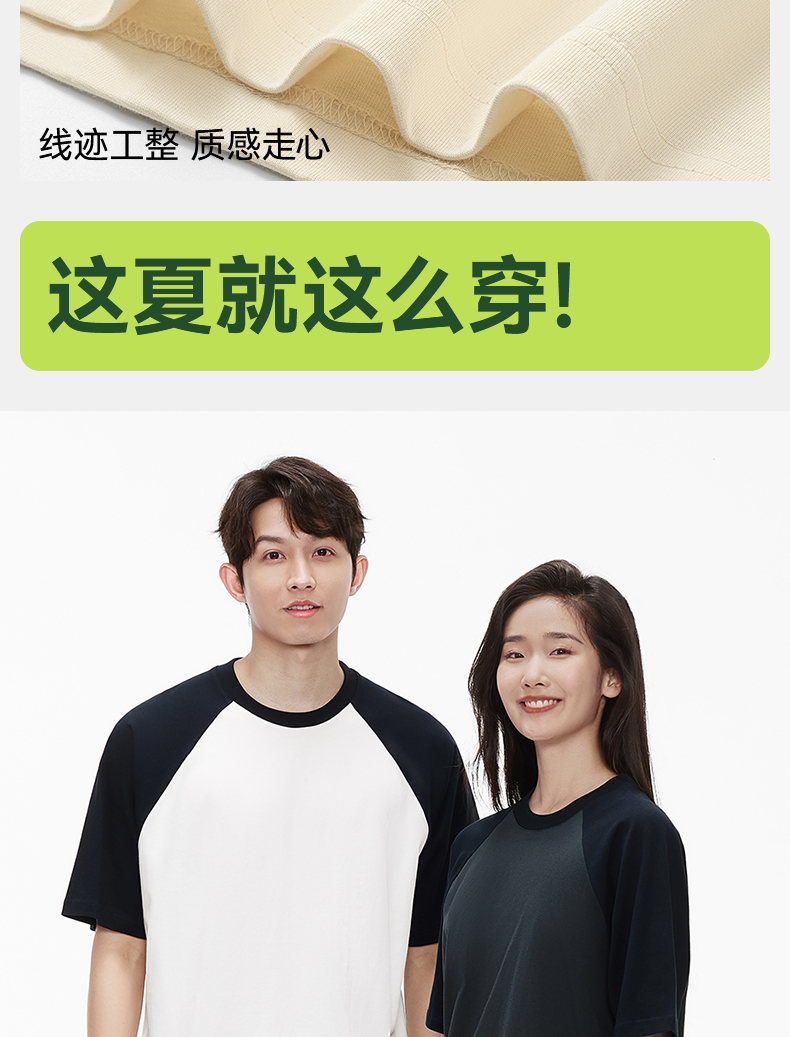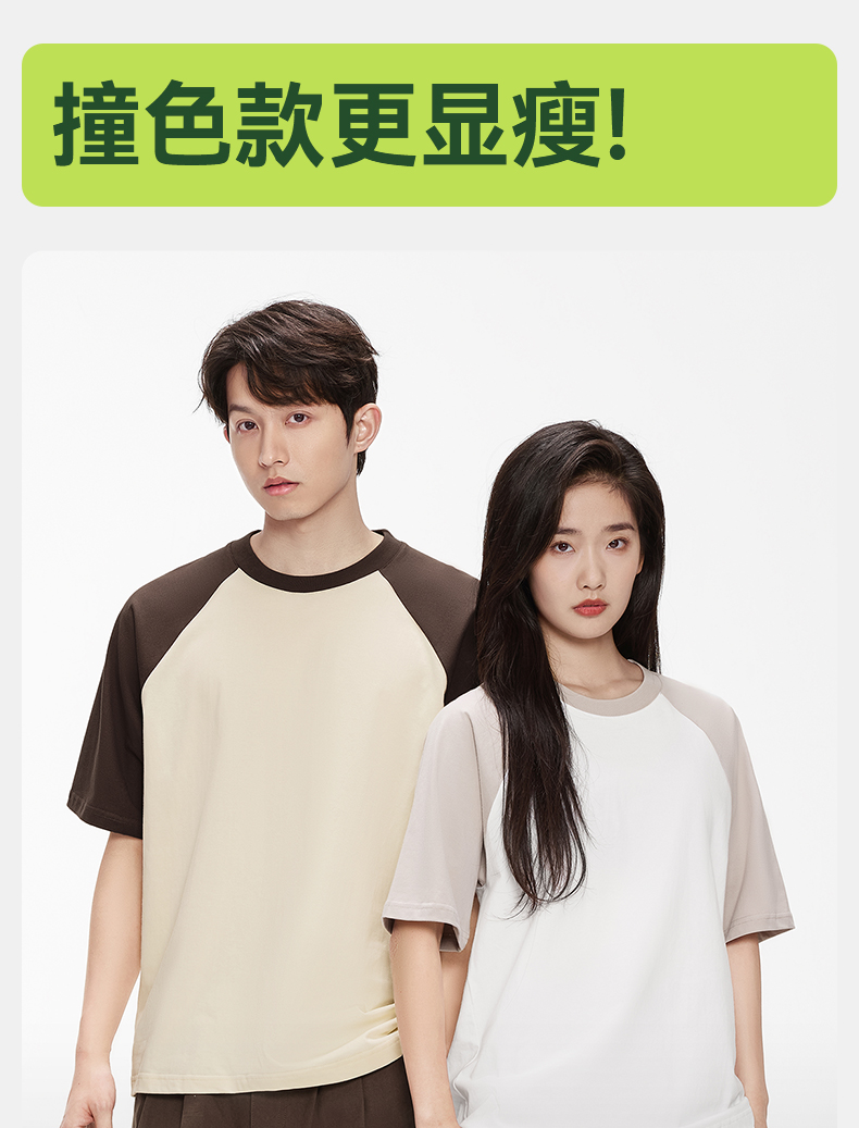 「棉的美学」重磅纯棉插肩短袖t恤男女同款 休闲显瘦百搭打底衫