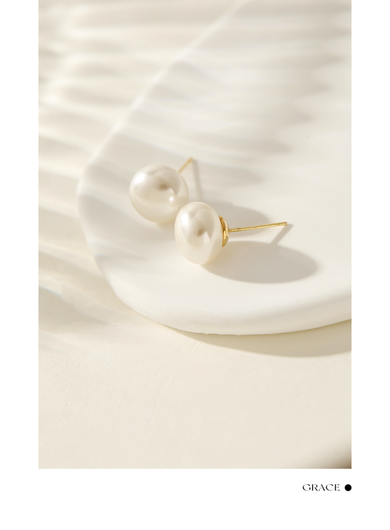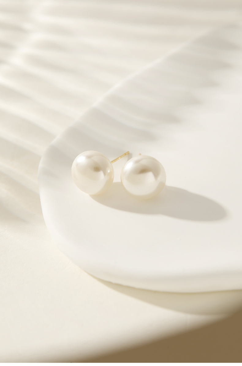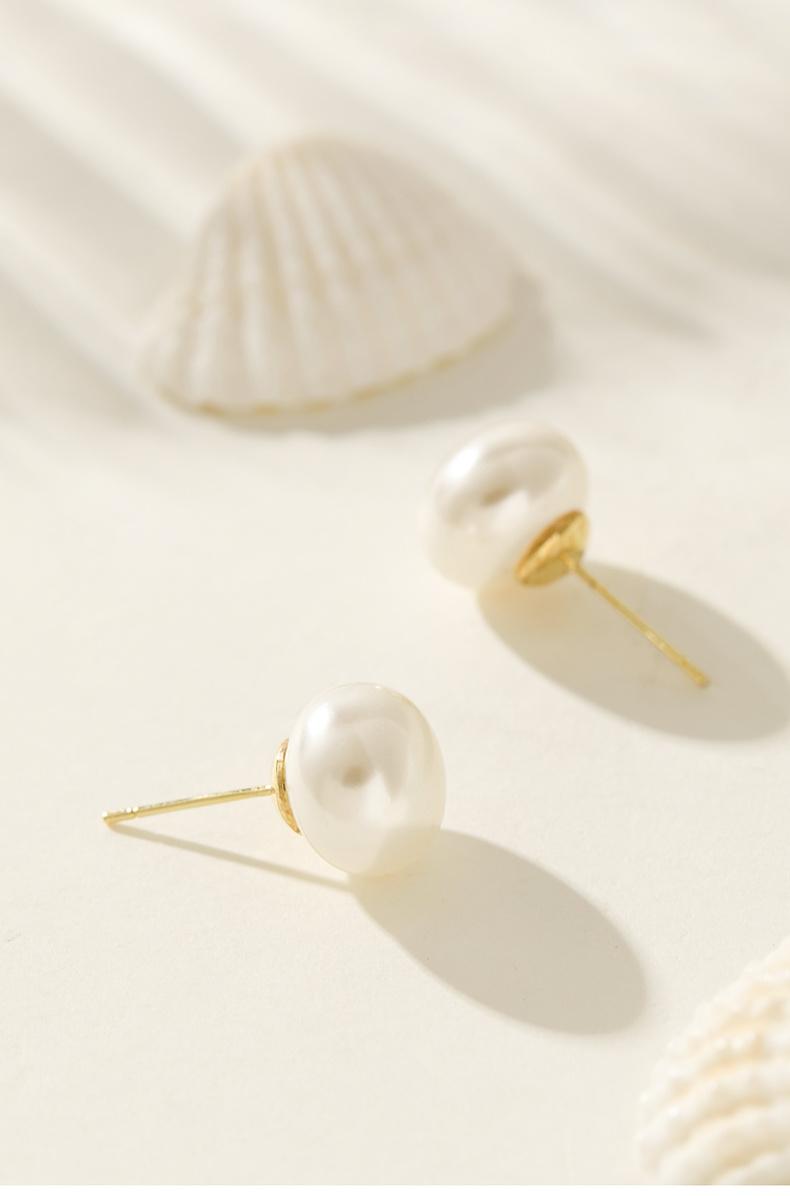 三彩2025新款法式简约通勤轻奢珠光合成面包珍珠女式耳钉耳饰养耳