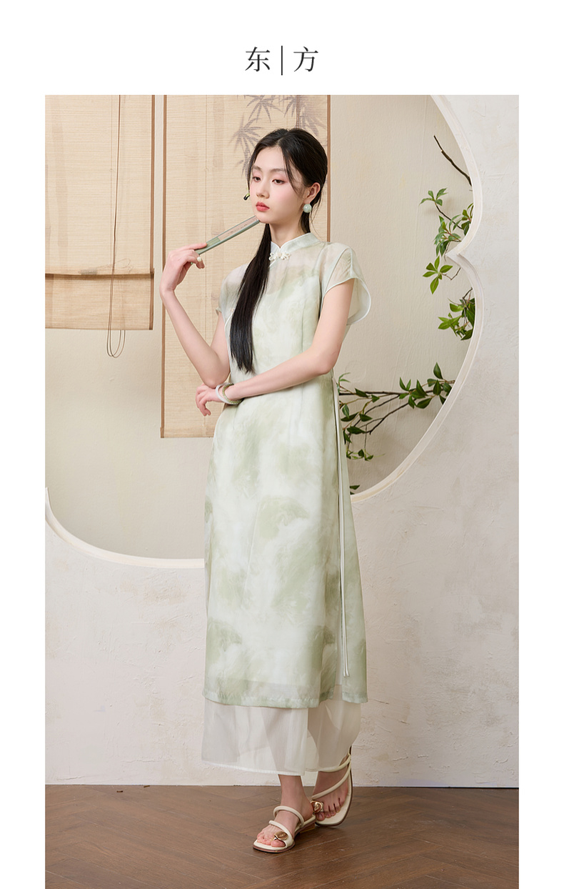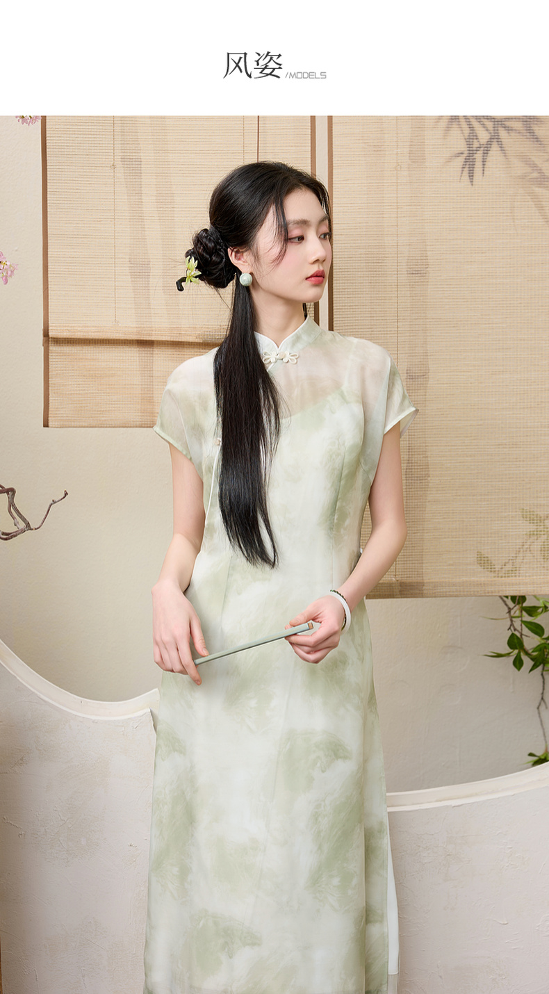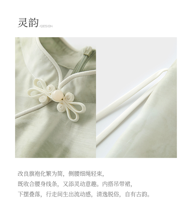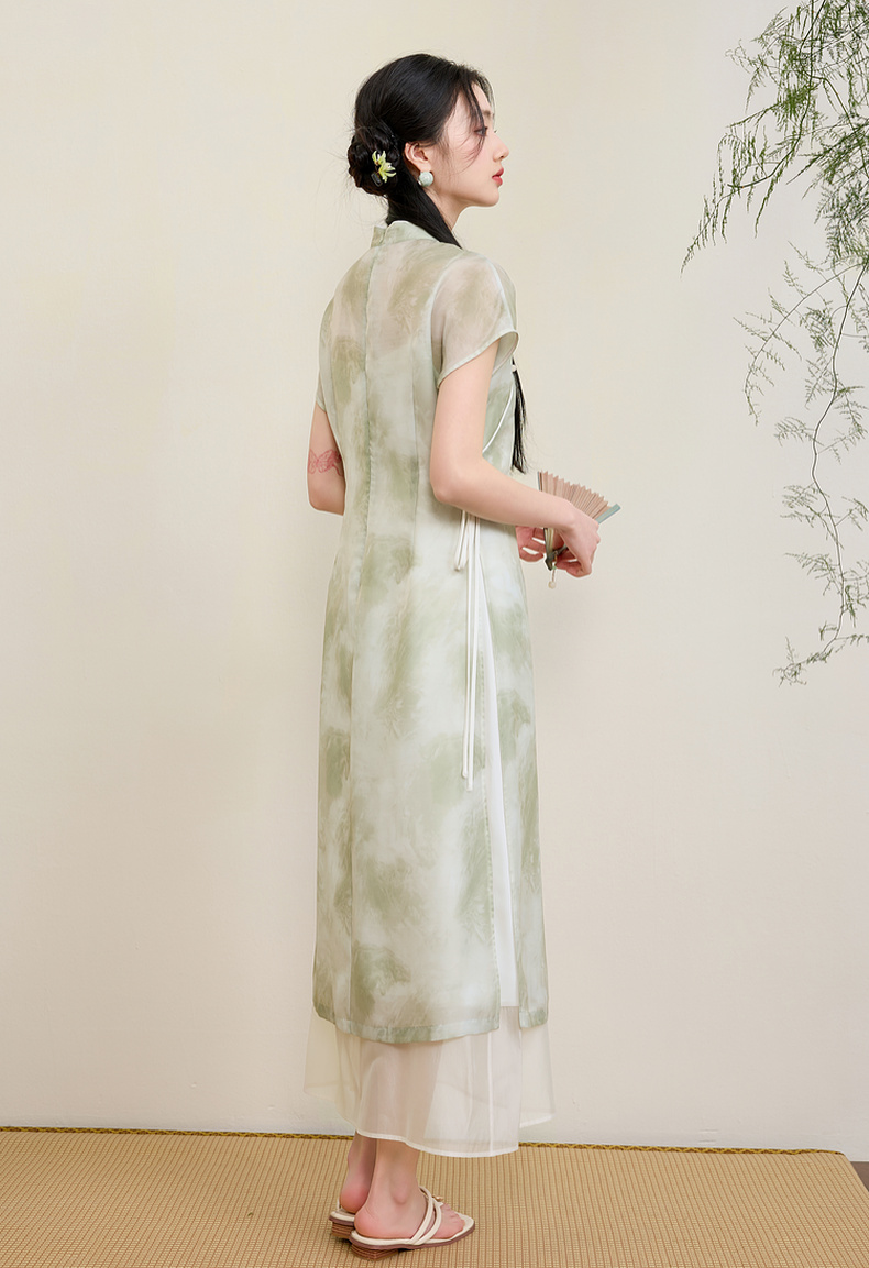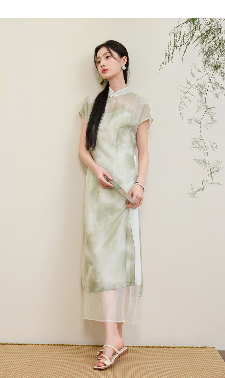 三彩【翠烟疏影】2025夏季新款新中式连衣裙盘扣长裙两件套C