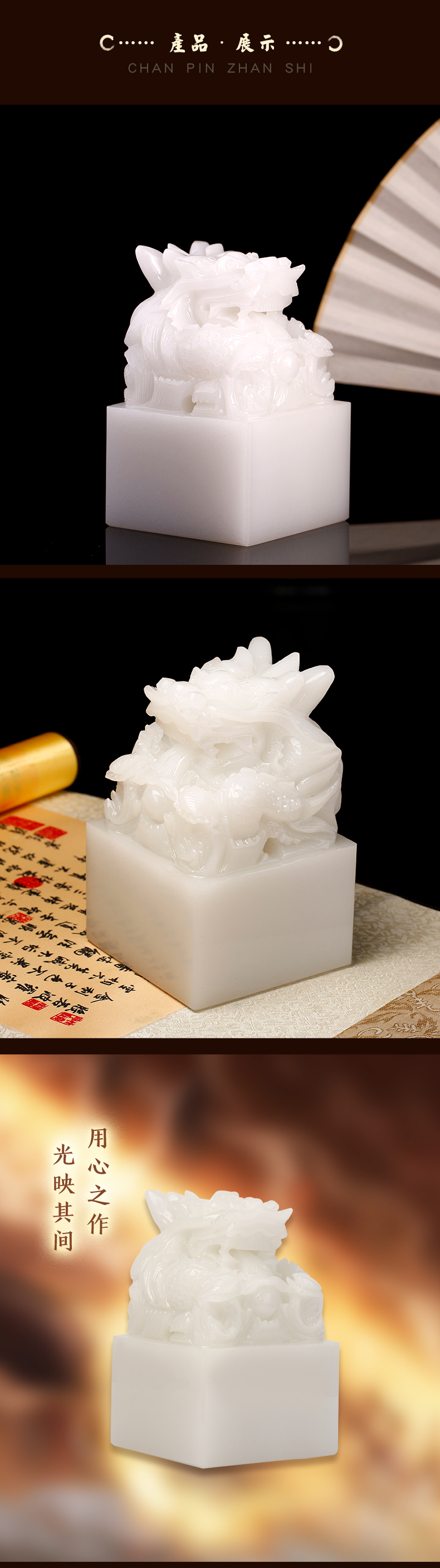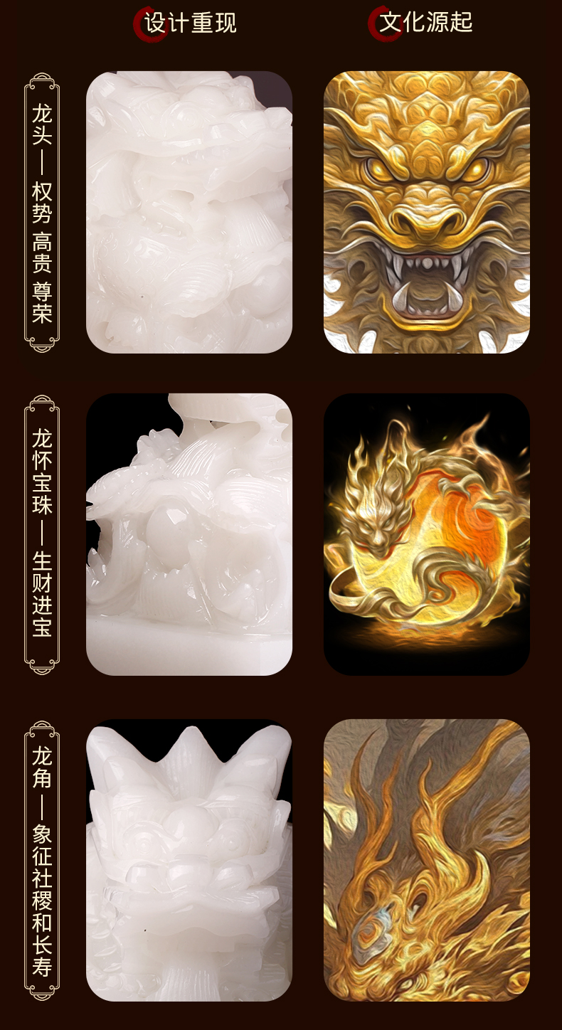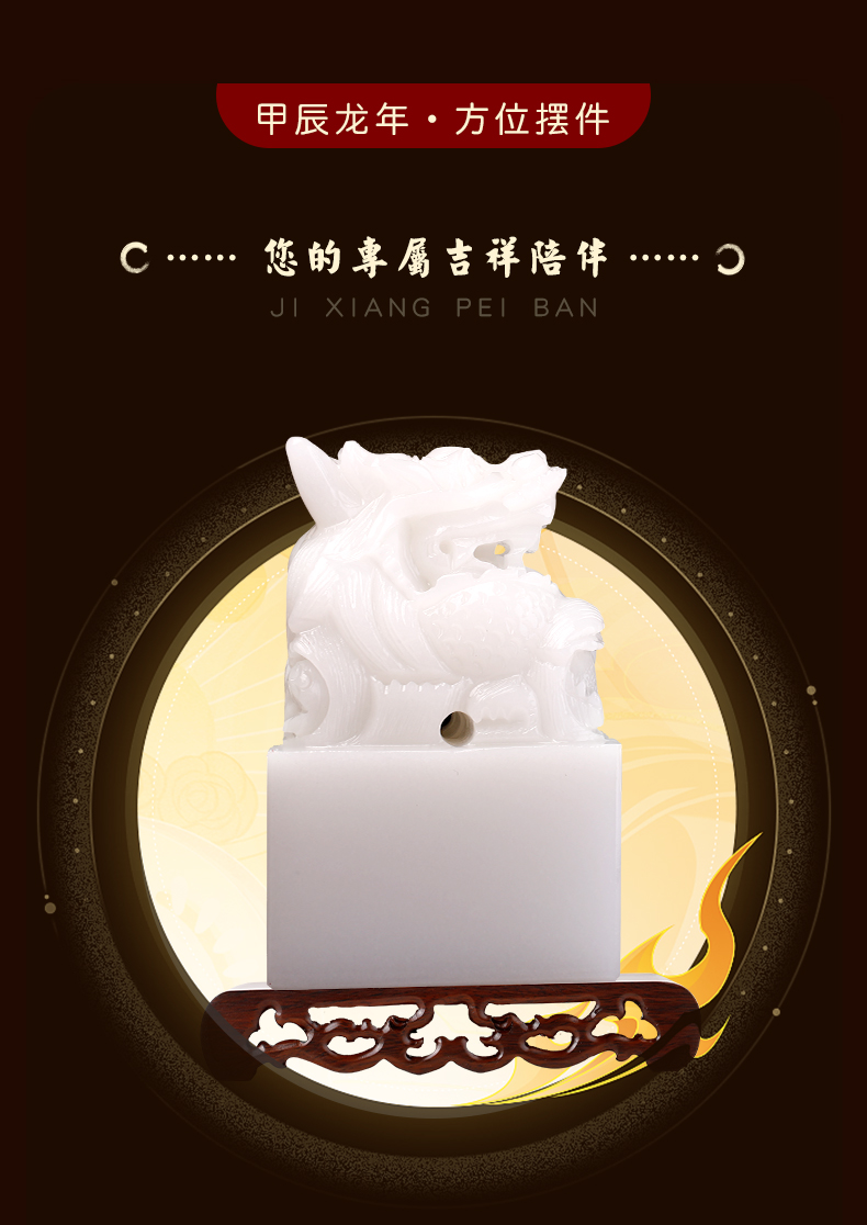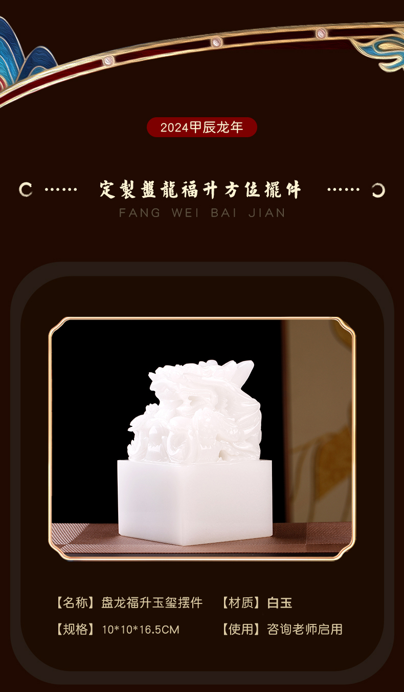 慈元阁2024年方位吉祥物新年礼物盘龙福升玉玺摆件家居玄关礼物