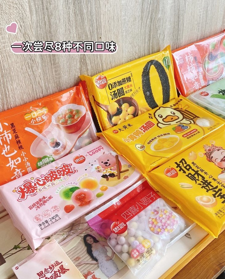 🎁礼盒 8 种口味一次集齐,承包你整个秋冬的甜: 🔺0蔗糖大黄米黑芝麻汤圆 🔺B.DUCK 小黄鸭联名汤圆 🔺龙井茶汤圆 🔺L00PY联名爆心啵啵百搭水晶小汤圆 🔺黑芝麻开心果元宝汤圆 🔺柿柿如意黑芝麻汤圆 🔺小柿也如意黑芝麻核桃小小汤圆 🔺四喜小圆子125g*1