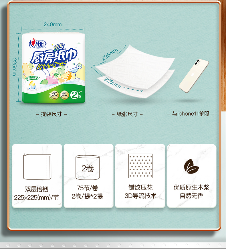 心相印 纸巾 KT102(箱装)厨房纸巾75节×8卷