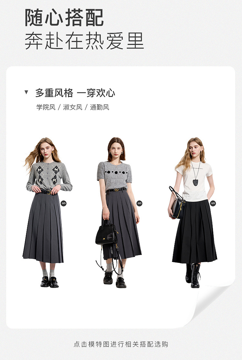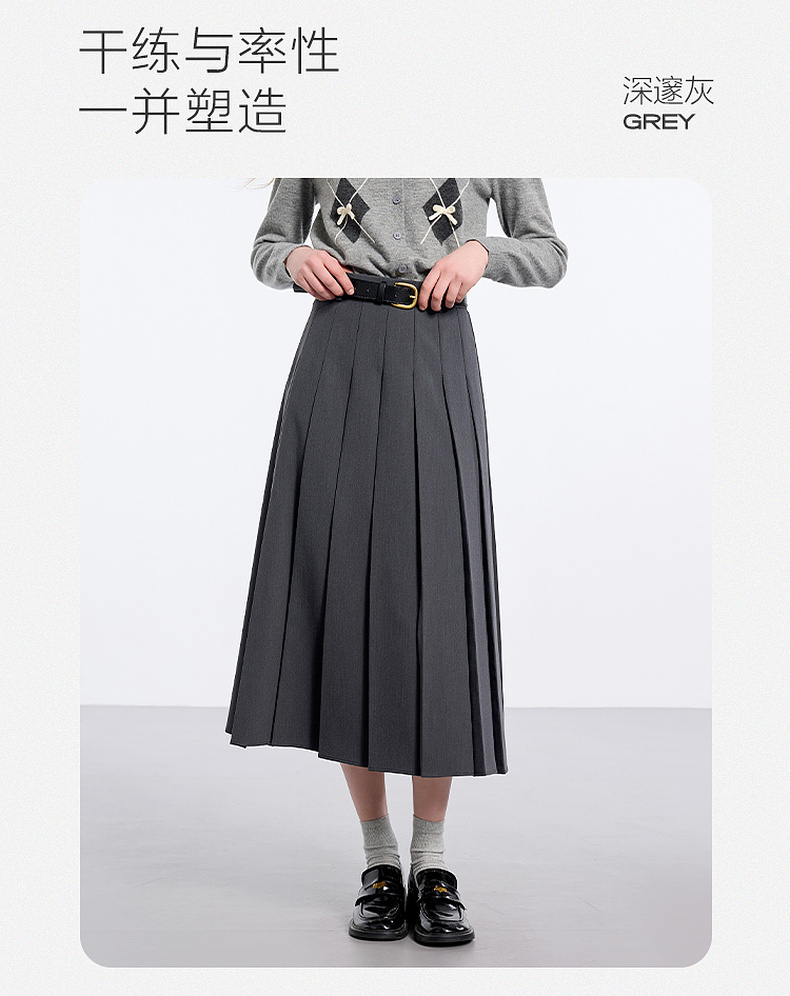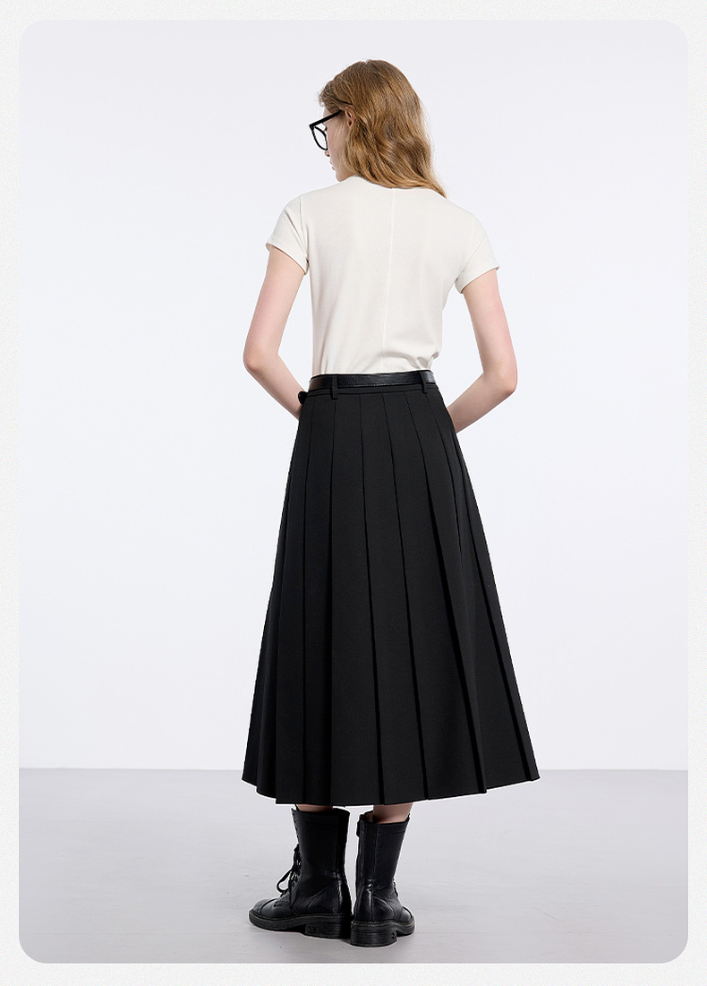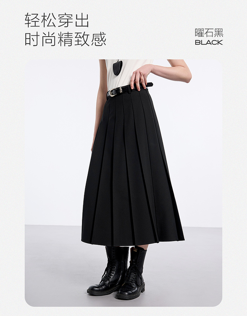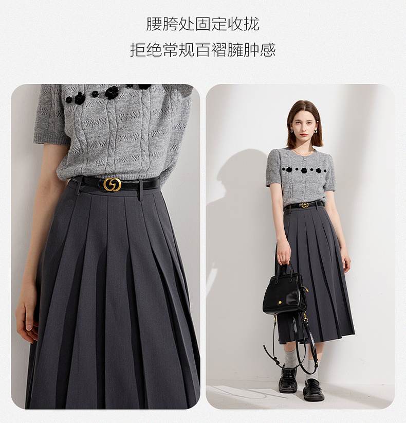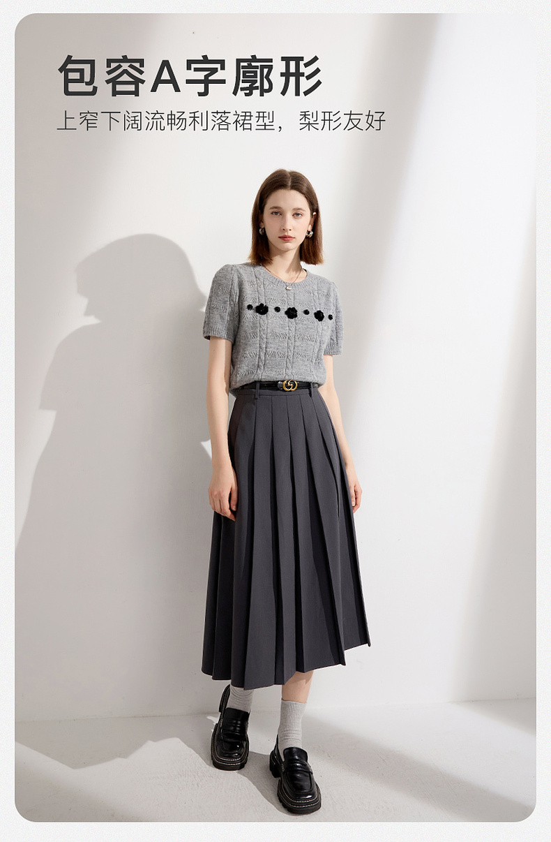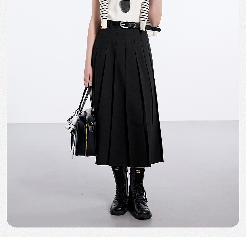 三彩2025春季新款复古高腰长款伞裙百褶裙半身裙A字裙小个子M