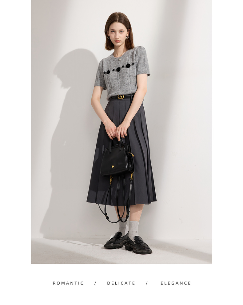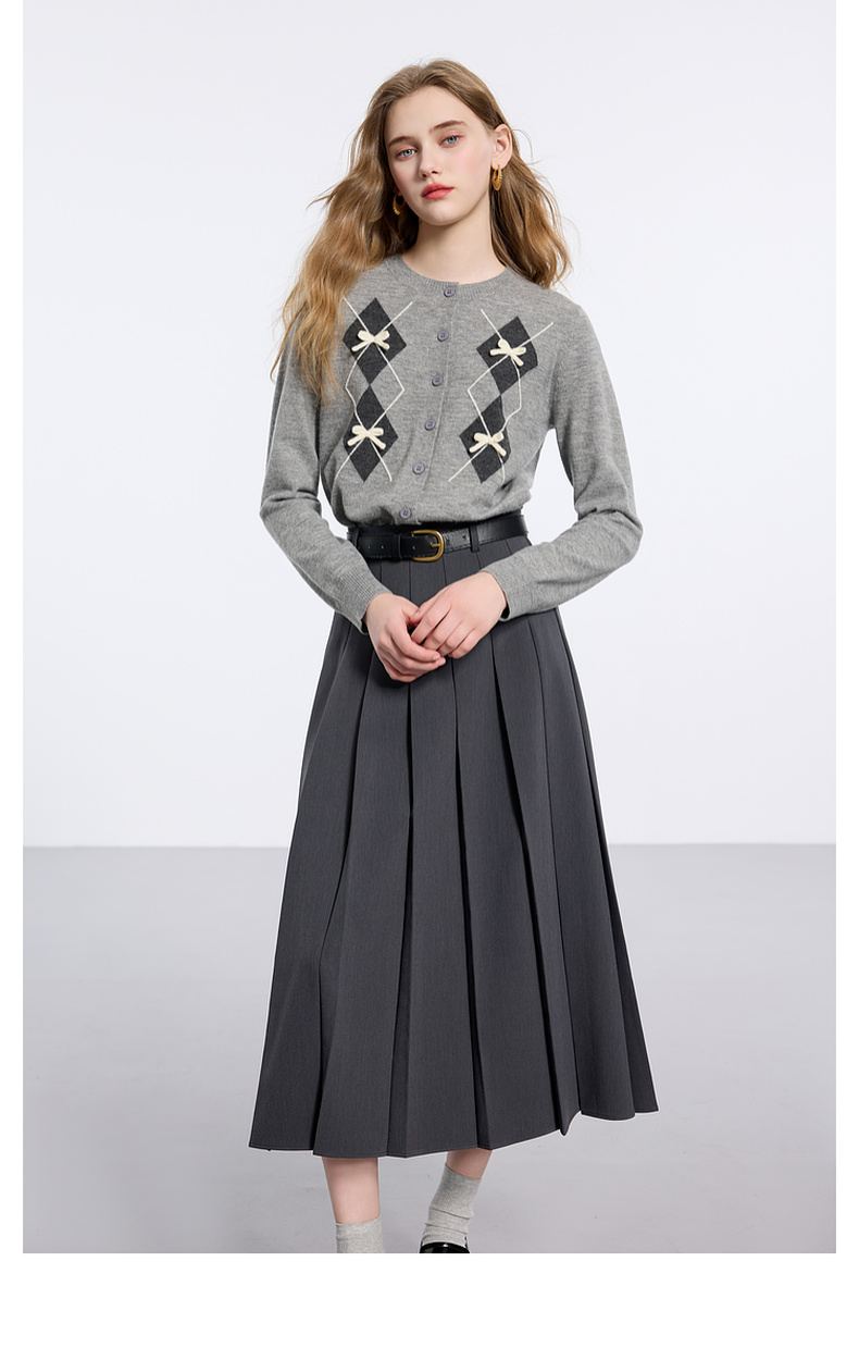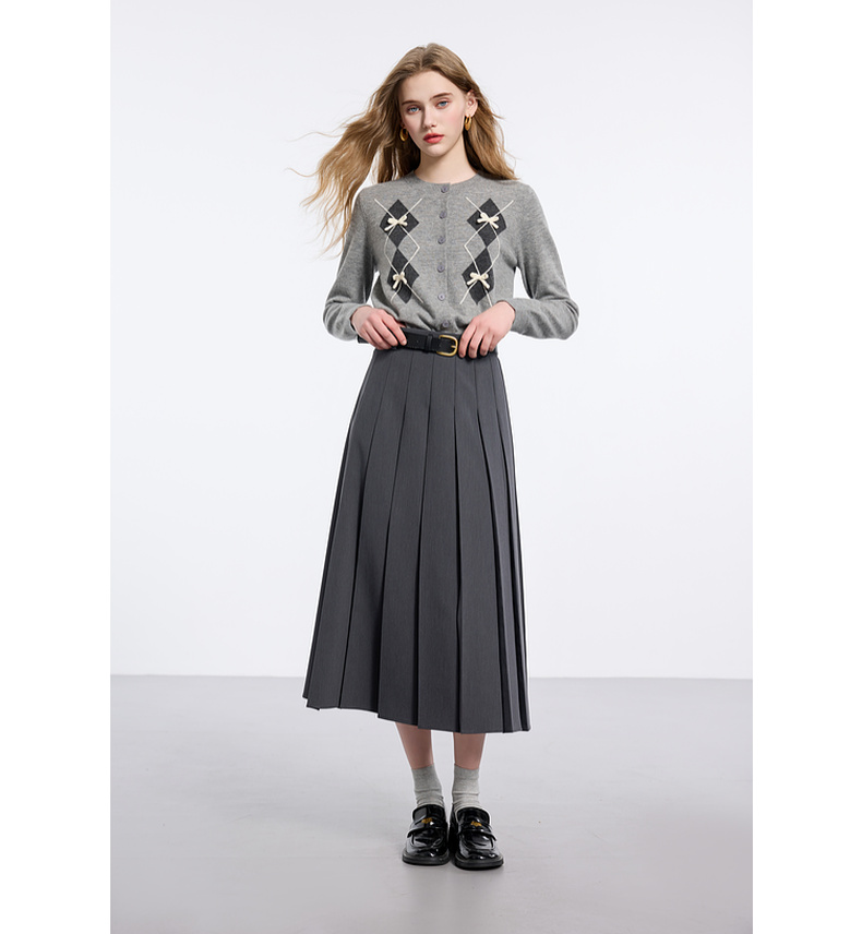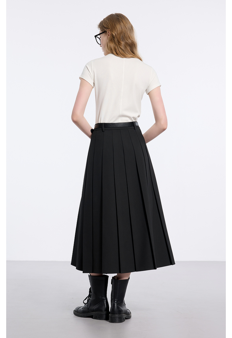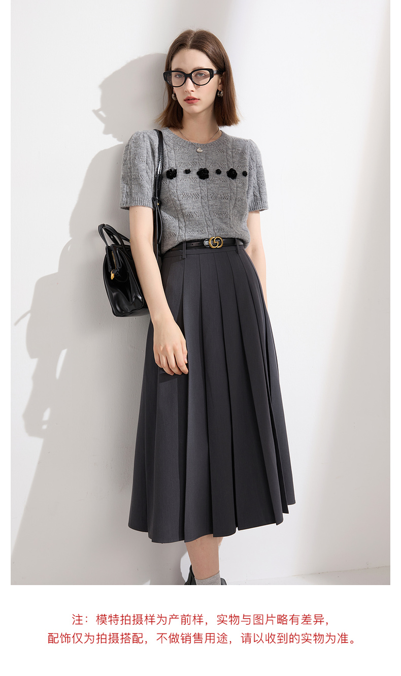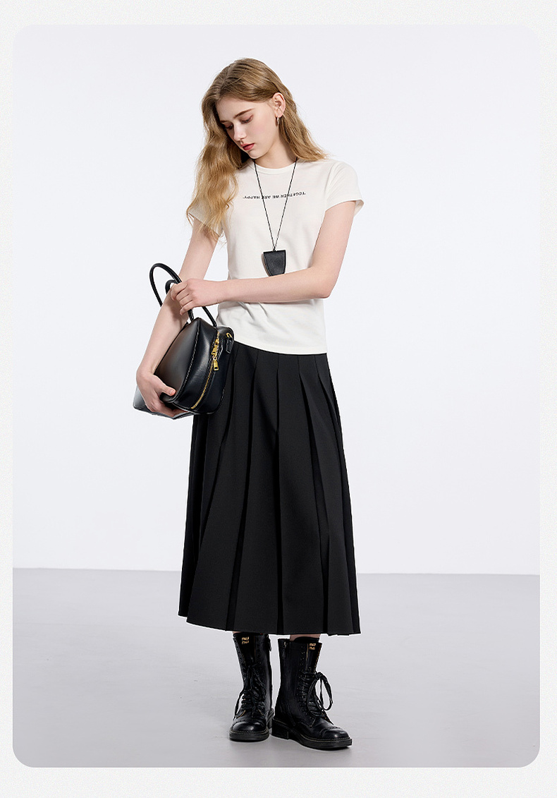 三彩2025春季新款复古高腰长款伞裙百褶裙半身裙A字裙小个子M