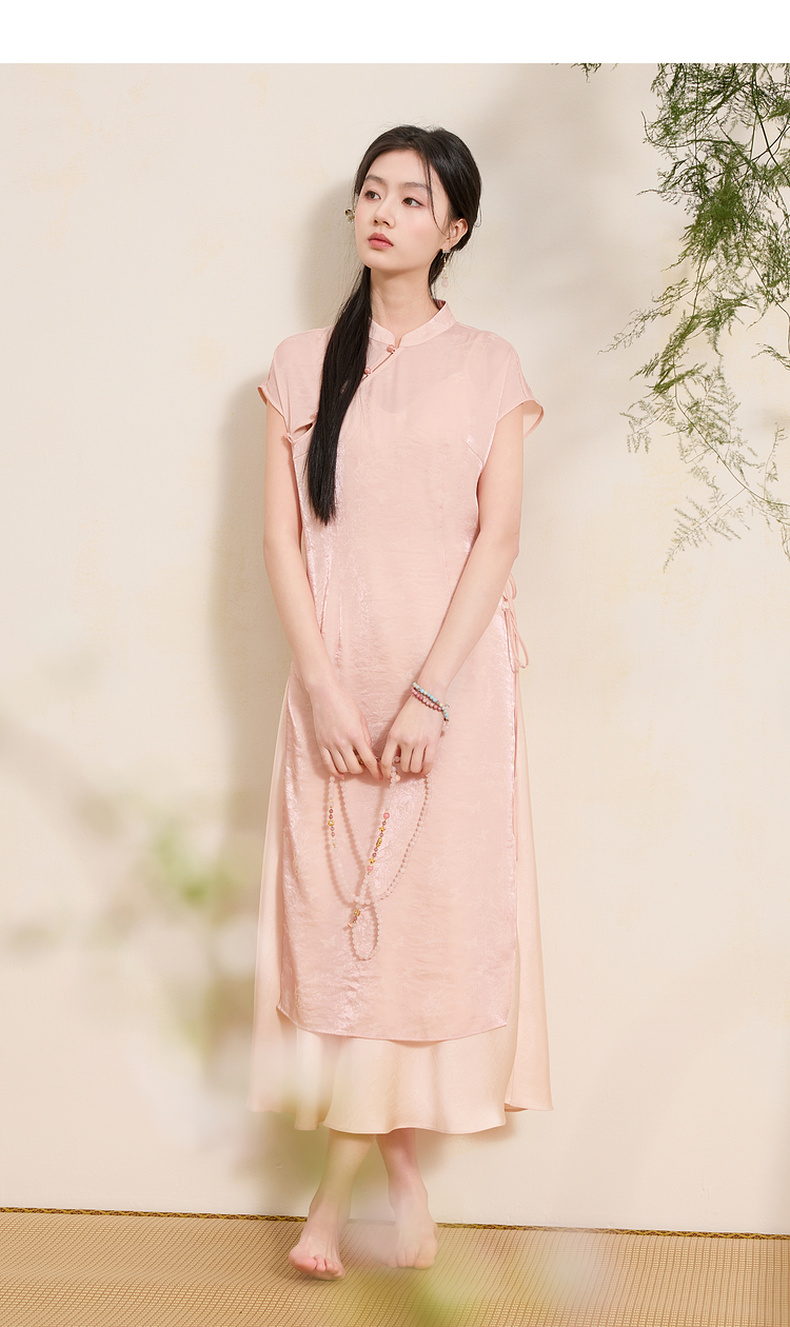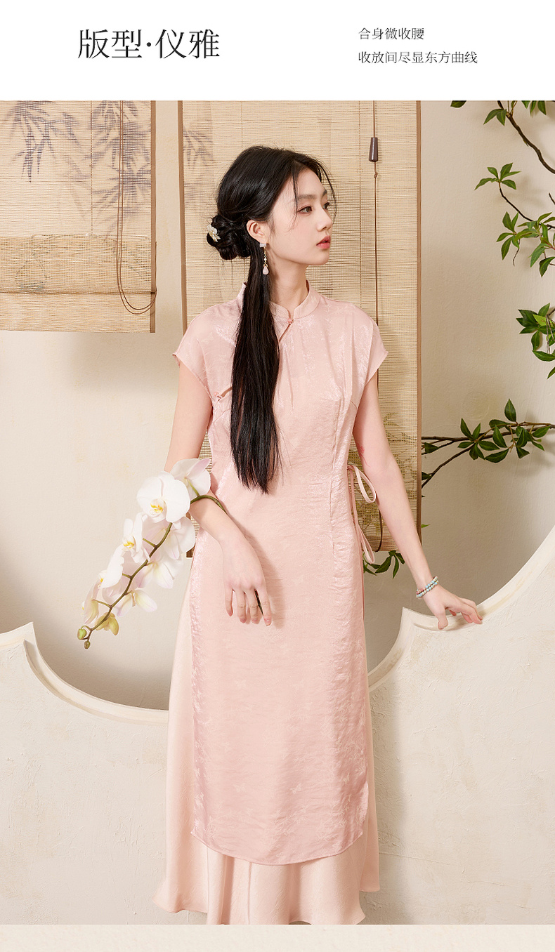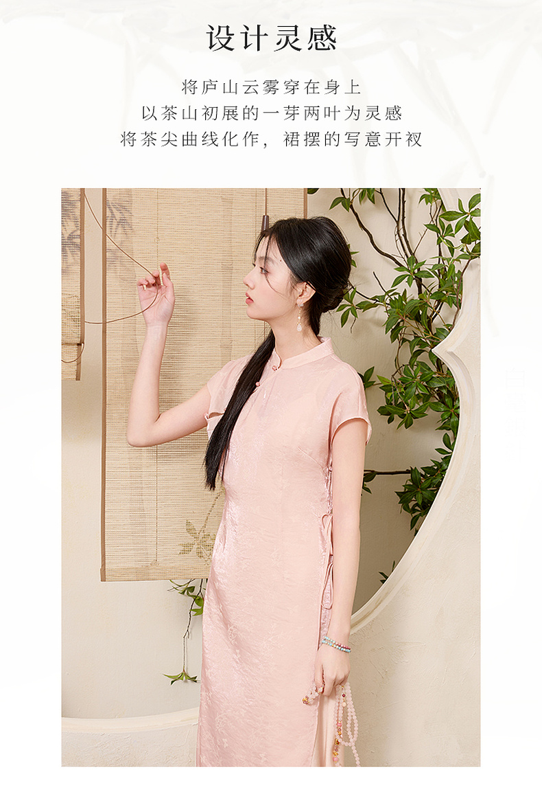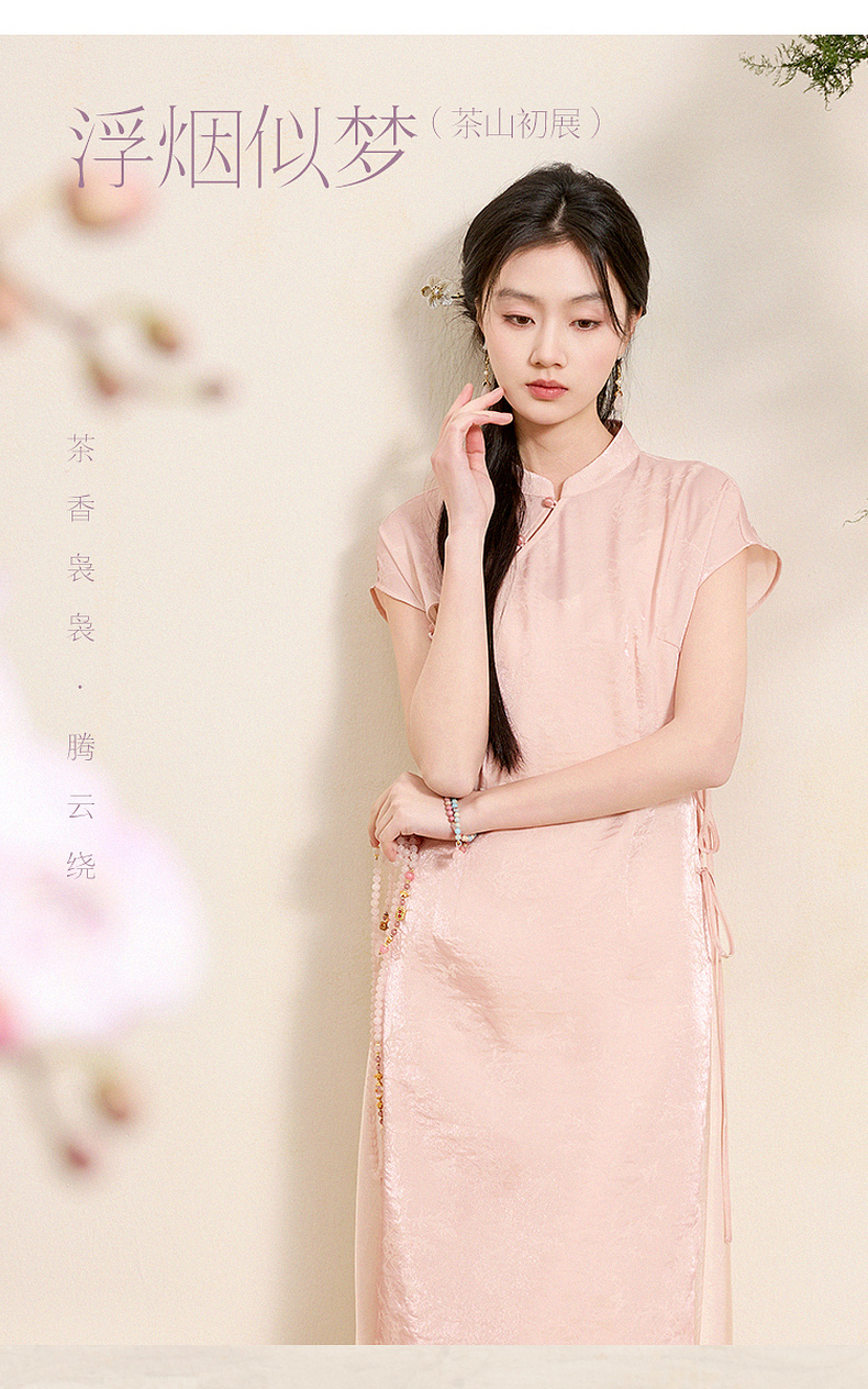 三彩【茶香袅袅】2025夏季新款新中式旗袍裙两件套连衣裙长裙C