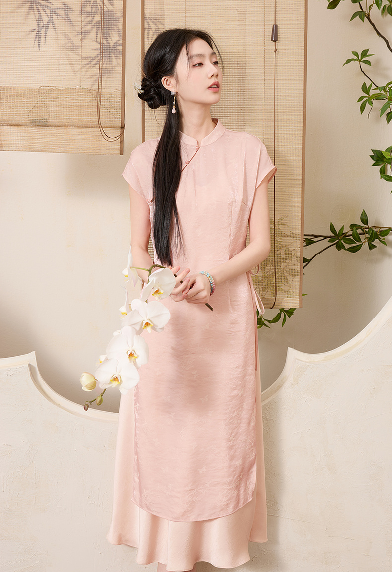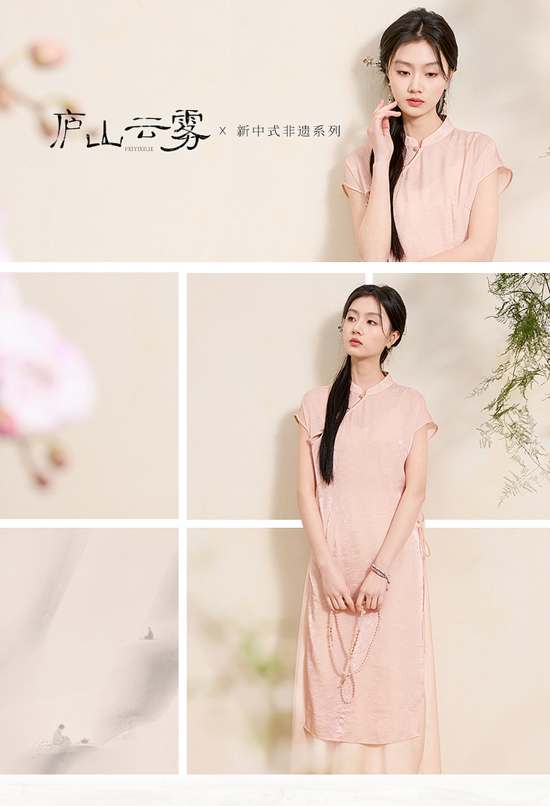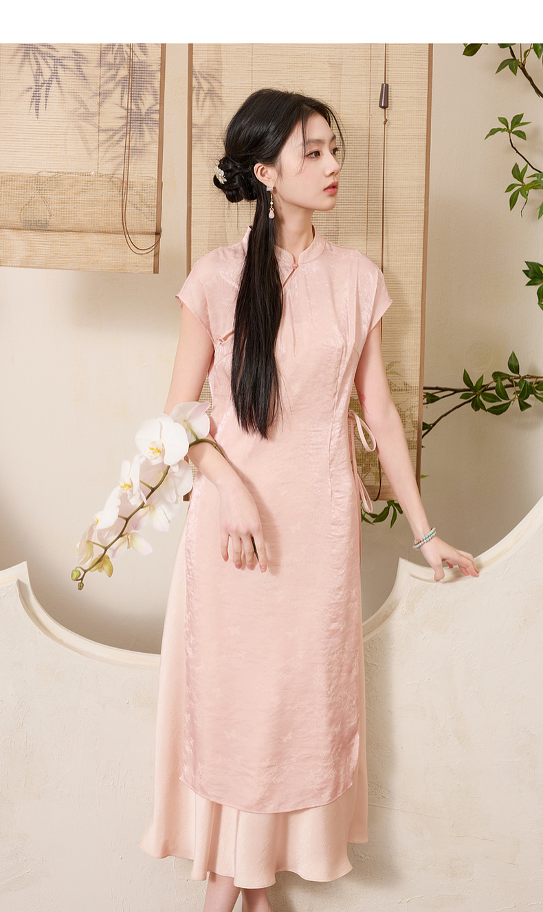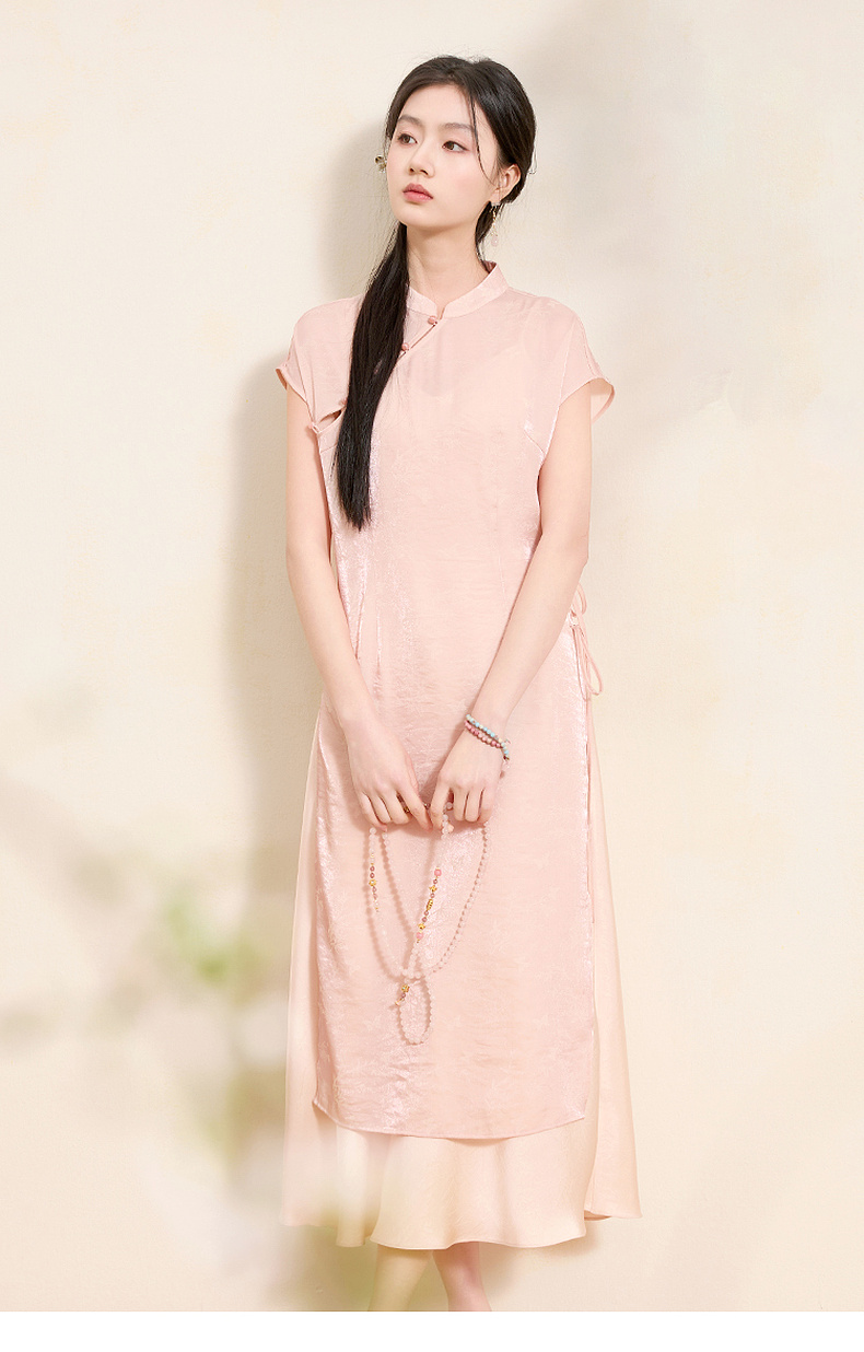 三彩【茶香袅袅】2025夏季新款新中式旗袍裙两件套连衣裙长裙C