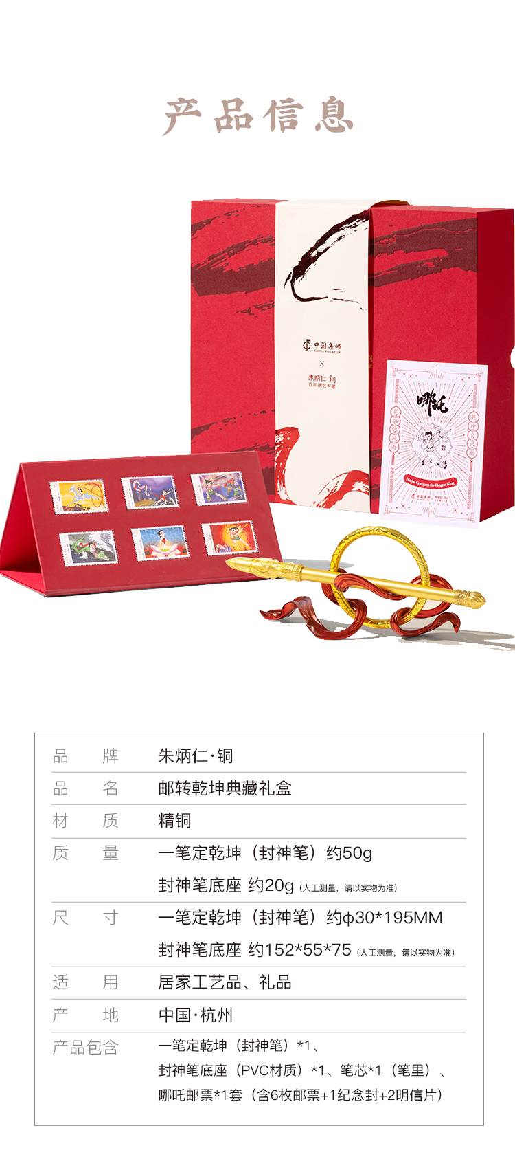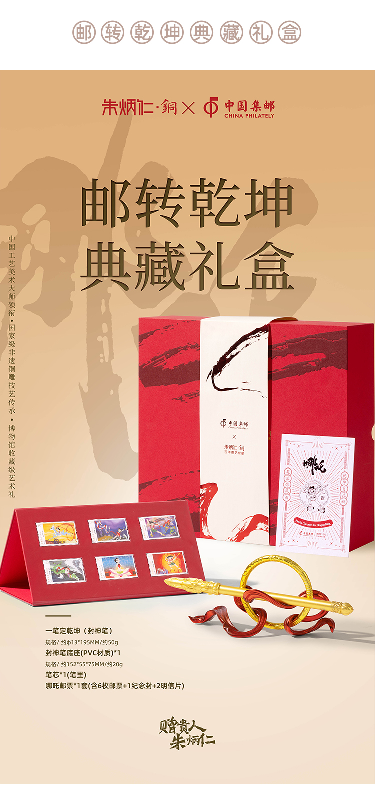 朱炳仁·铜×中国集邮联名《邮转乾坤典藏礼盒》,哪吒珍邮+一笔定乾坤哪吒笔【预售15天发】