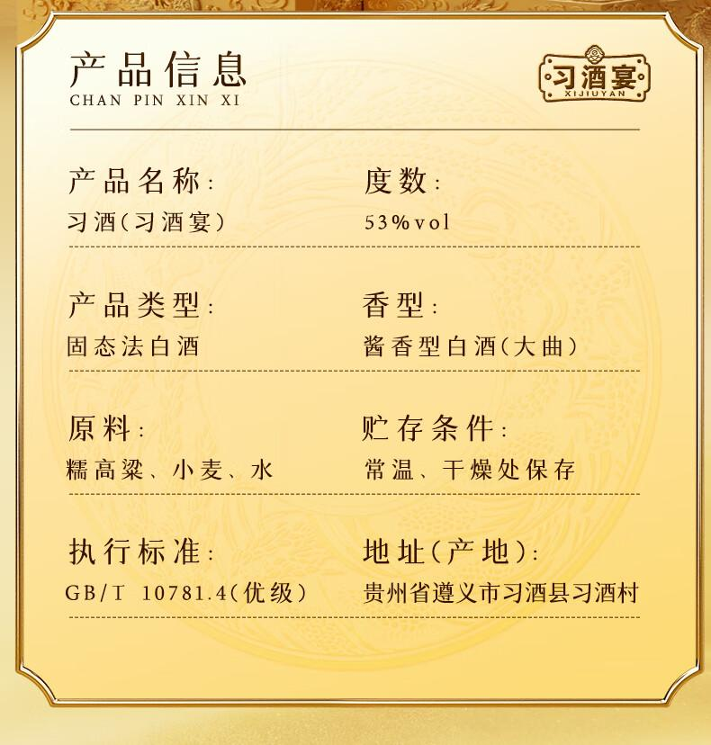 【嫡系好礼】习酒 习酒宴 酱香型白酒 53度 500ml*2礼盒装
