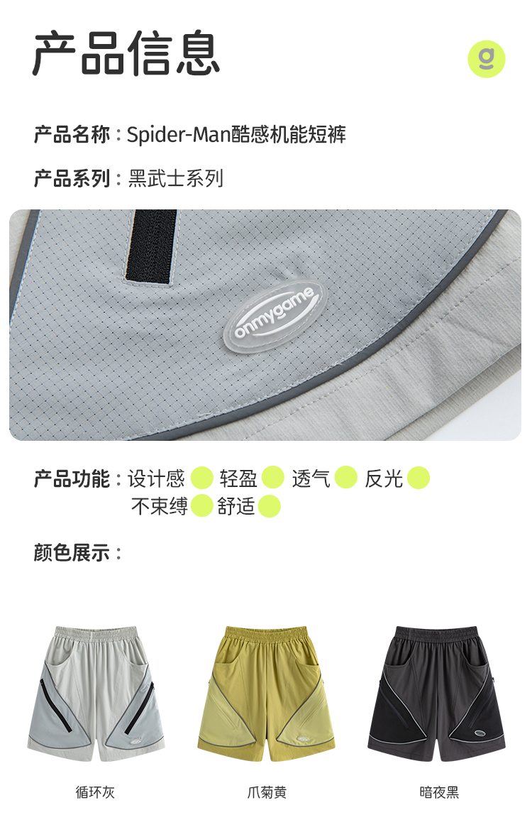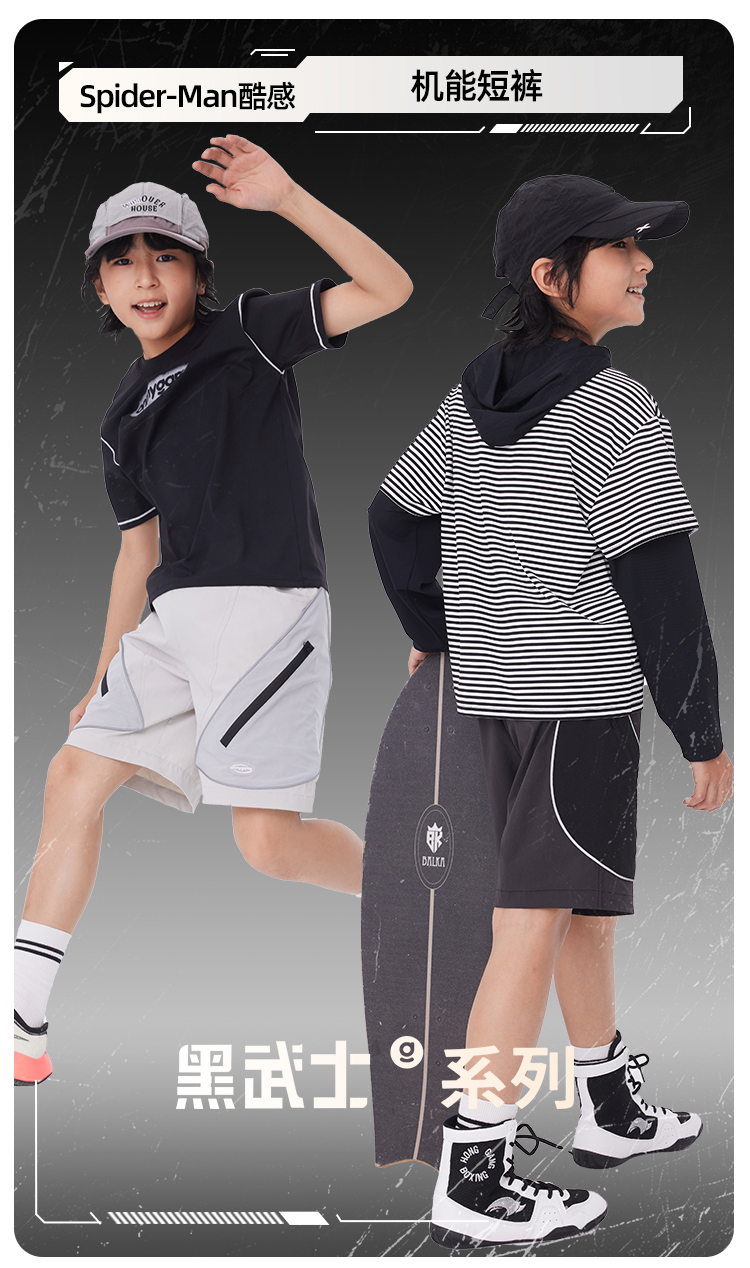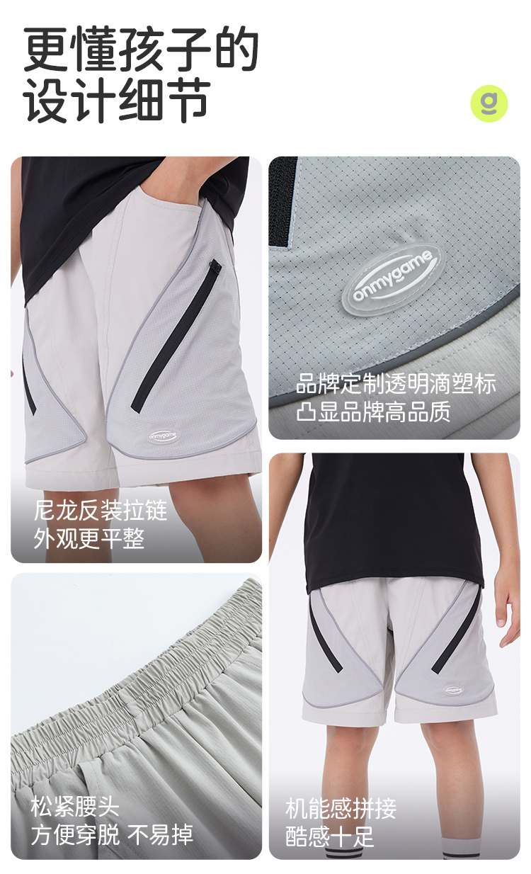 11onmygame【黑武士】男童机能短裤儿童夏季户外裤子2025新款