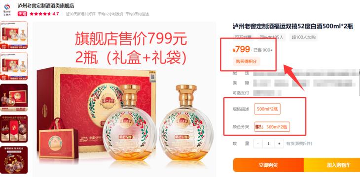 【泸州老窖】福运双禧雁塔52度浓香型白酒500ml*2瓶双支礼盒装