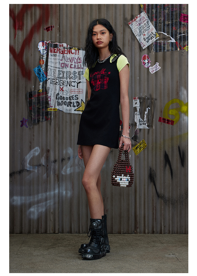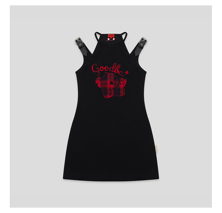 GOODBAI GOODEES格纹贴布绣logo吊带连衣裙
