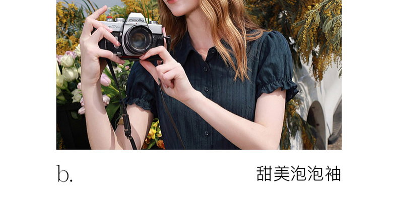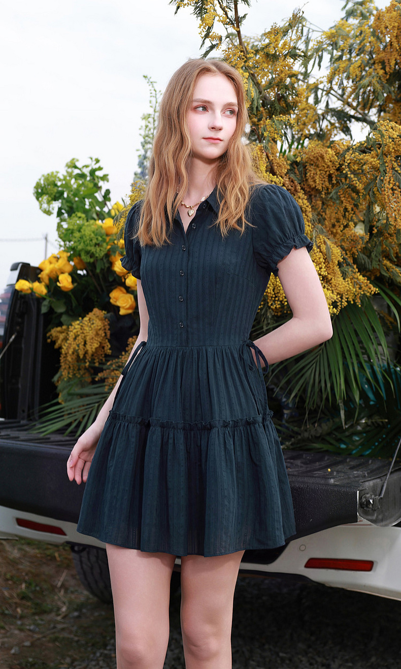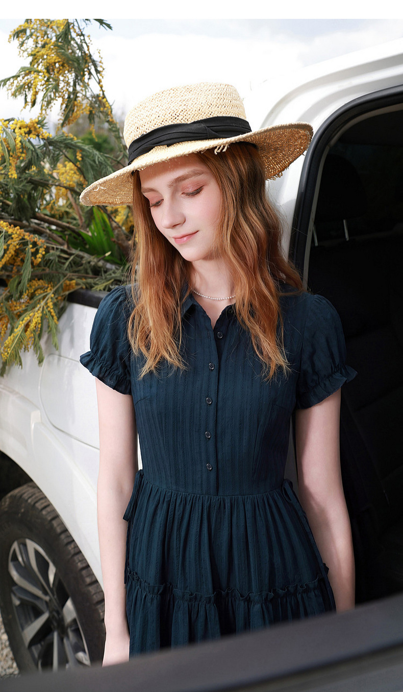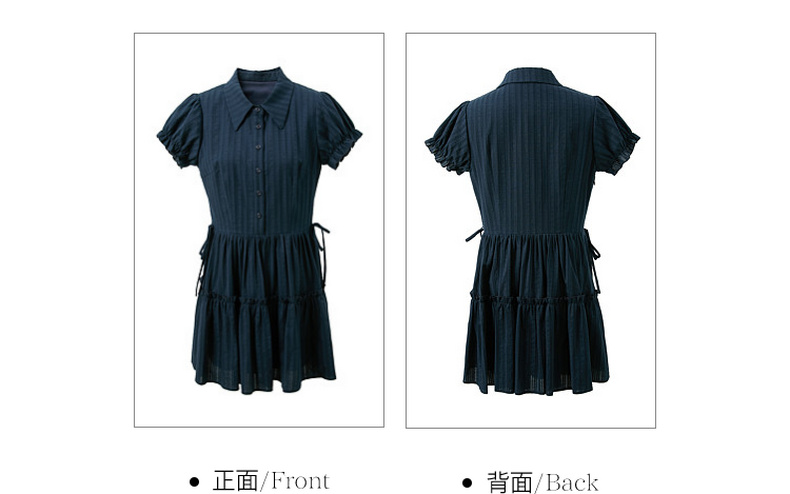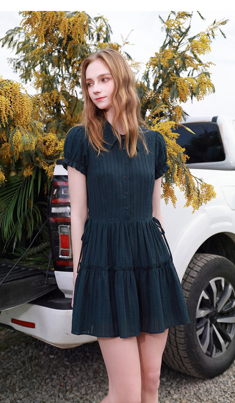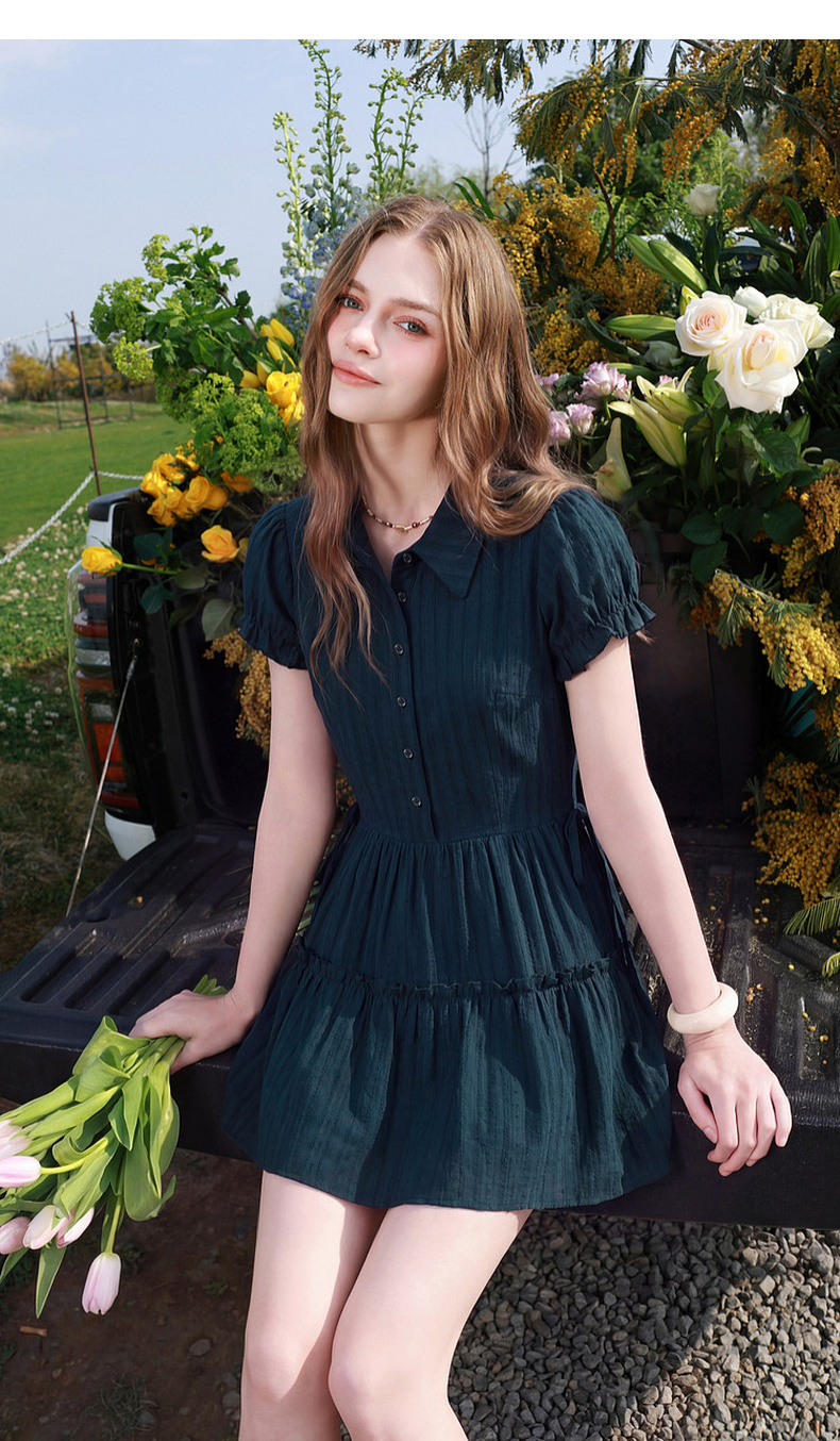 【100棉】三彩2026夏季新款提花连衣裙翻领收腰A字裙短裙M