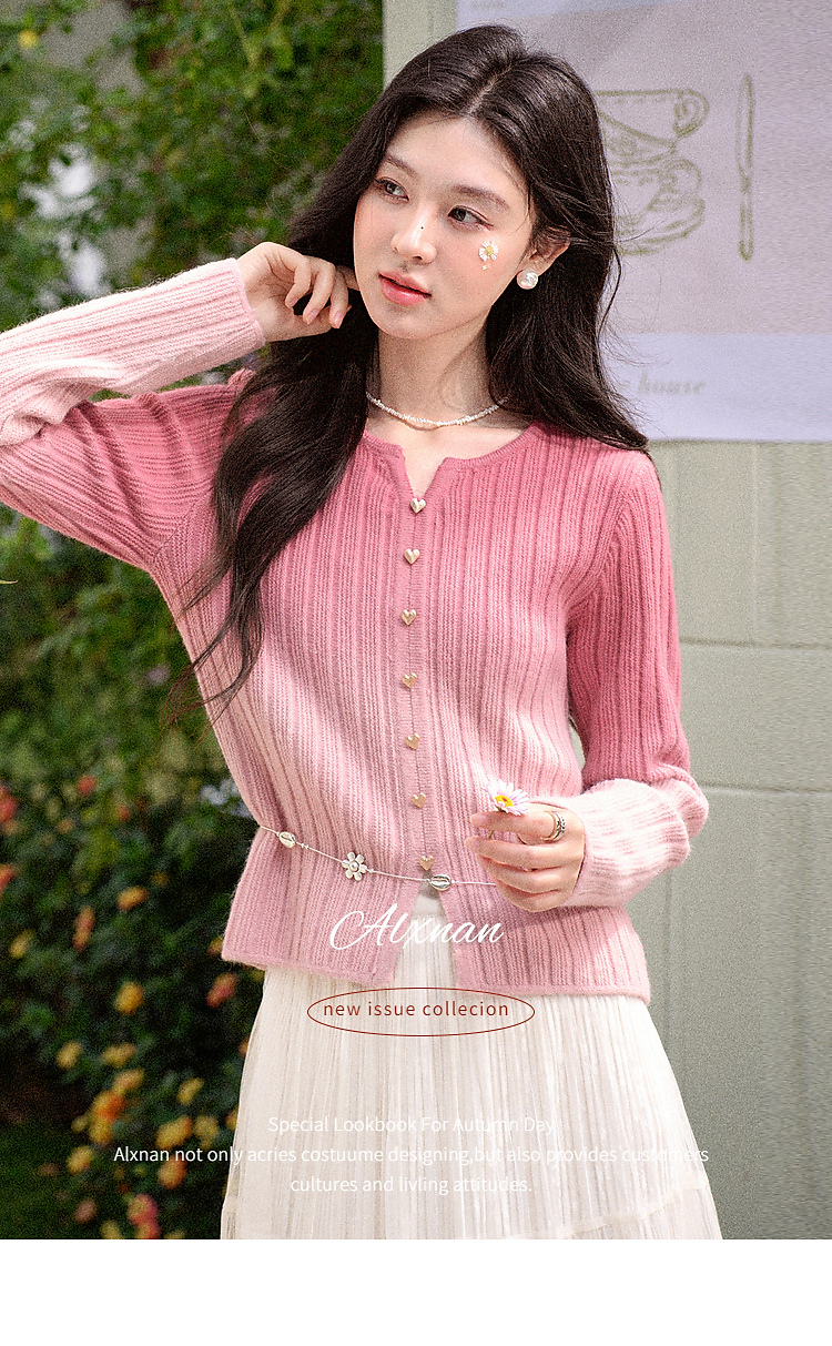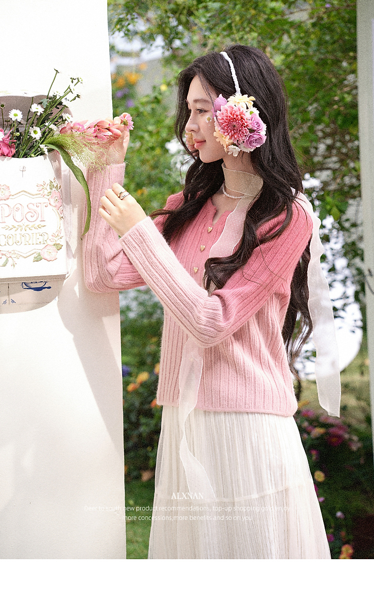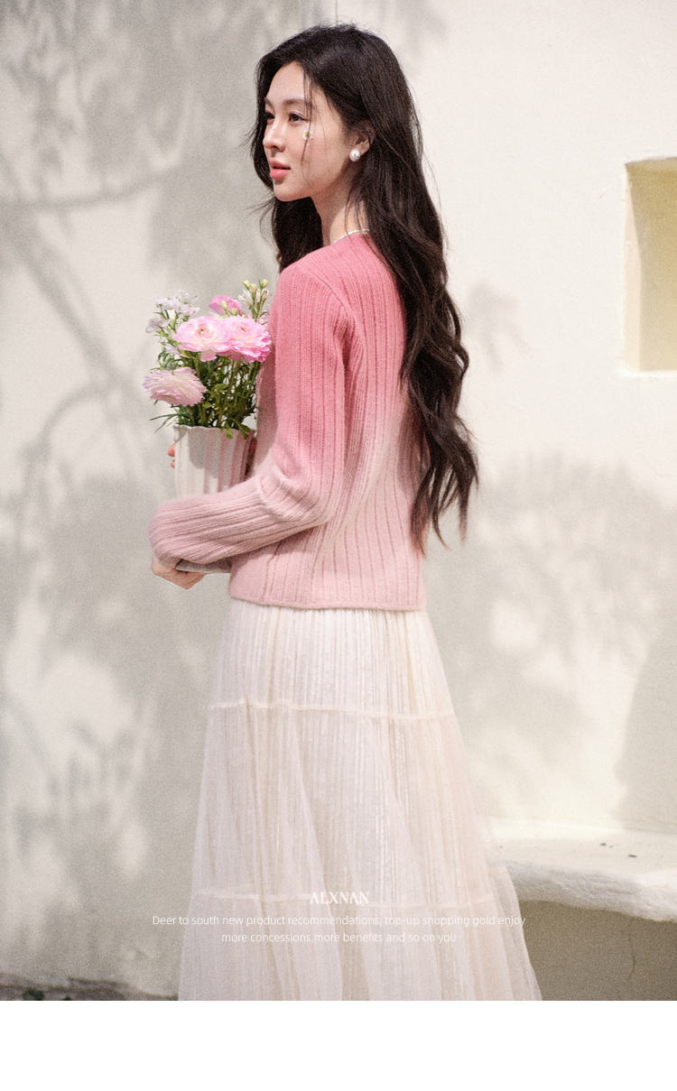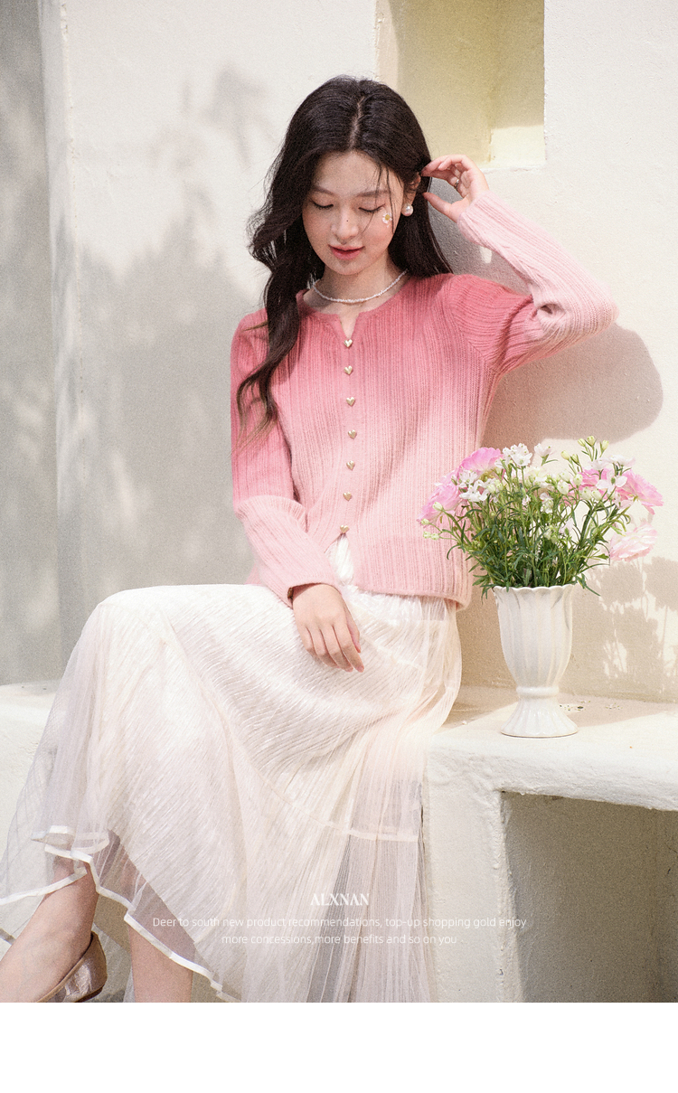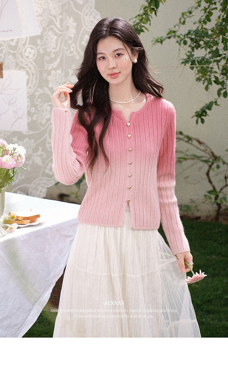 鹿向南「桃桃奶昔」法式渐变粉色长袖针织衫女早春设计感别致上衣