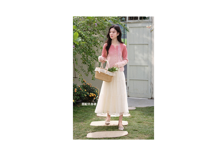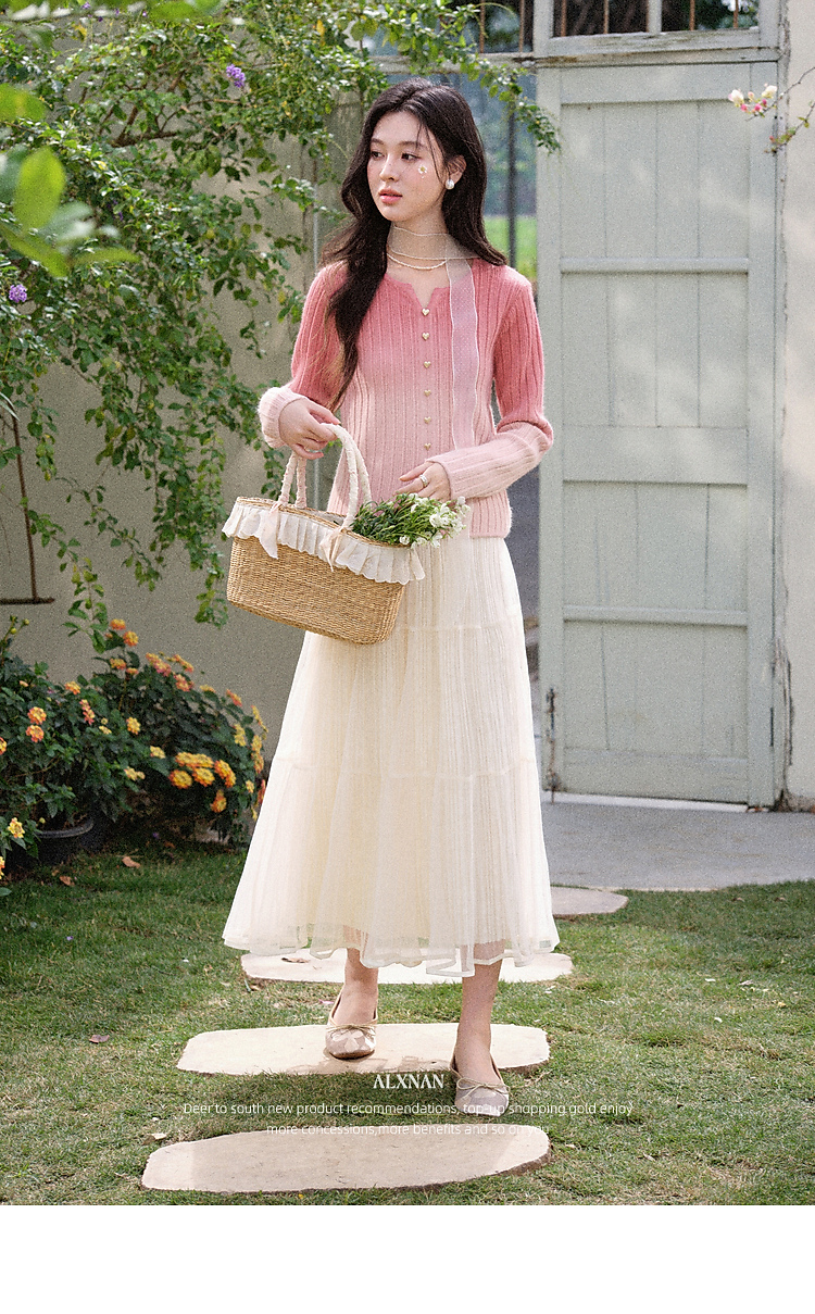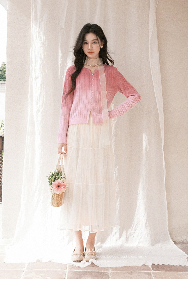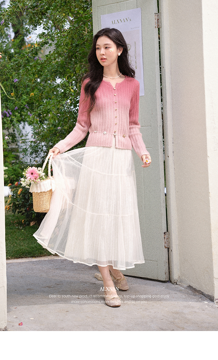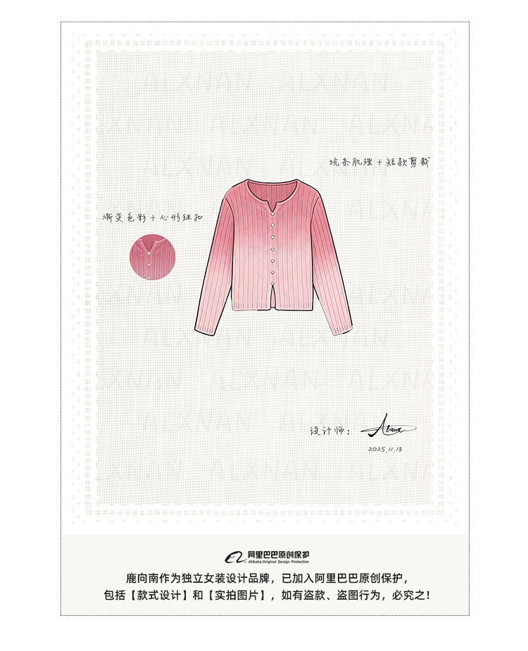 鹿向南「桃桃奶昔」法式渐变粉色长袖针织衫女早春设计感别致上衣