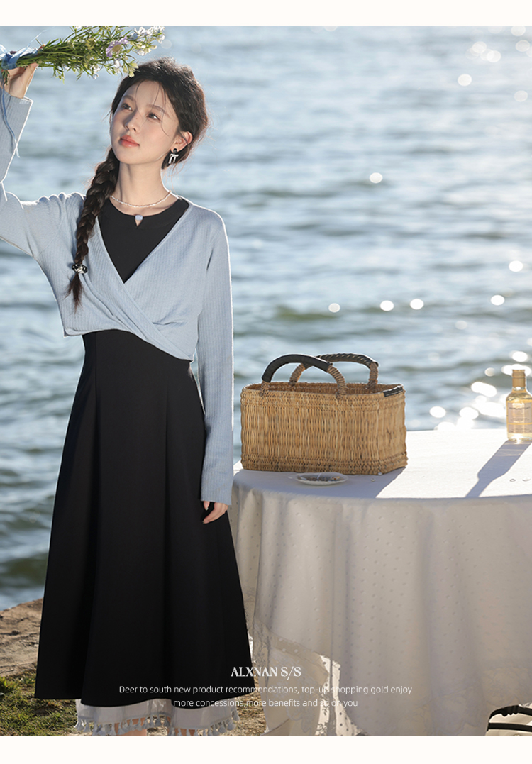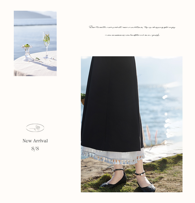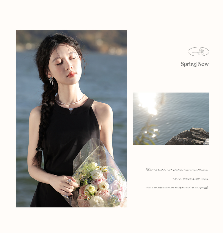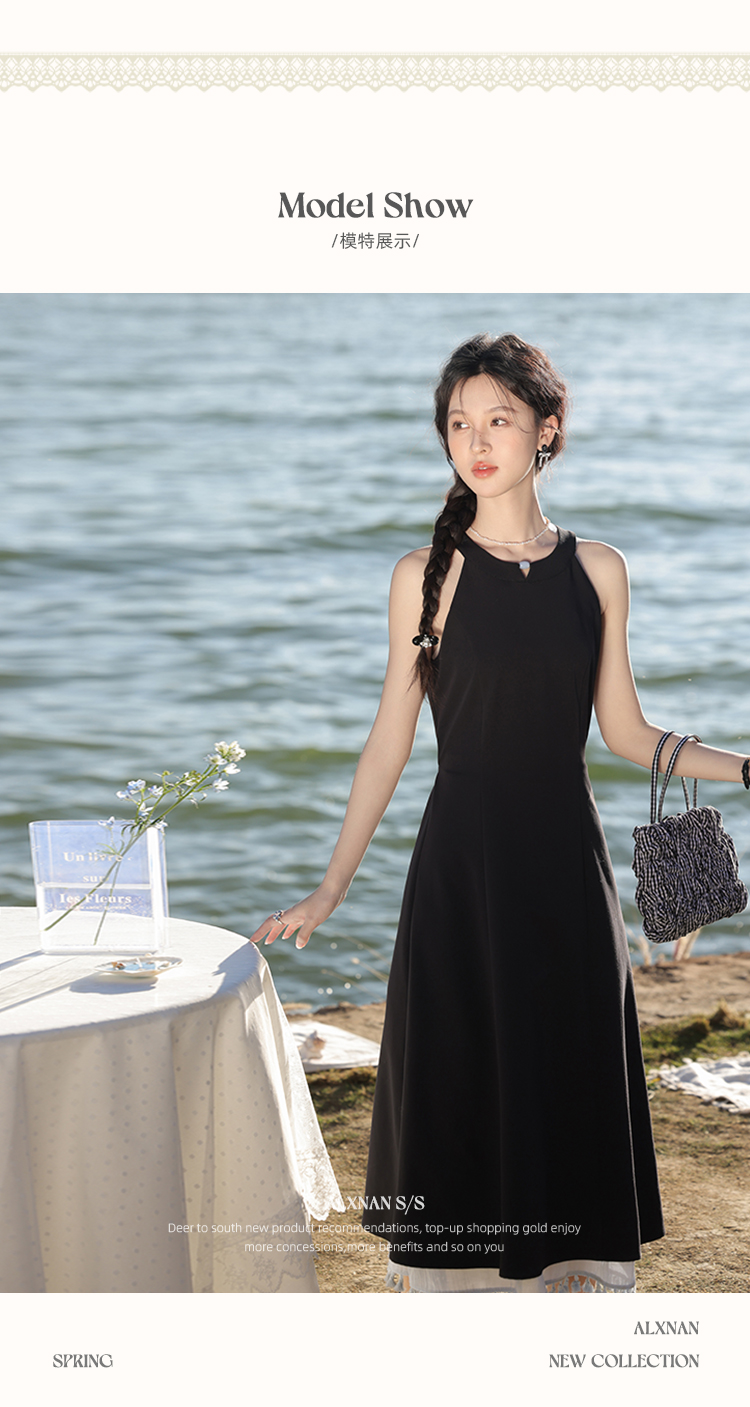 【6折秒杀】鹿向南「海岛花园」气质黑色连衣裙L52830