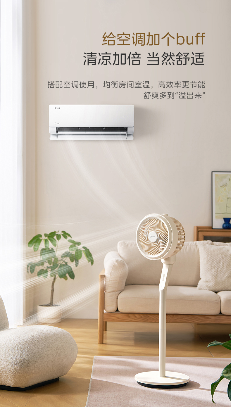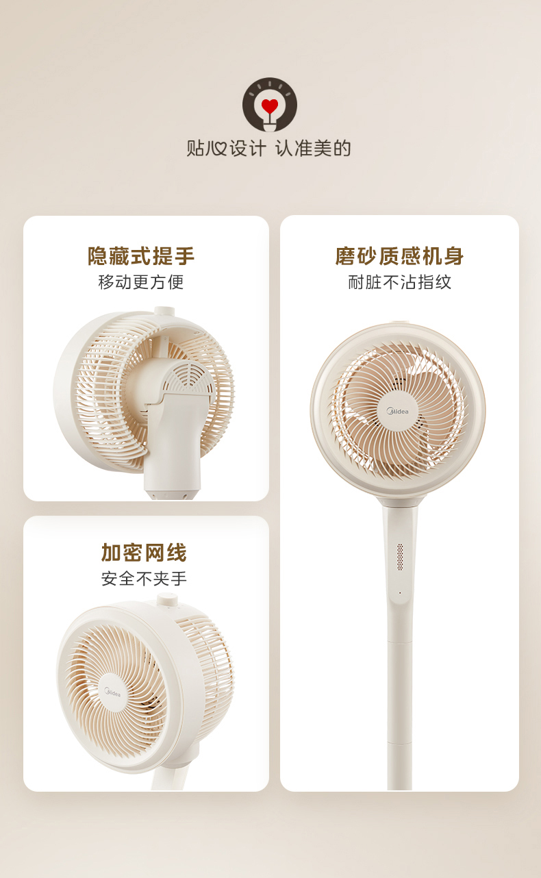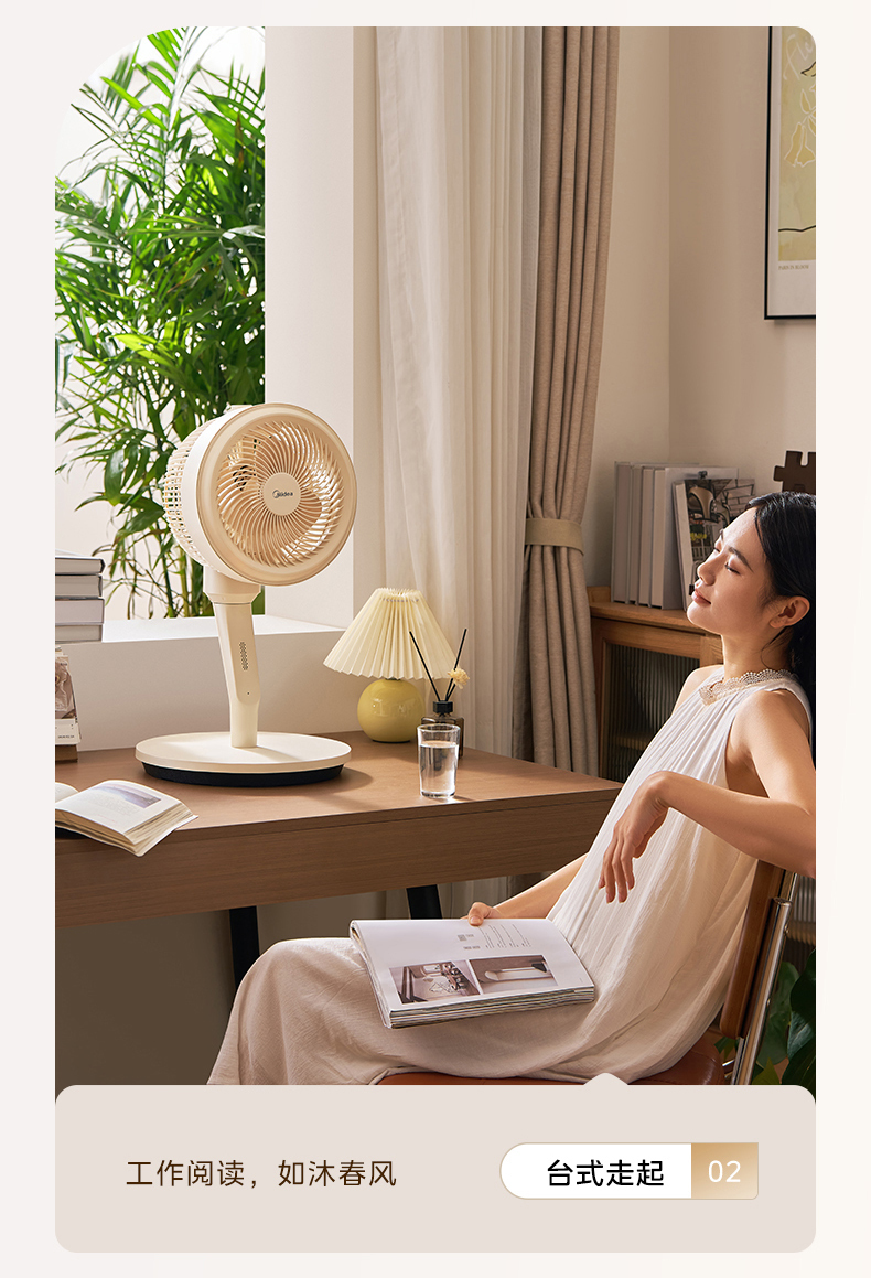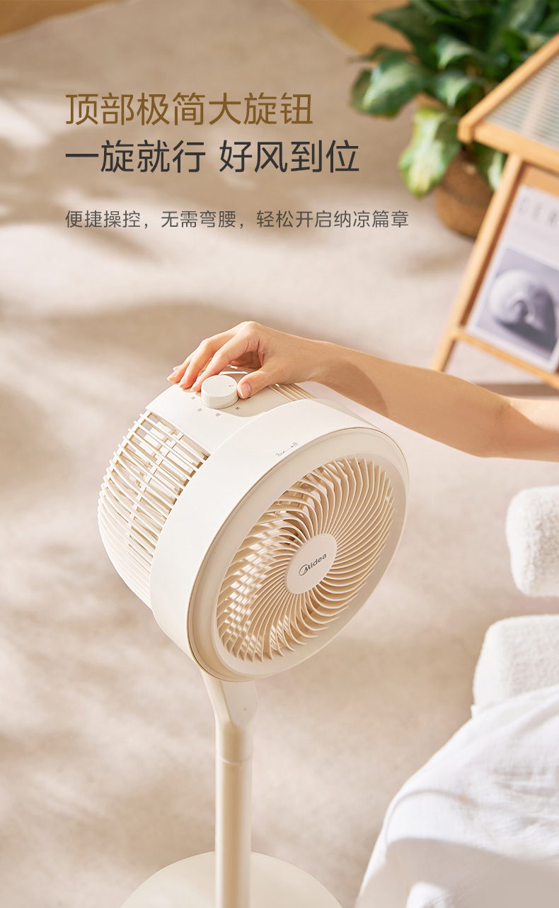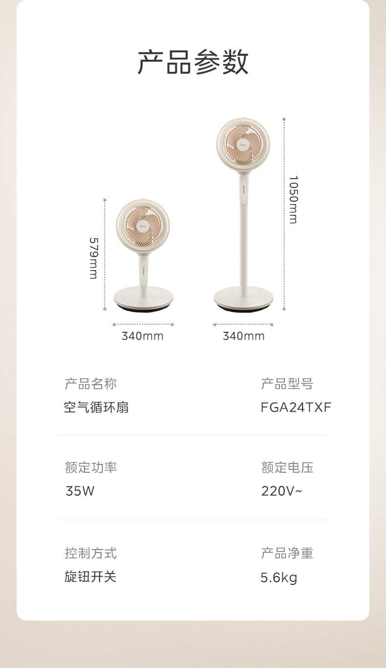 美的电风扇家用空气循环扇静音小型台式落地扇立式电台扇FGA24TXF(杏色)