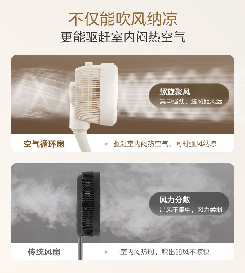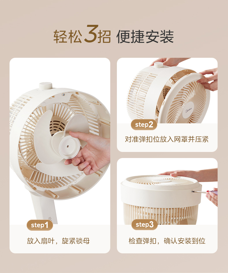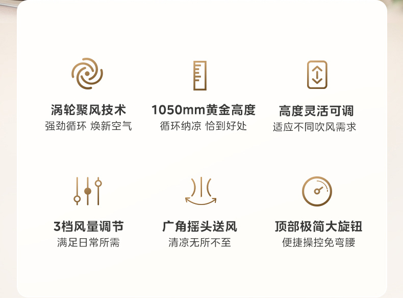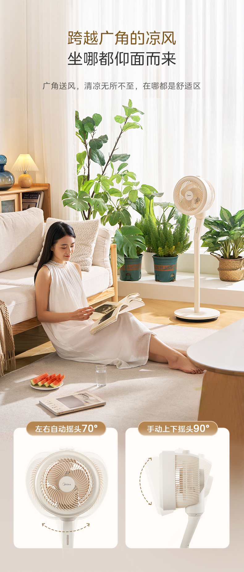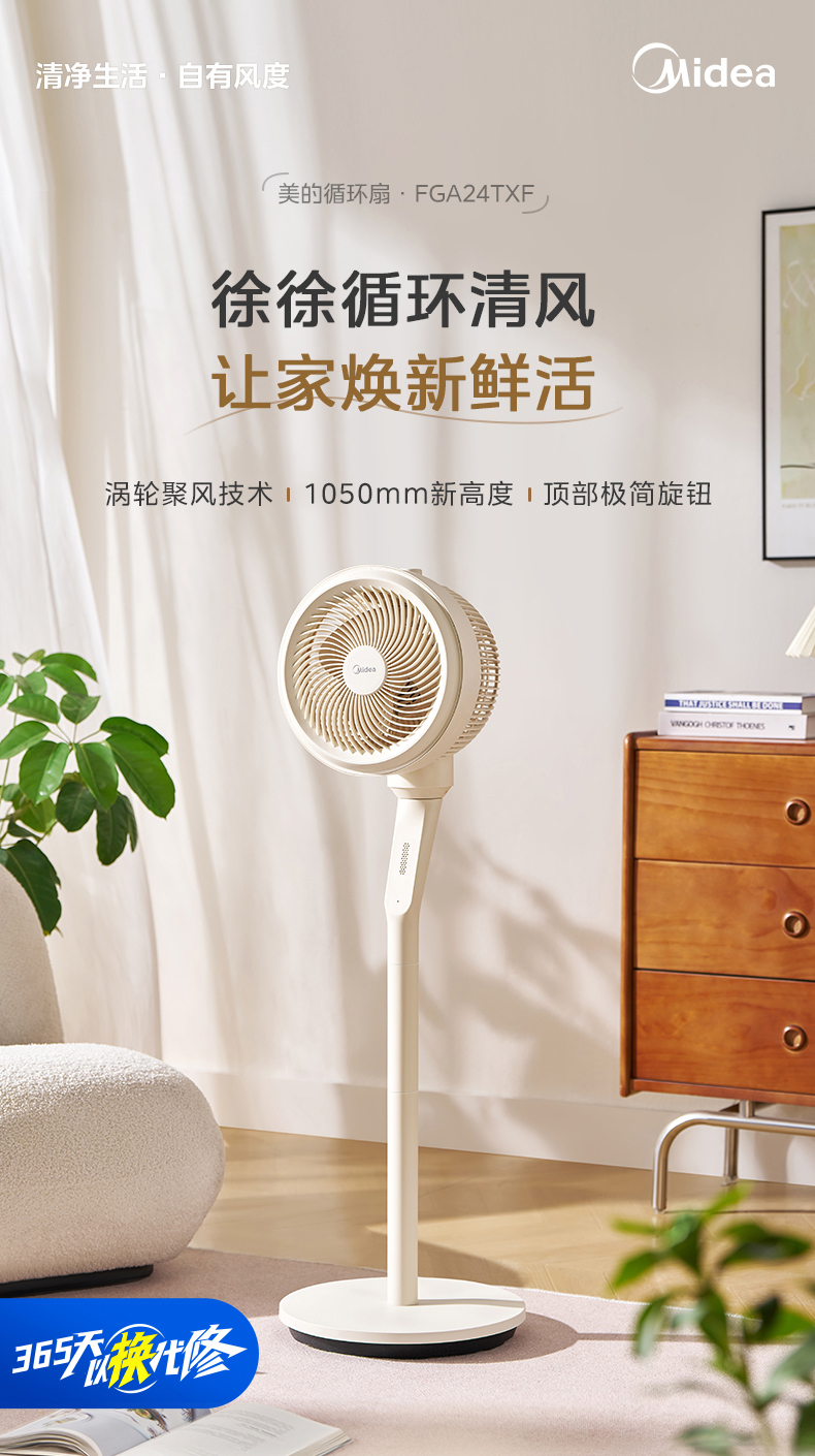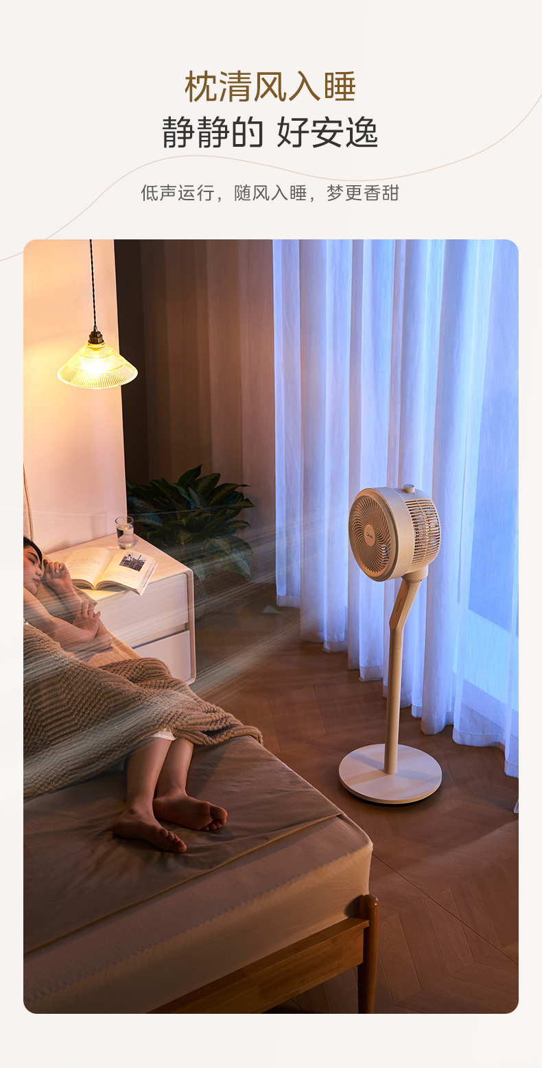 美的电风扇家用空气循环扇静音小型台式落地扇立式电台扇FGA24TXF(杏色)