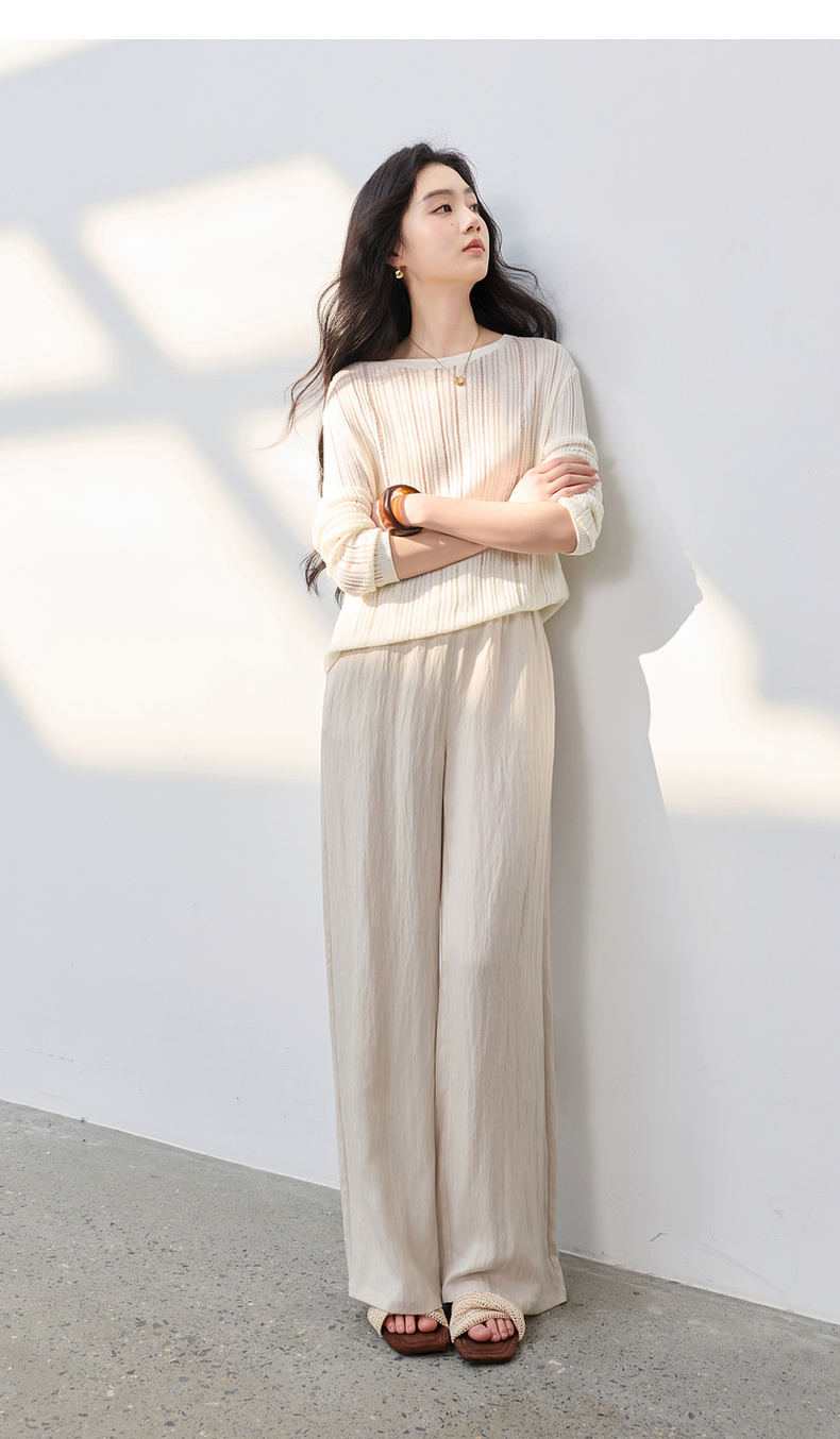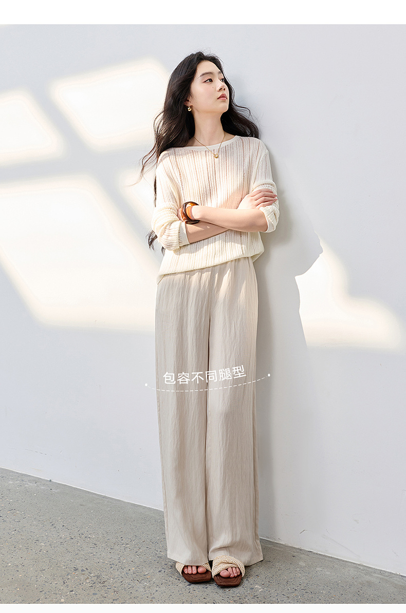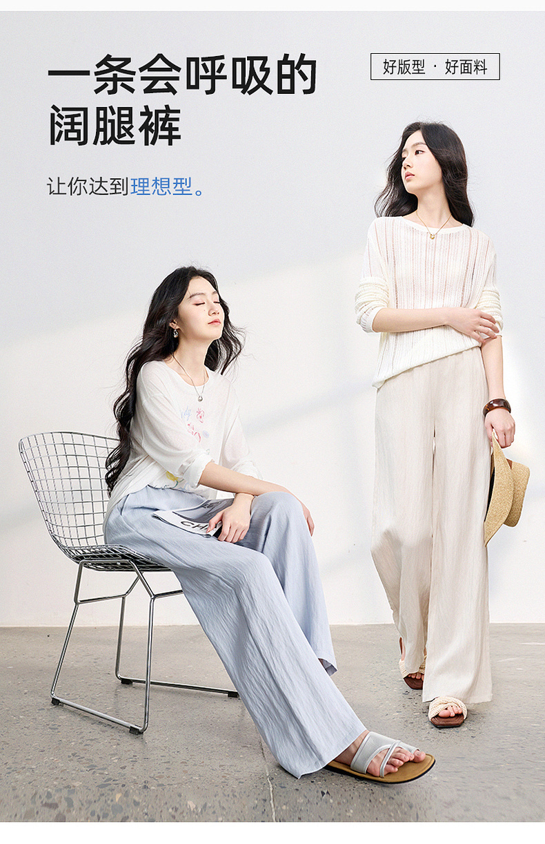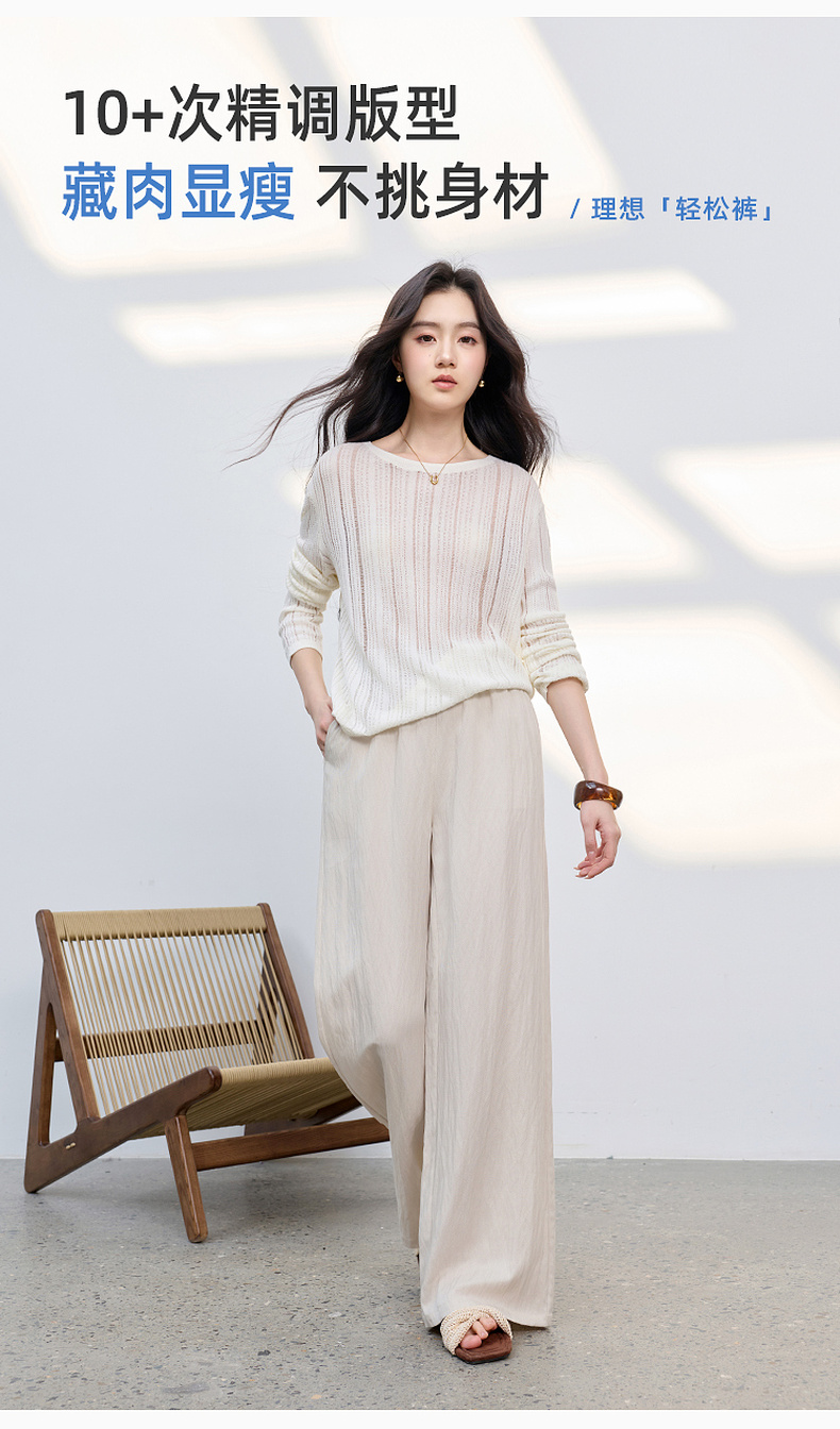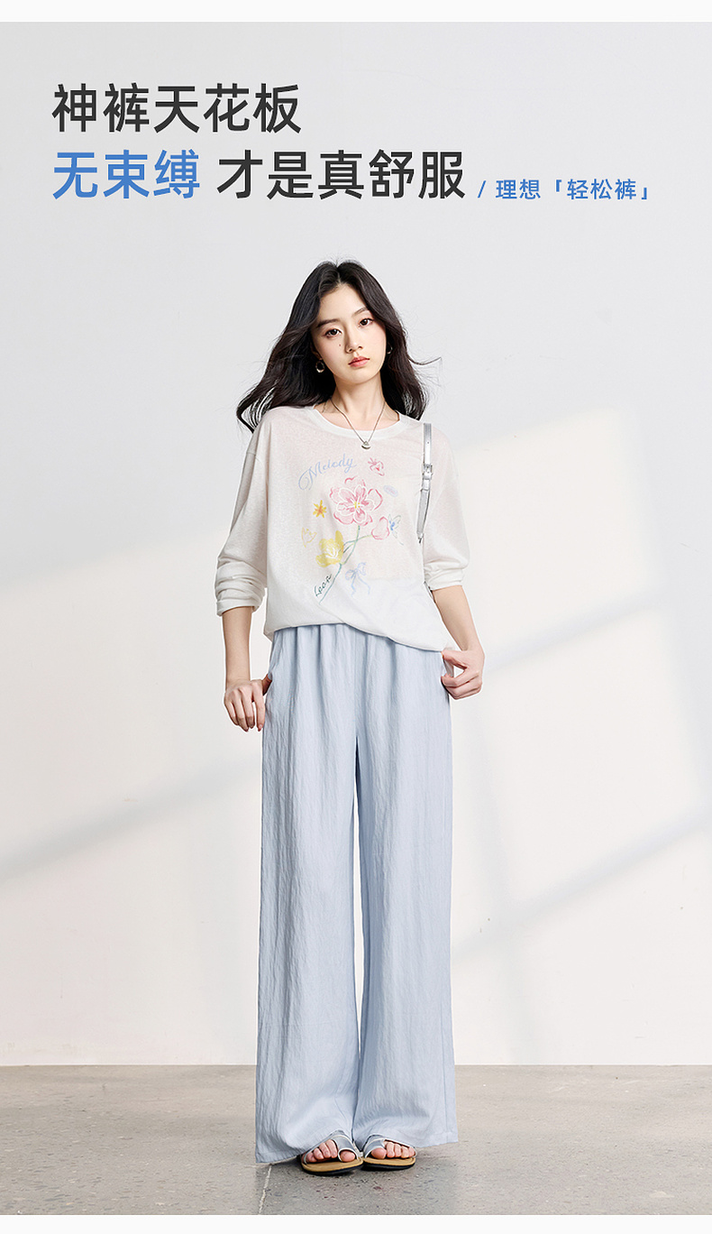 【莱赛尔】三彩2026春季新款休闲裤长裤宽松高腰显瘦直筒裤垂感M