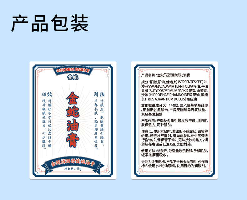 【规格】蛇油膏40g,润唇膏5g,润唇膏5g+蛇油膏40g*2,润唇膏4.5g+蛇油膏40g*3
