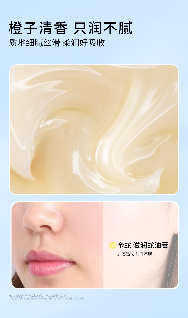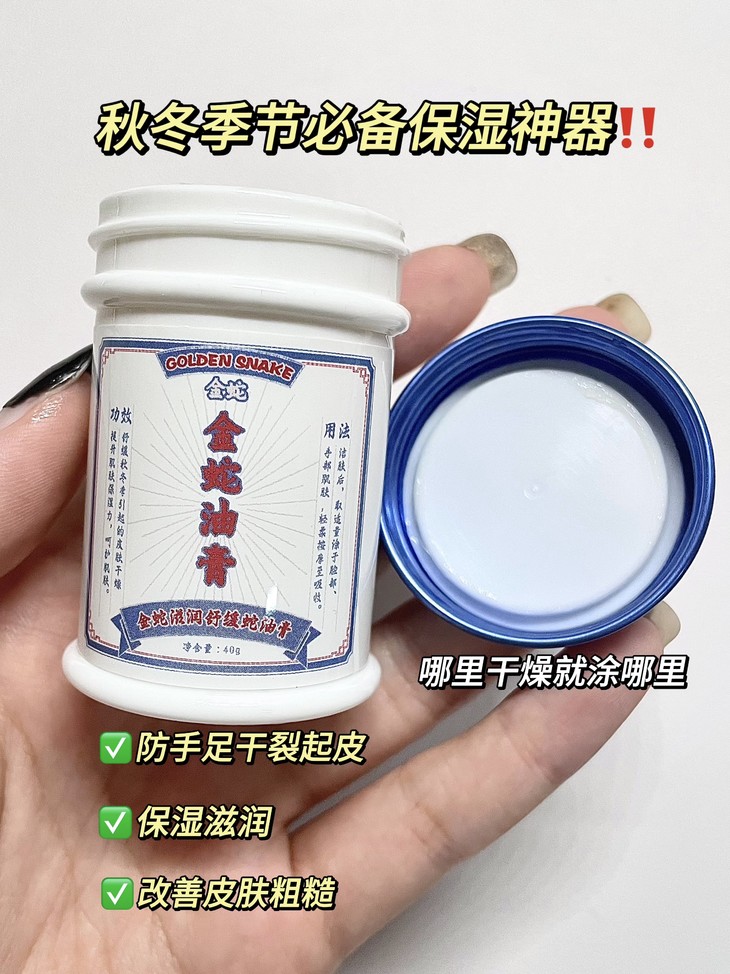 今年发现好物就是这个金蛇油膏,6%蛇油精华搭配多种植物果油,对付干燥起皮真的有一手👍🏻搭配同系列的唇膏 ,再也不怕干燥问题了