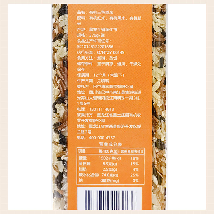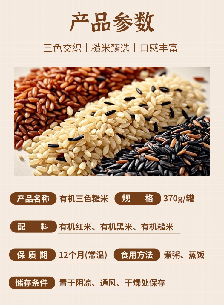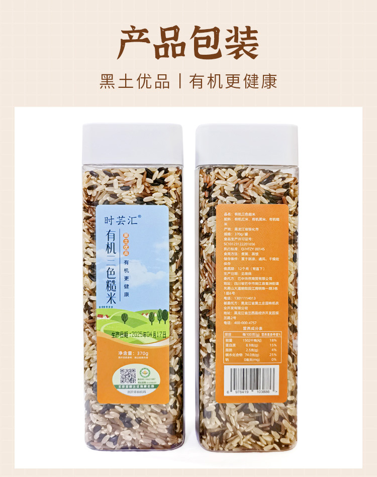 【时芸汇】有机三色糙米370g/罐五谷杂粮煮粥蒸饭低脂糙米饭健身主食