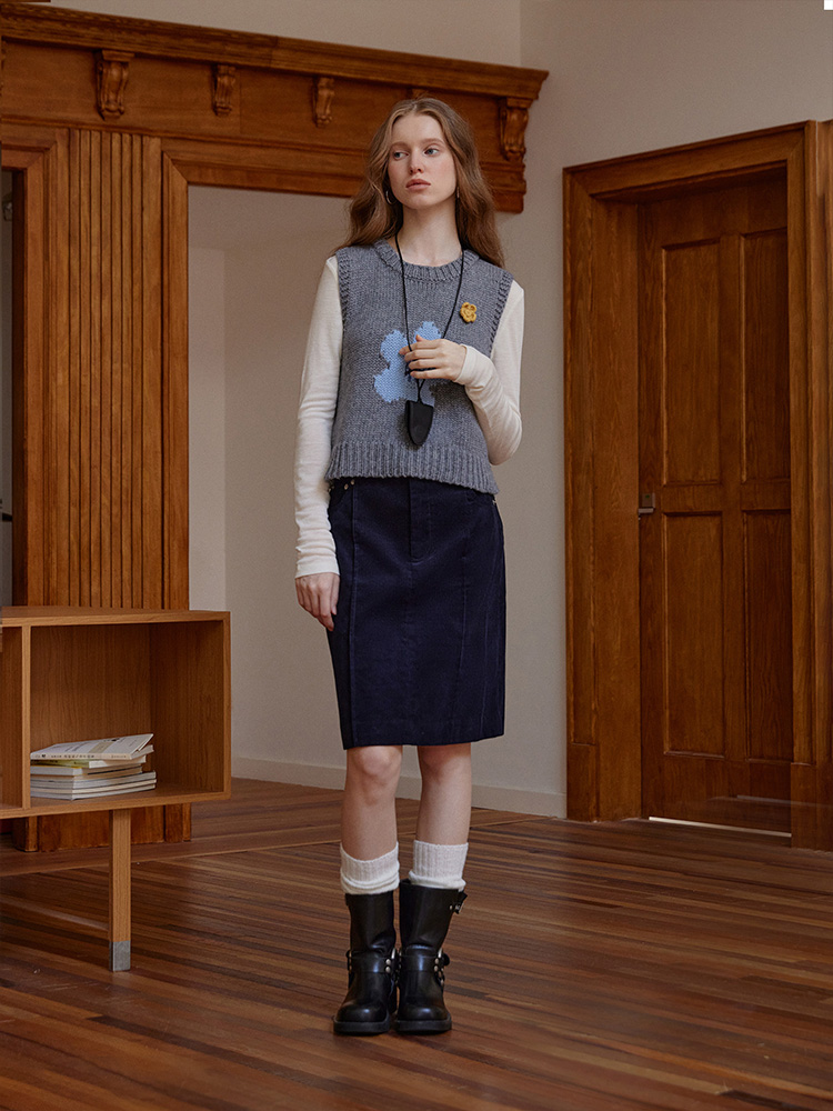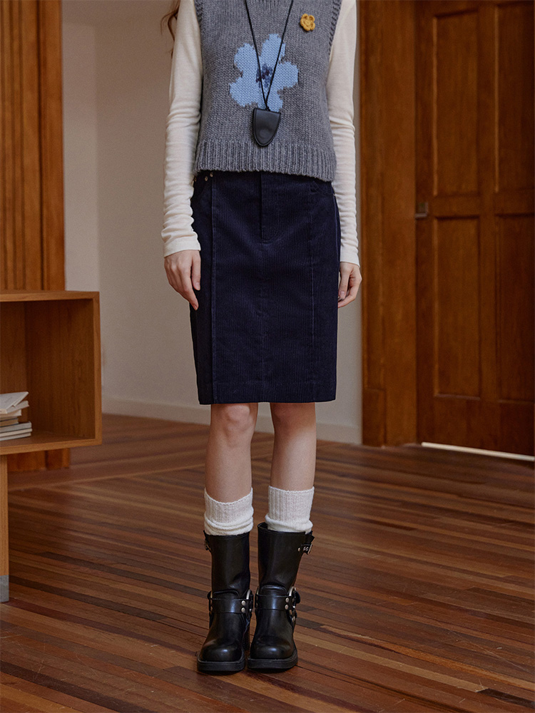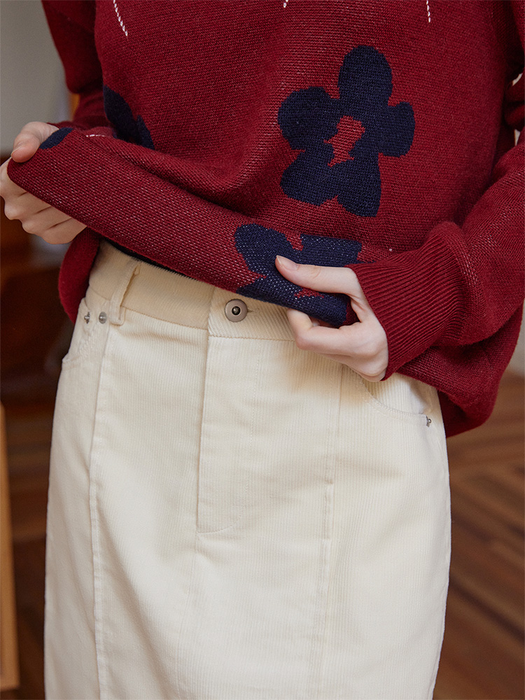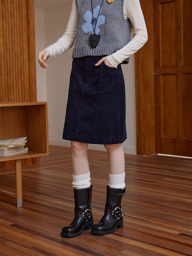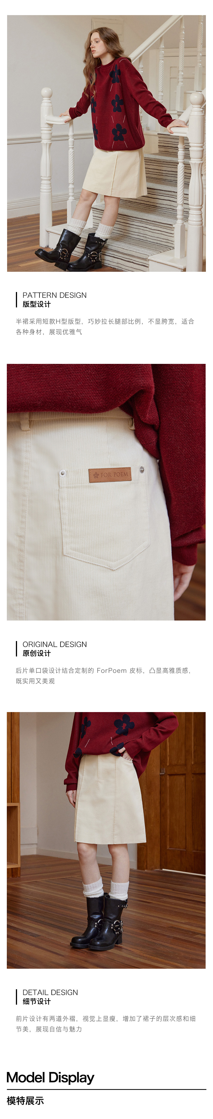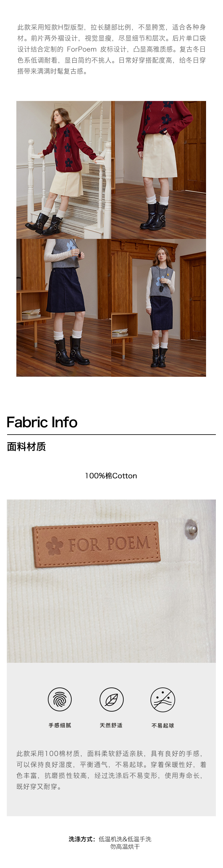 ForPoem 现货 24/FW休闲百搭简约灯芯绒直筒中裙半裙