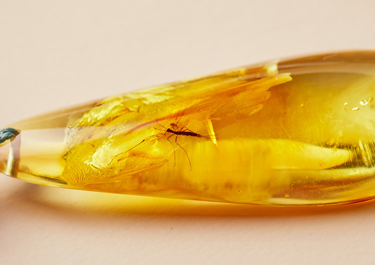 像《侏罗纪公园》里,恐龙的基因就在一块琥珀里发现的;