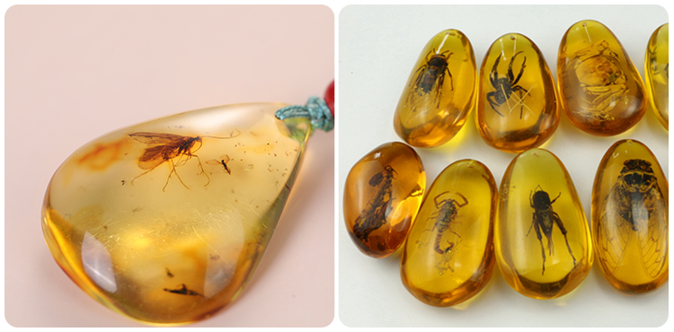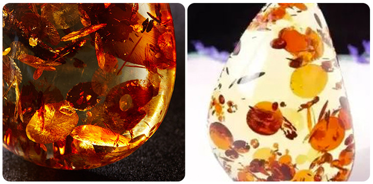 *左为本次产品,为天然虫珀,右为人工制成的虫珀