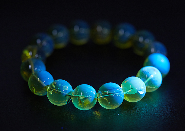 荧光一探,那夏季晴空般的蓝色竟浮了起来,美得一塌糊涂,想一看再看。