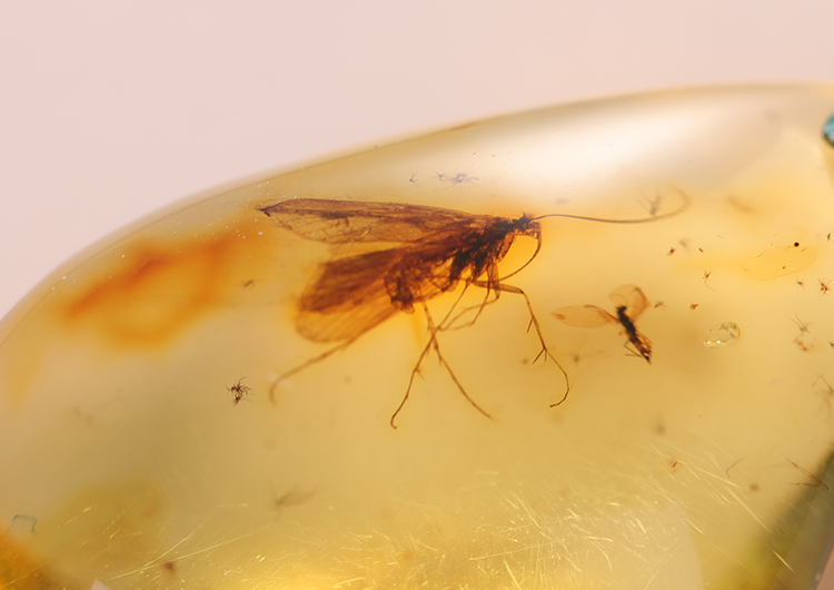 千万年过去,那飞蚊随着松脂球,在沧海桑田里变换里,成了透亮似蜜的宝石。
