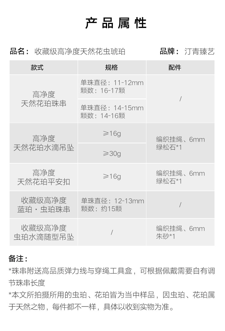 *本文所拍摄所用的虫珀、花珀皆为当中样品,因虫珀、花珀属于天然之物,每件都不一样,具体以收到实物为准。