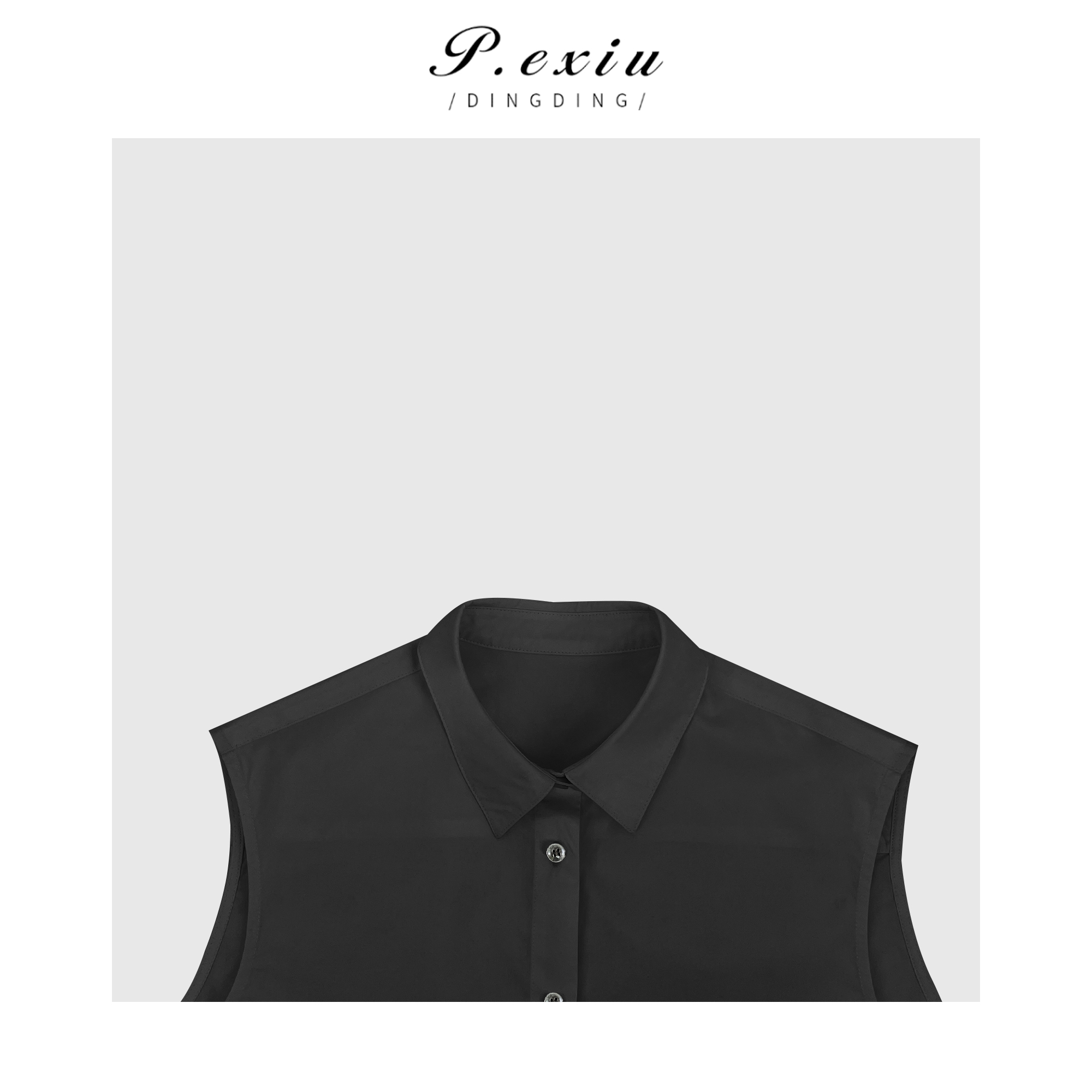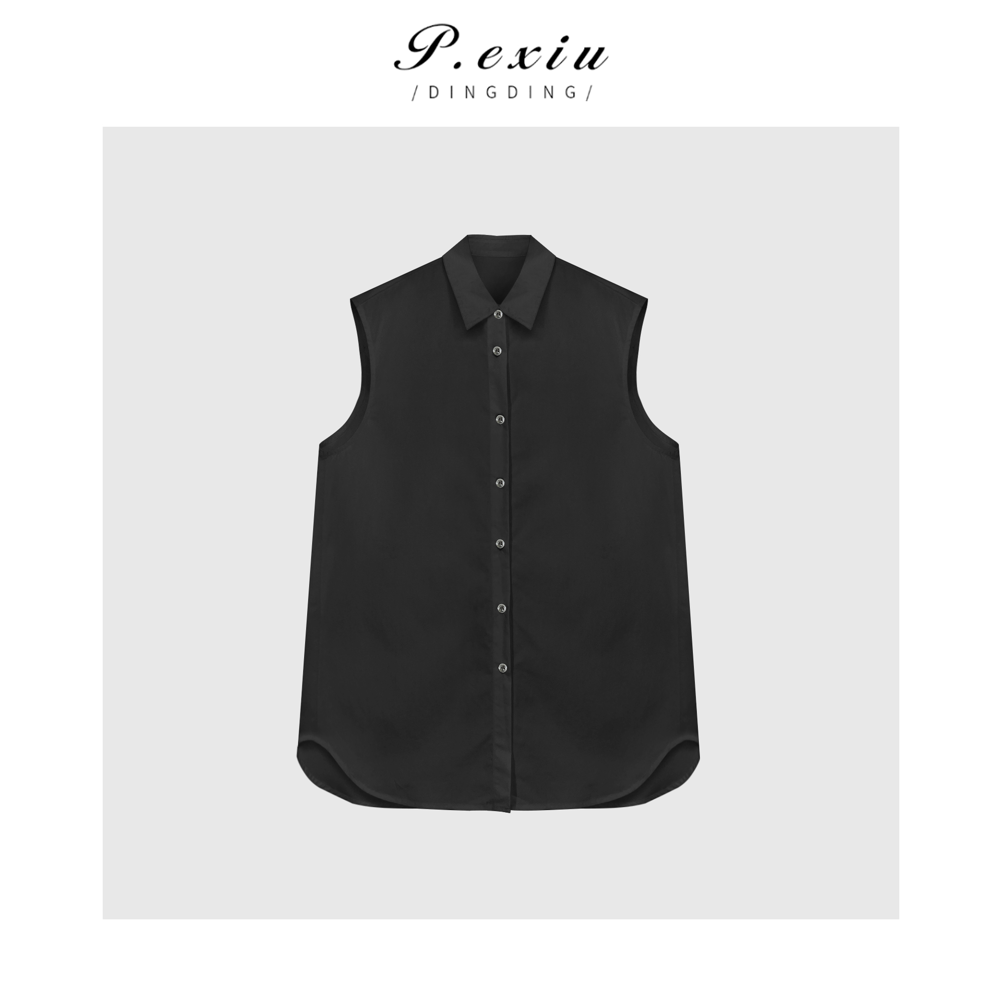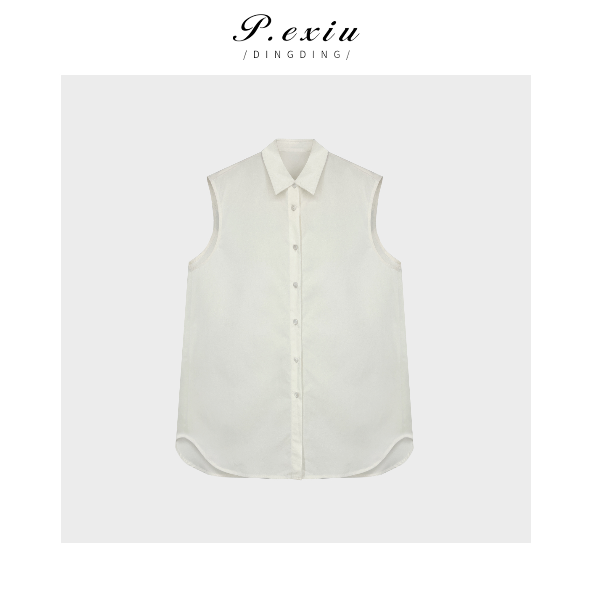 03-4潘依绣丁丁宠粉 叠穿神器 天丝法式单排扣气质百搭无袖衬衫 W-61771