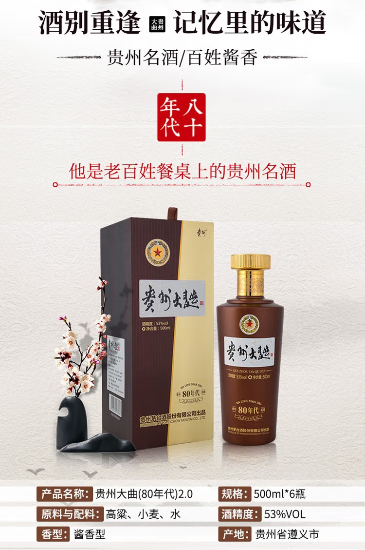 【单瓶183】茅台股份 贵州大曲酒 80年代 酱香型白酒 53度500ml*6瓶