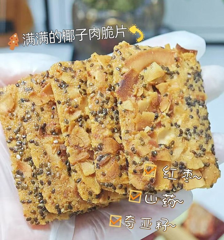 有没有姐妹超爱椰子味的东西. 这款椰子脆“咔嚓、咔嚓、咔嚓”'凊脆酥香!还结合山药 红枣等营养成分. 真的爱了,感觉吃零食也能补到营养.一下子吃掉好几包. 🥛记得小时候在学校饿了就很想身边有包饼干, 现在上班了随时可以选择自己爱的小饼干. 🧇感觉分分钟实现了小饼干自由呀, 无比的香醇的椰子脆,椰奶味配合饼干,美味与营养兼具,超解馋超裹腹. 香香脆脆,早上随便吃或者着急出门带在包里. 分分钟解饿又解馋!!!