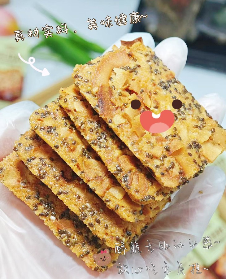 奇亚籽+红枣+山药+椰子脆.👏👏👏 一看配料就知道是好料的饼干. 这么多营养的配料融合成一款酥脆的小饼干, 简直就是绝到大家的心巴上了? 第一块拿出,第一口尝到,就开始惊叹!!!😋 这是什么神仙美味小饼干啊!简直就是人间小美味! 简直大爱啊啊啊! 连早8党都超爱它‼‼当早餐妥妥美味又饱腹哦.