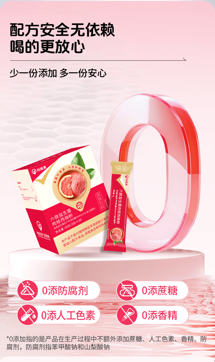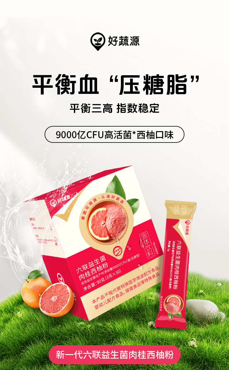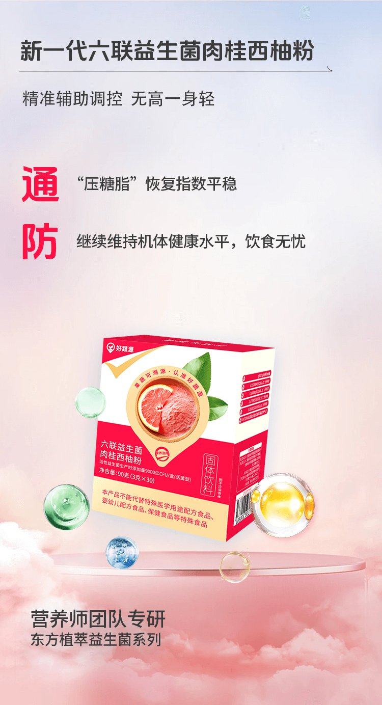 【临期】【100积分+39.9元】好蔬源 六联益生菌肉桂西柚粉 3g*30条/盒 科学配比(商品有效期至2026/3/27)