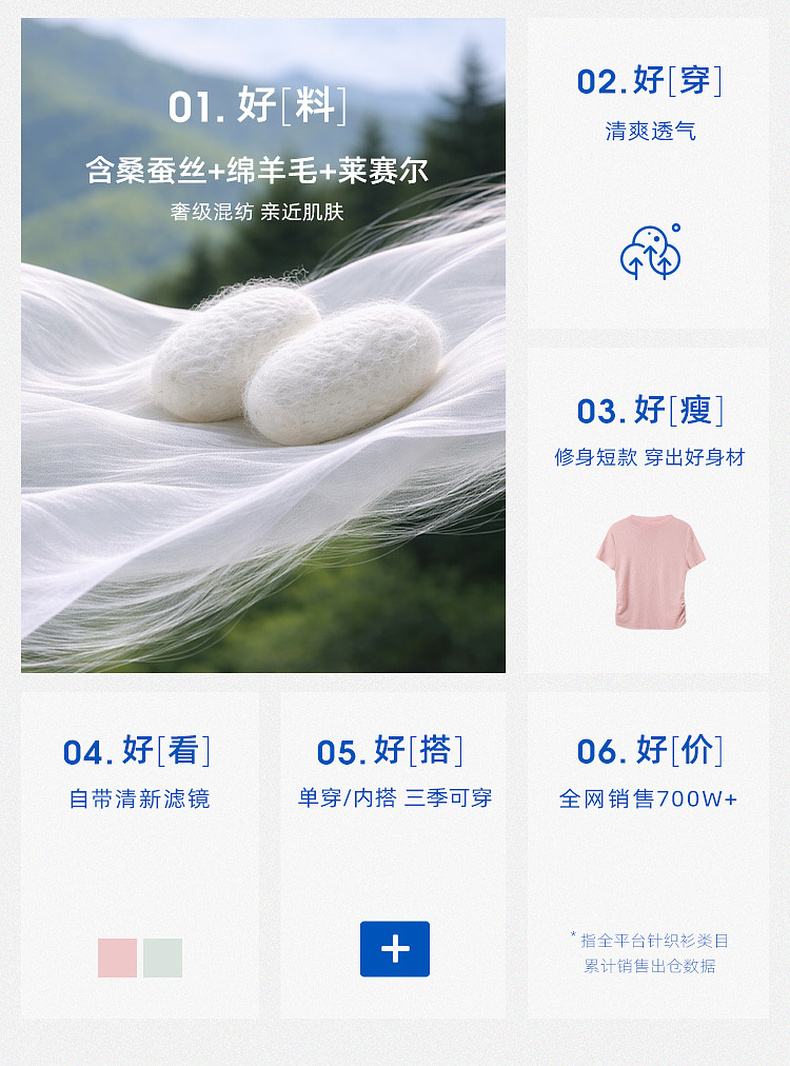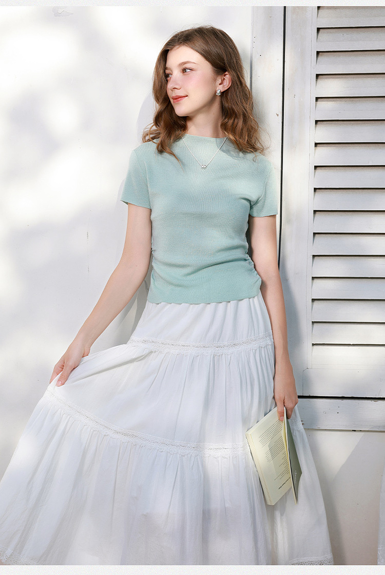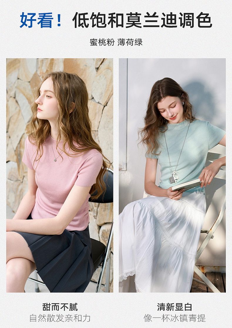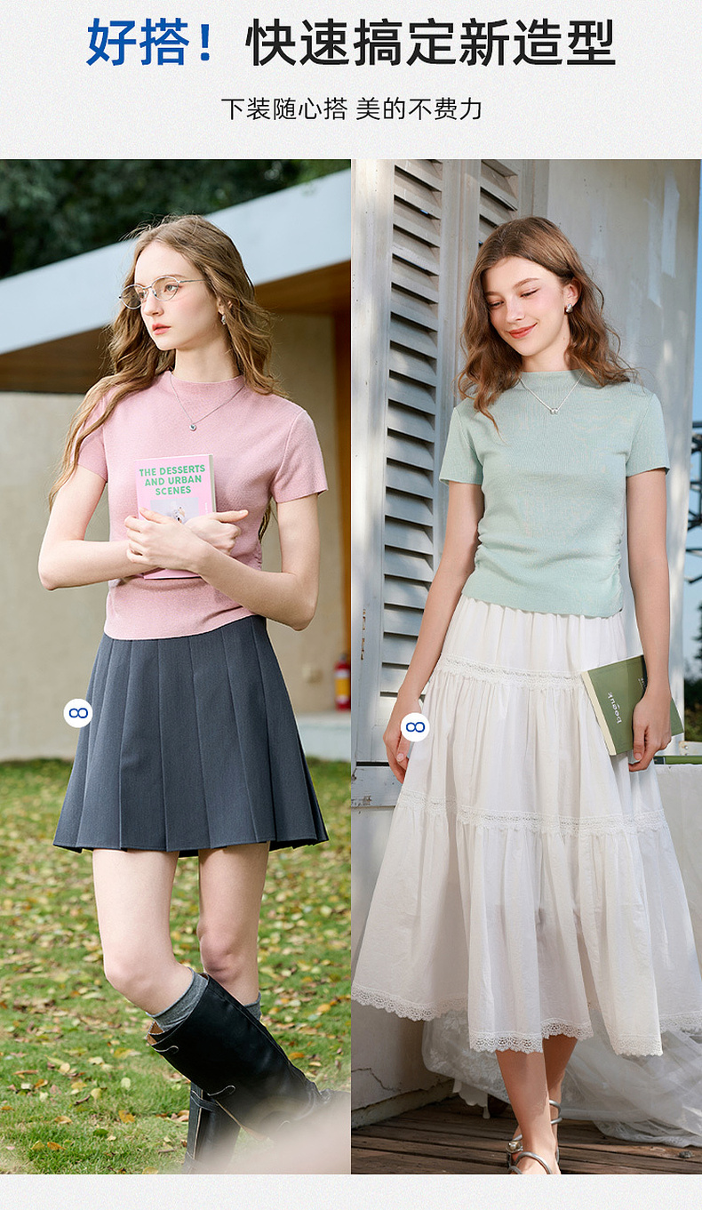 三彩2026春季新款修身短款套头针织衫立领短袖收腰毛衫纯色气质Z
