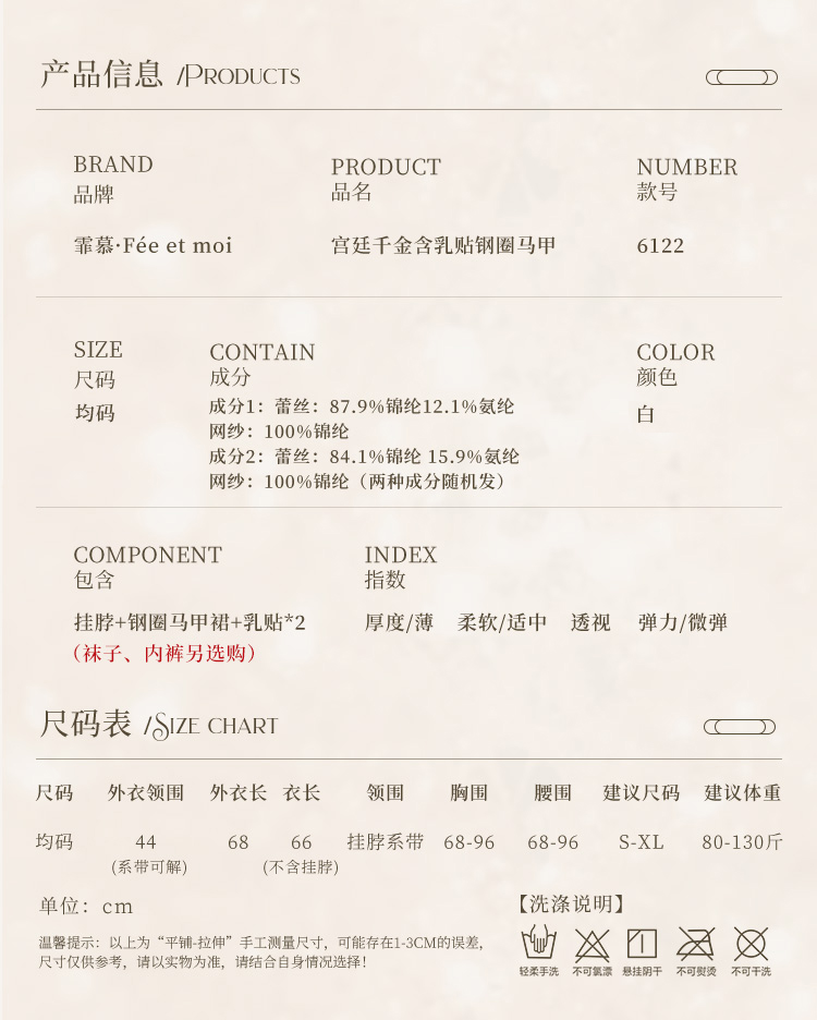 【情趣内衣】霏慕宫廷千金含乳贴钢圈马甲6122