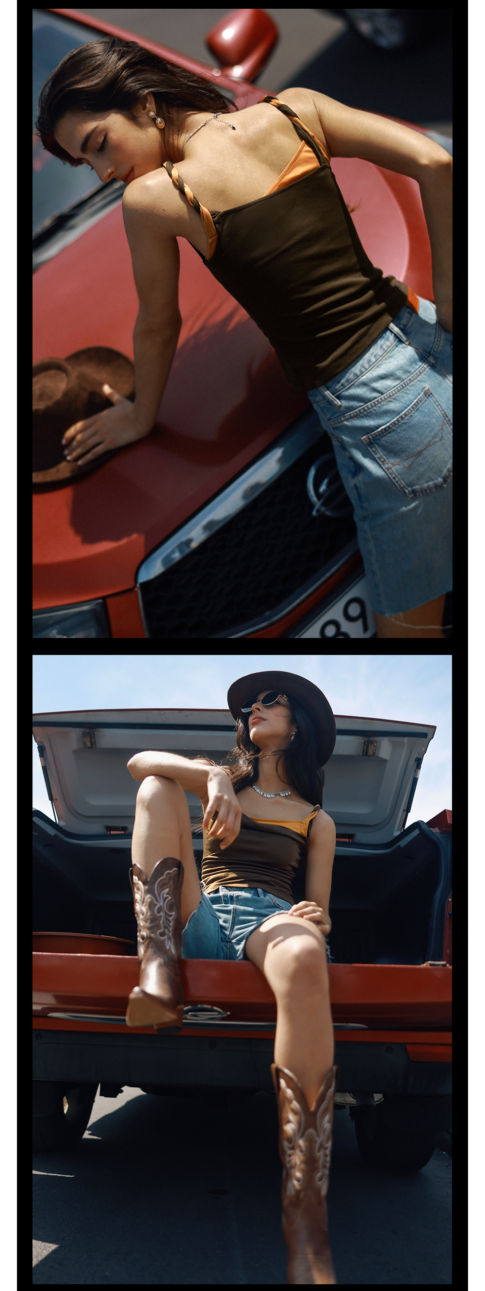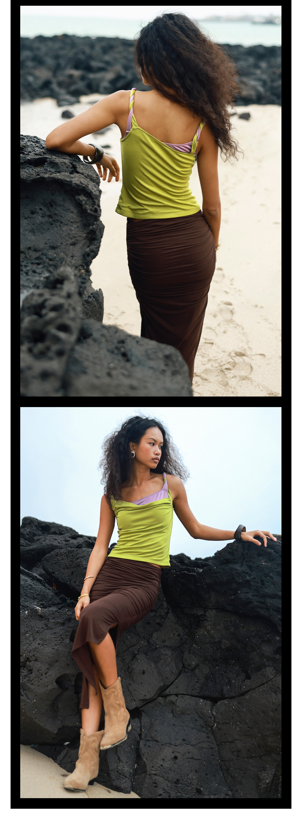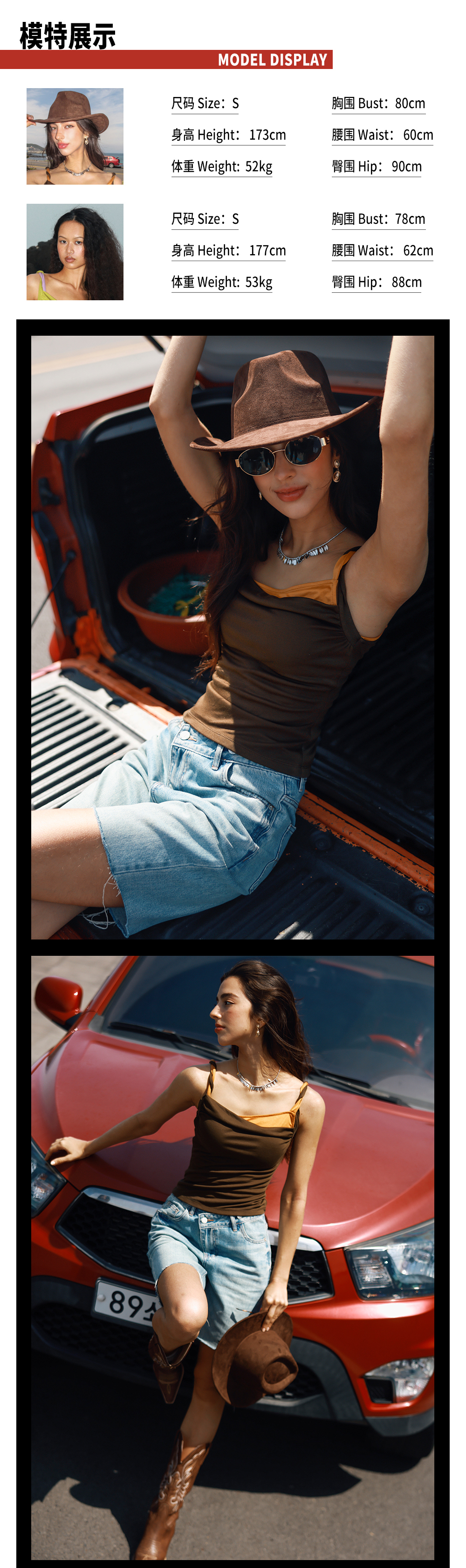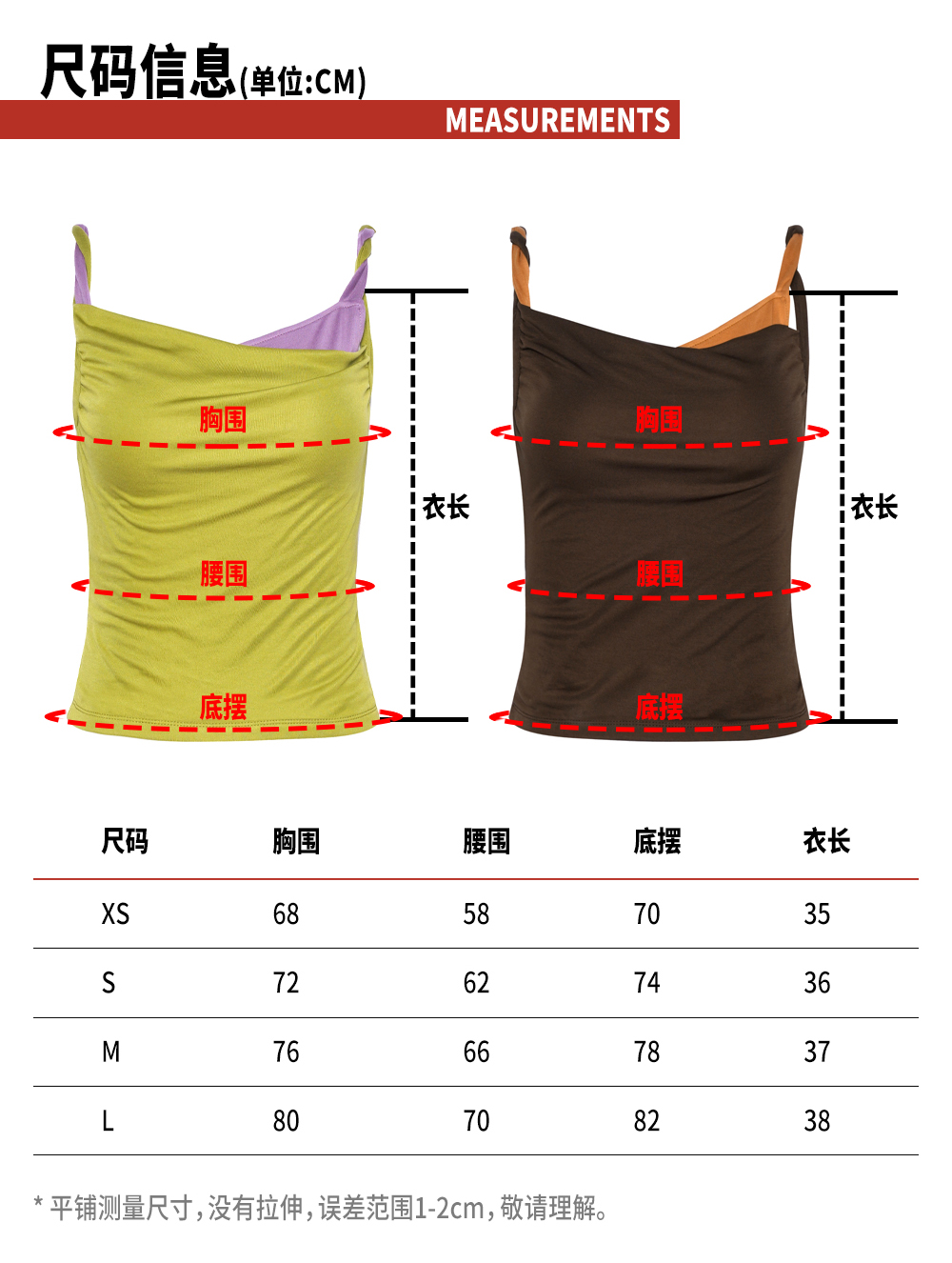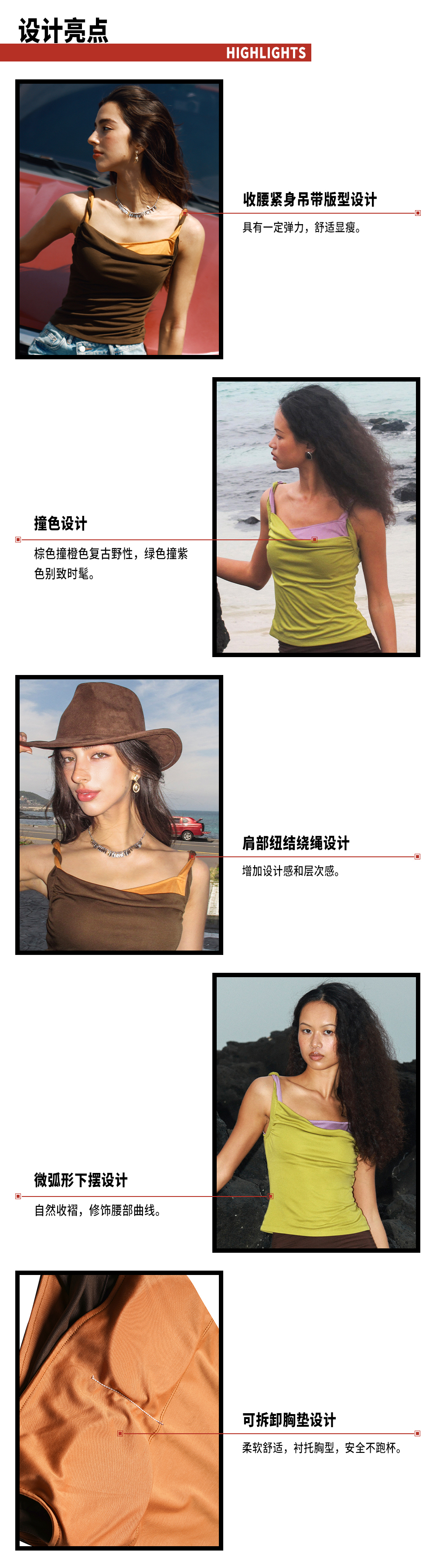 TR她热 沙漠绿洲 棕色绿色弹力撞色带胸垫百搭纽结显瘦收腰吊带背心