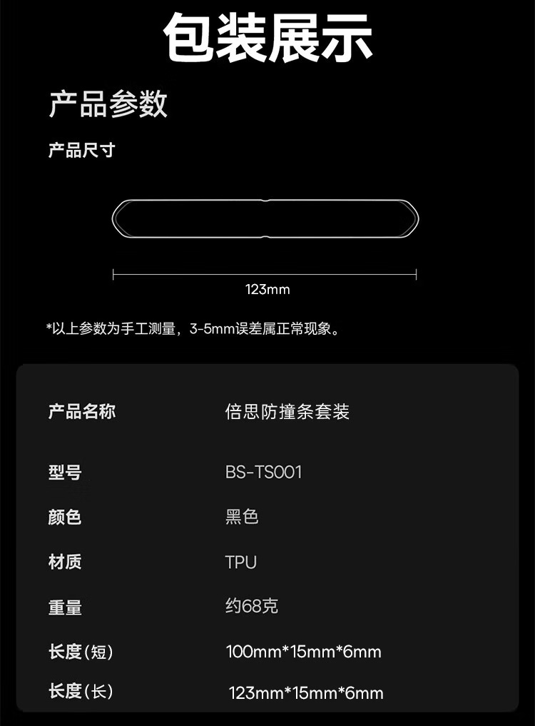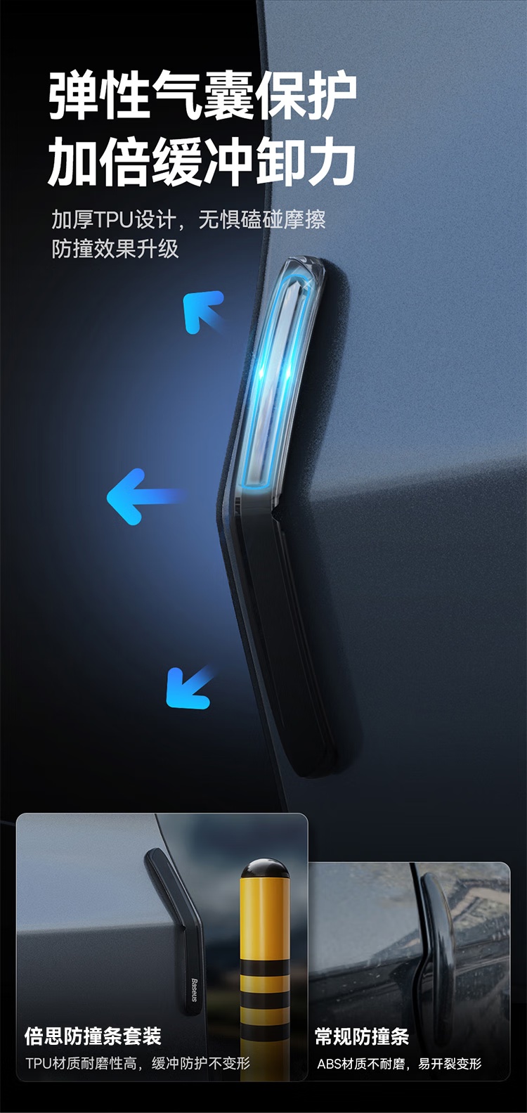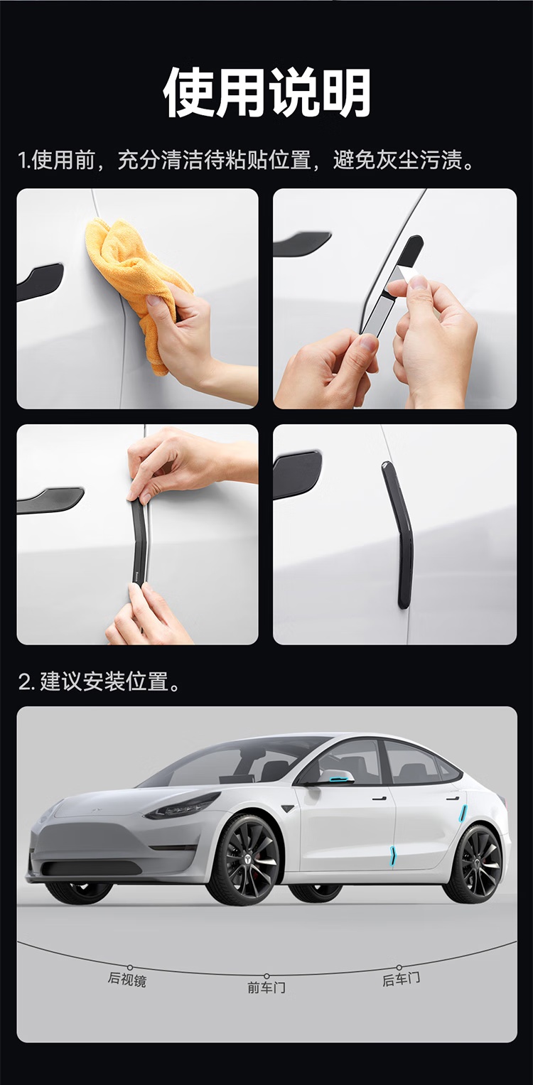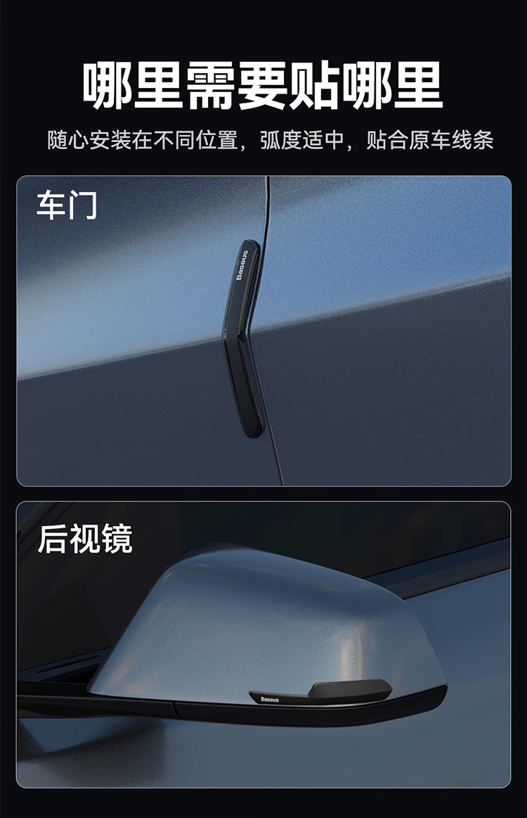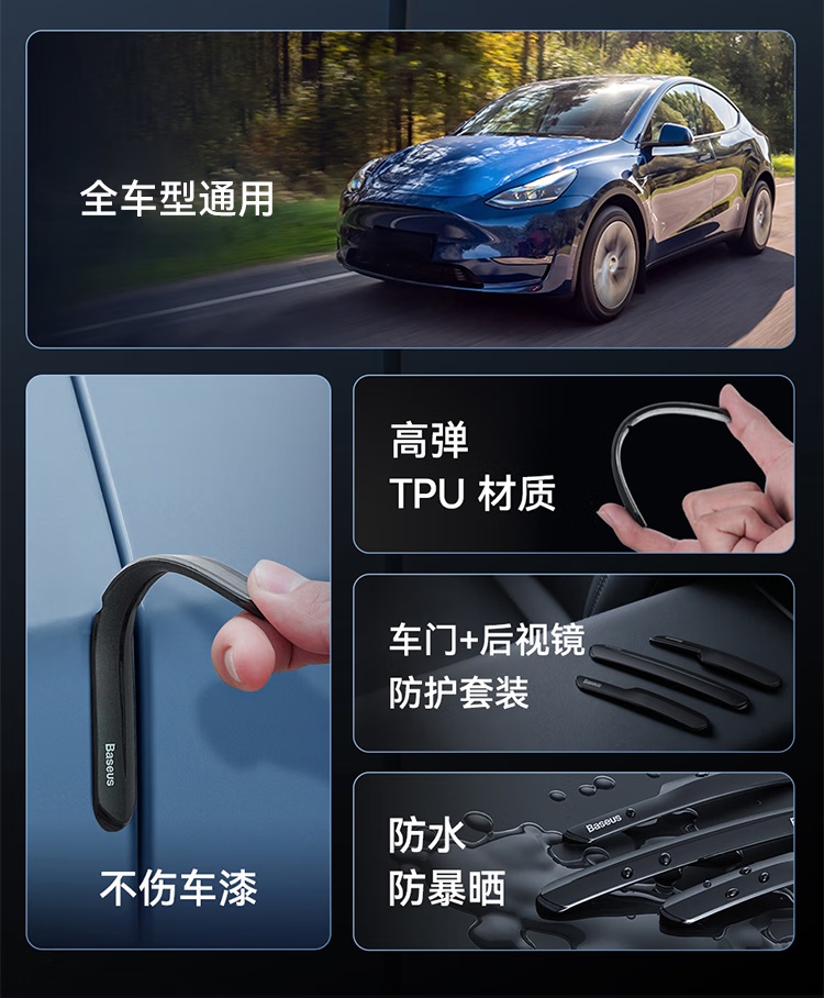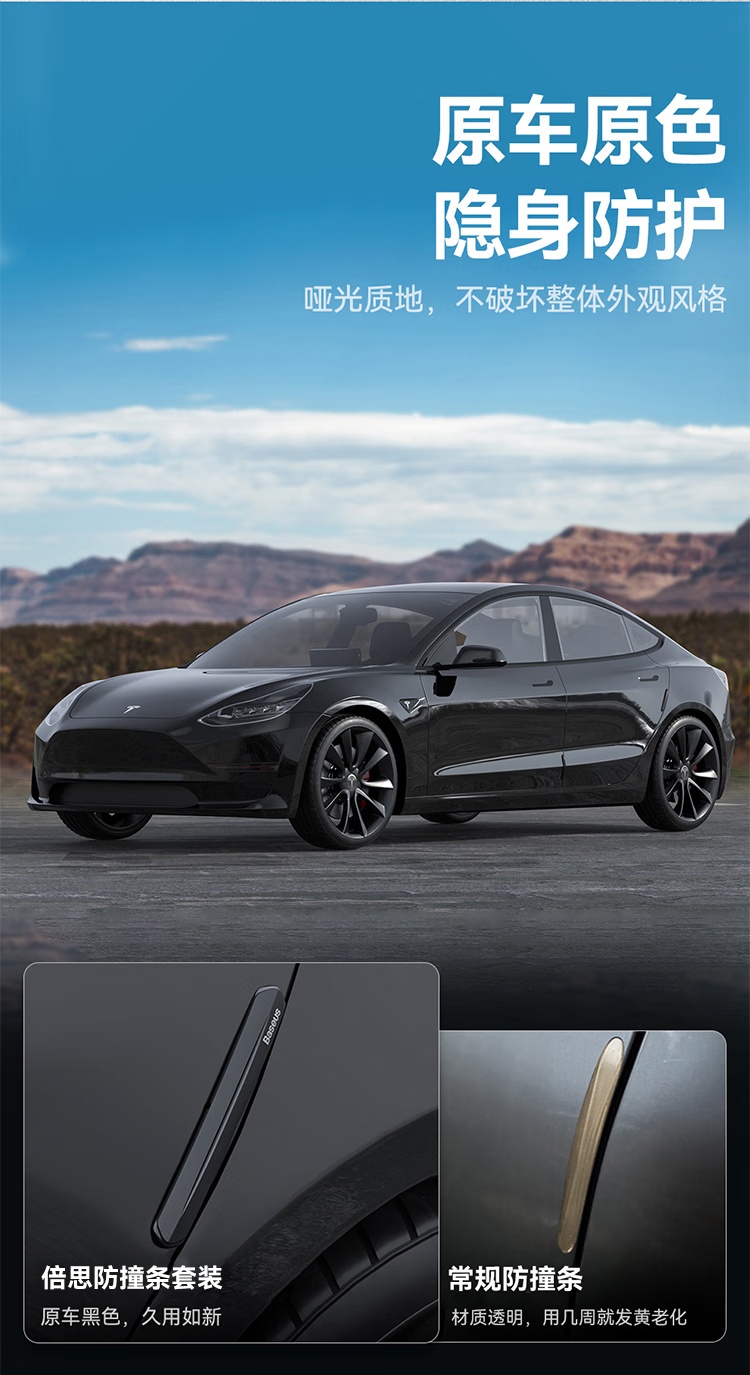 【京东买家评价5w+】倍思(BASEUS)汽车车门T-Space防撞条套装 特斯拉专用防刮蹭神器 星耀黑