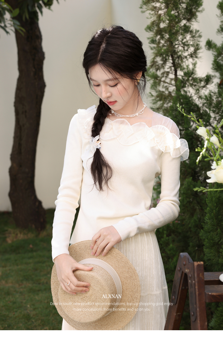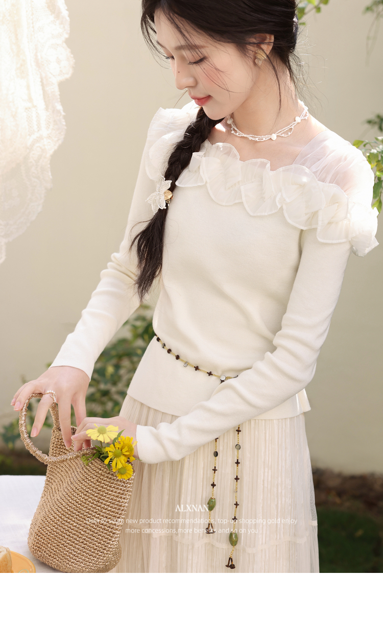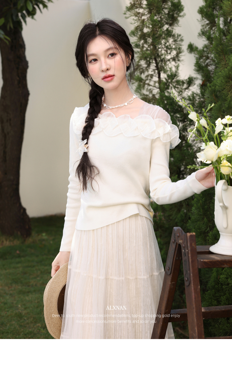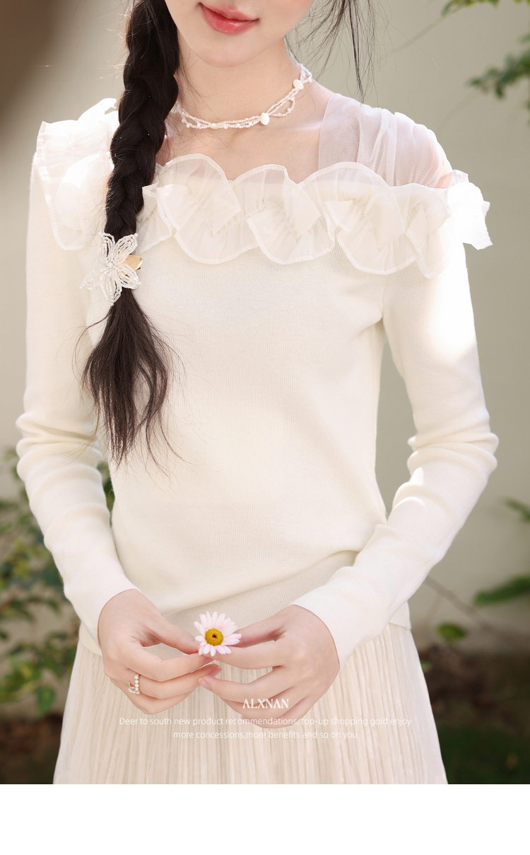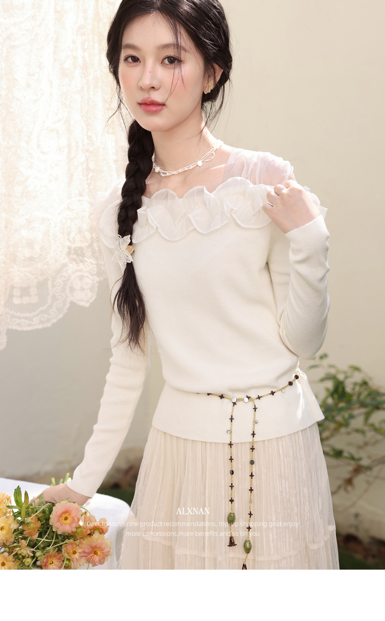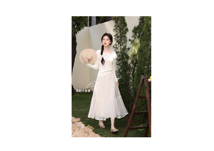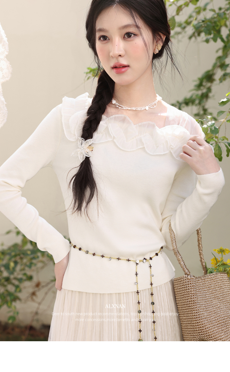 鹿向南「山茶花香」法式温柔杏色长袖方领针织衫女春季设计感上衣