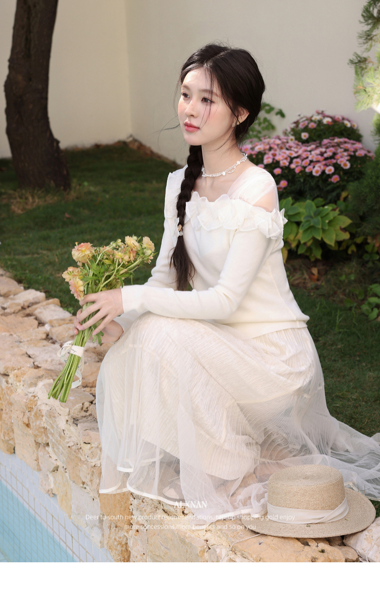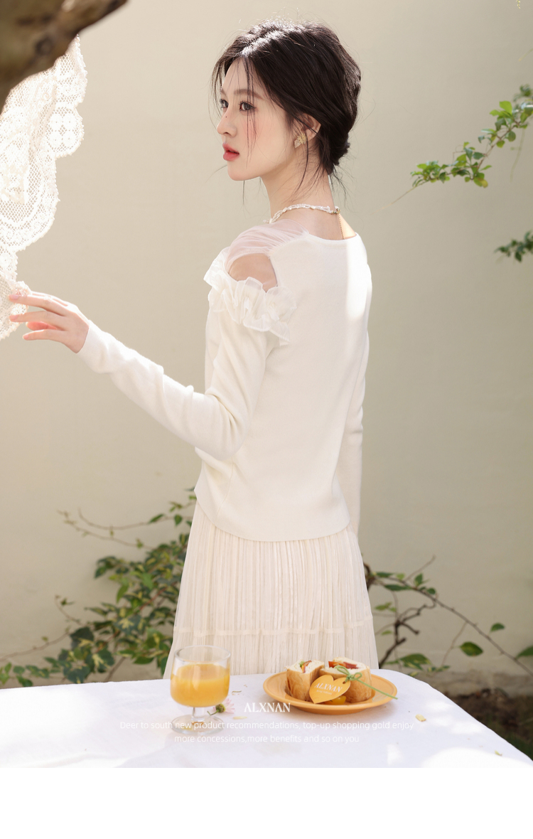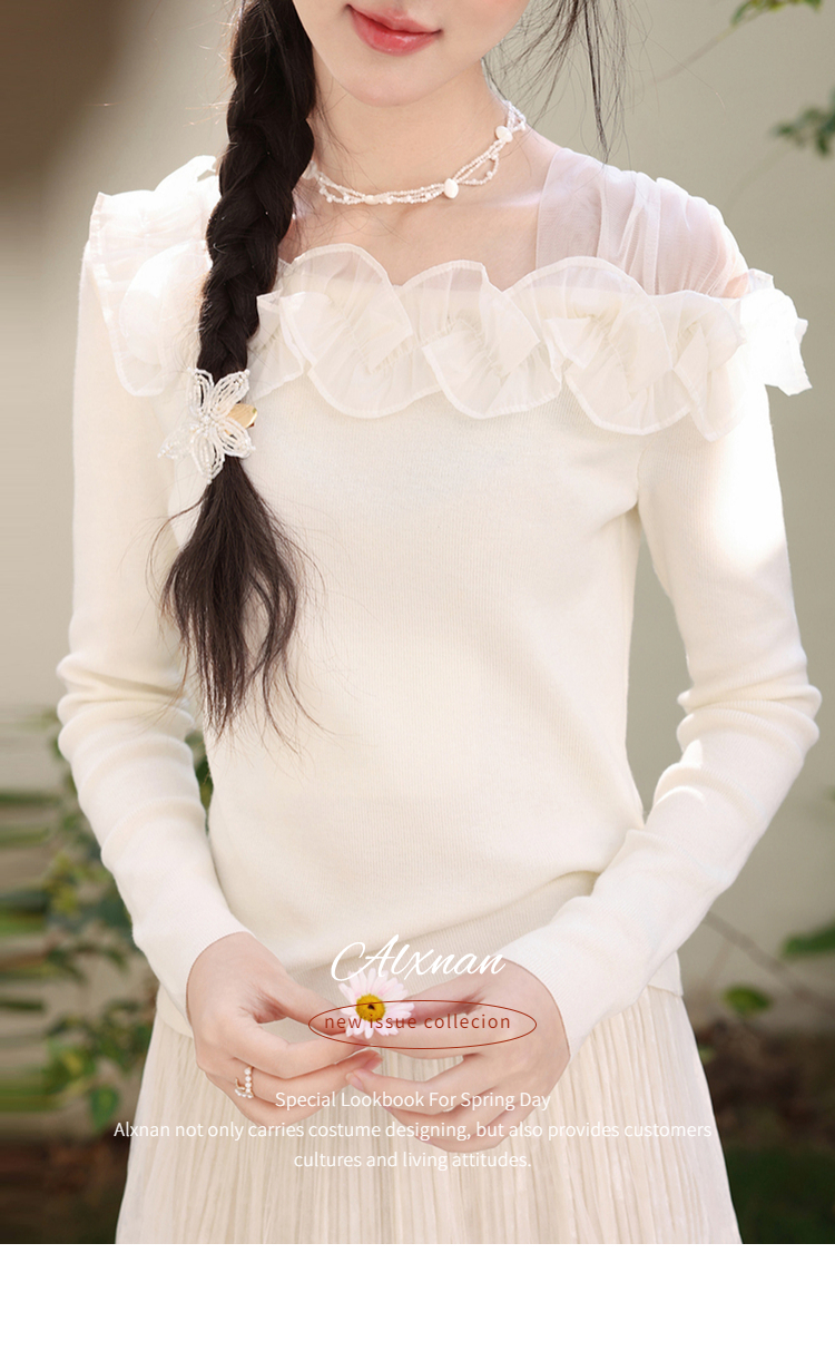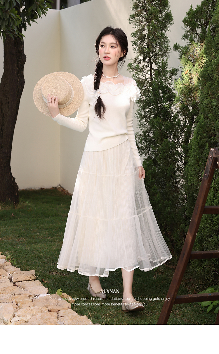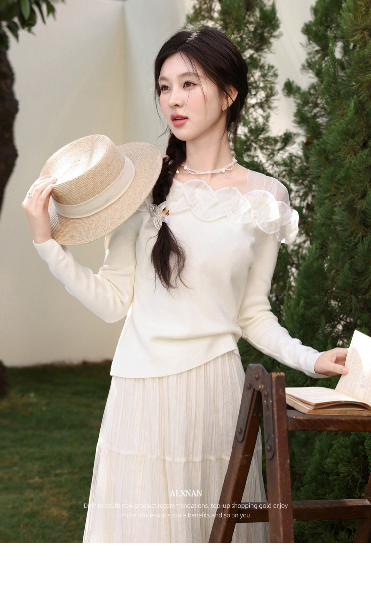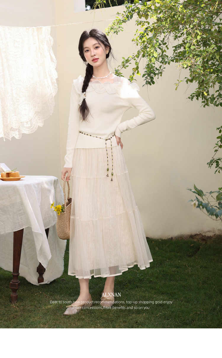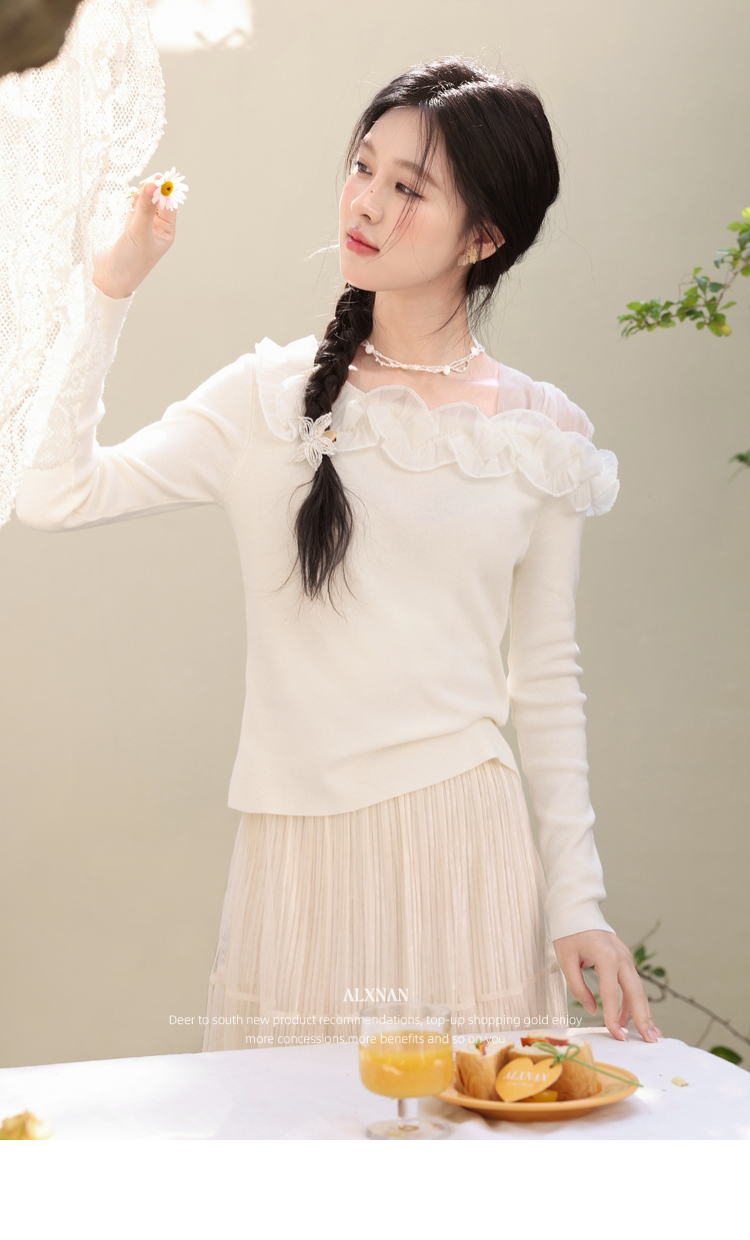 鹿向南「山茶花香」法式温柔杏色长袖方领针织衫女春季设计感上衣