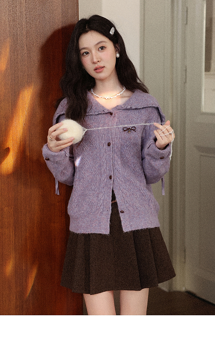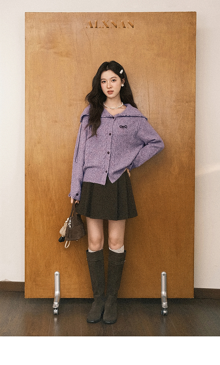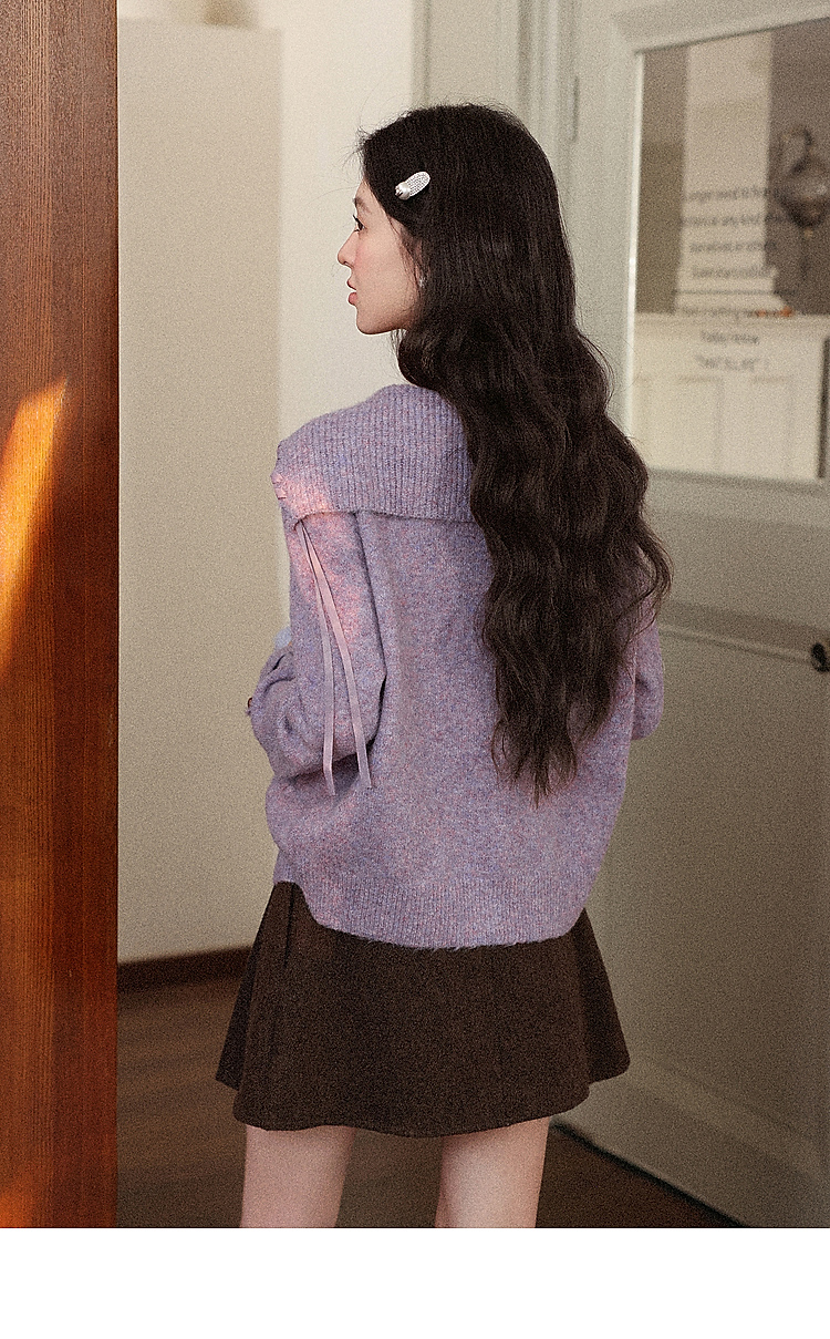 鹿向南「私藏浪漫」紫色大翻领长袖毛衣秋冬新款时尚氛围感上衣女