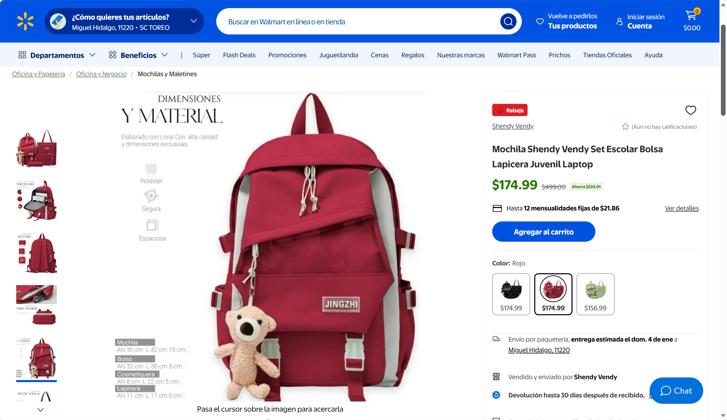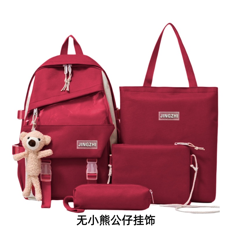美国沃尔玛 JINGZHI 双肩包单肩包4件套 时尚帆布书包(无小熊公仔)