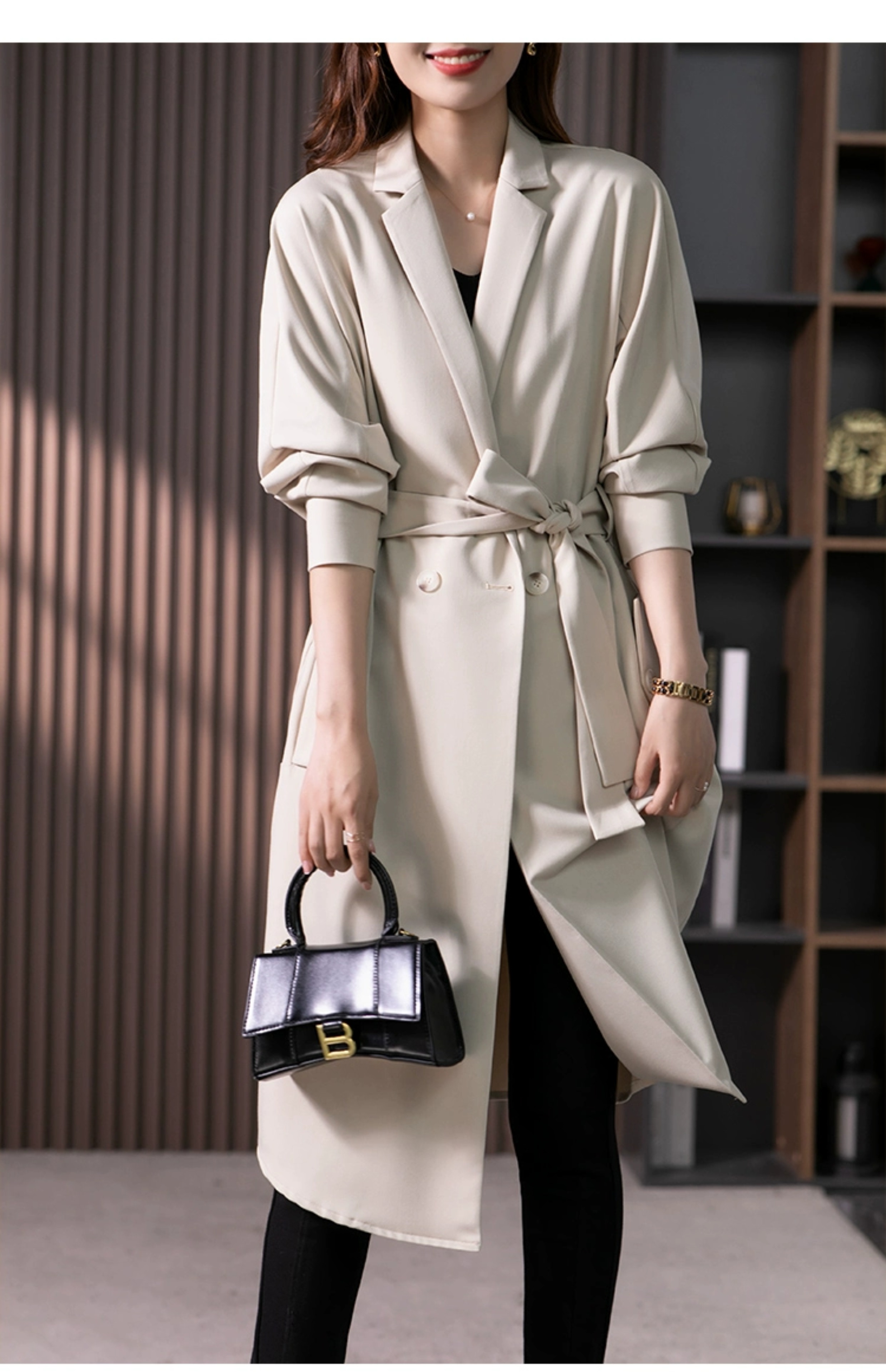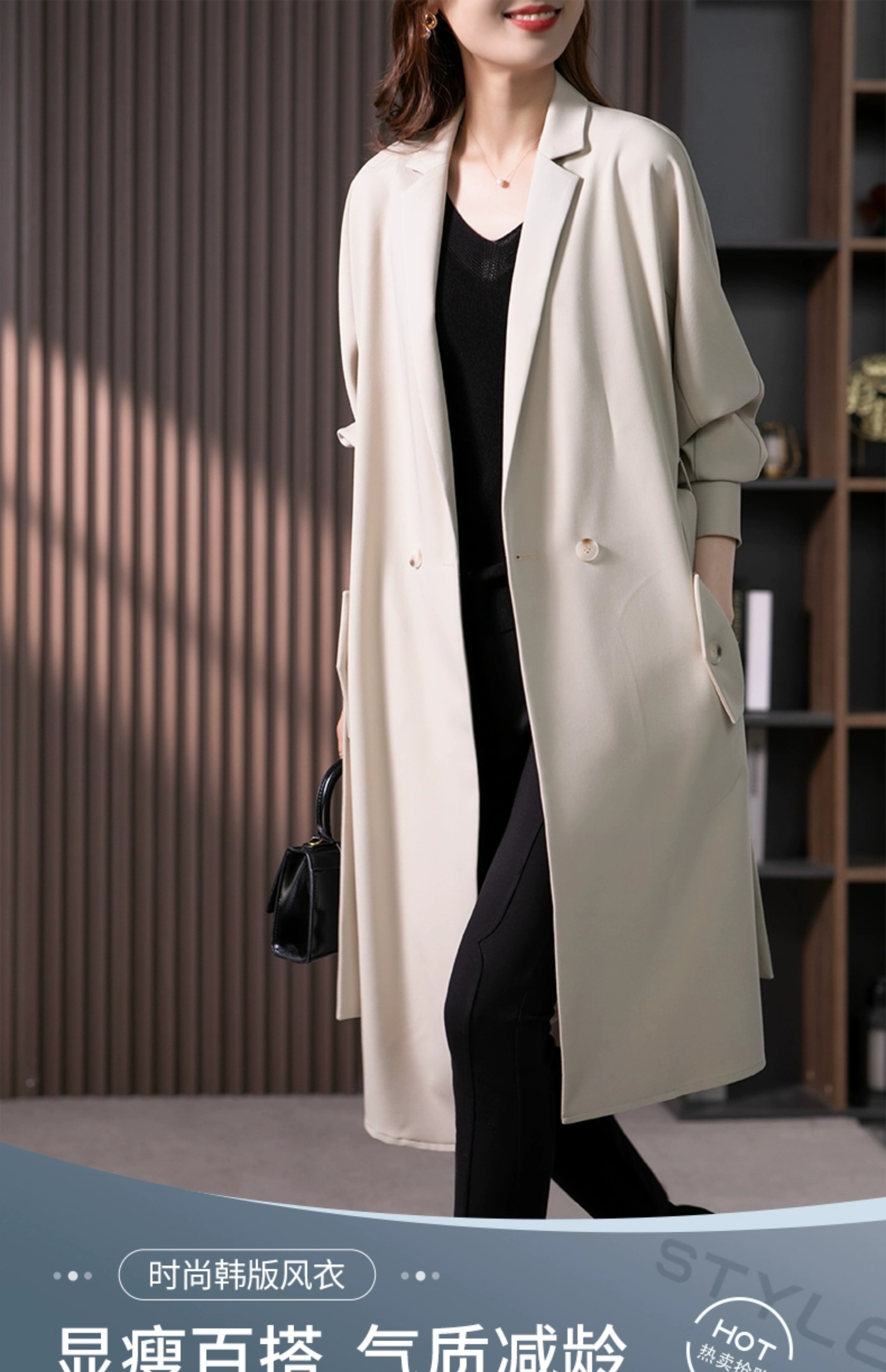 【现货7天】高级感气质风衣女长款2023春秋新款韩版收腰系带休闲百搭外套