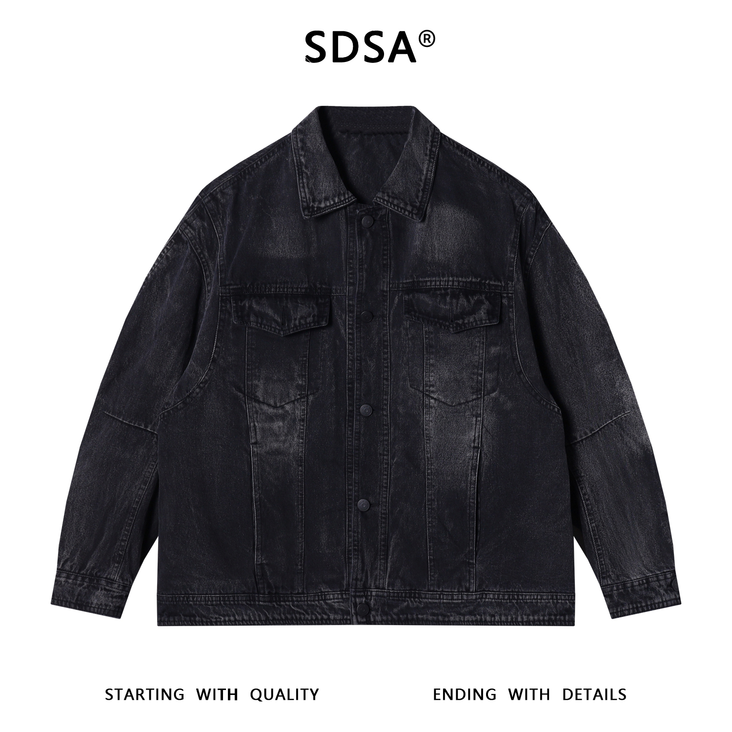 250113SDSA男士秋冬新款痞帅男装韩版简约磨白翻领牛仔外套百搭时尚夹克