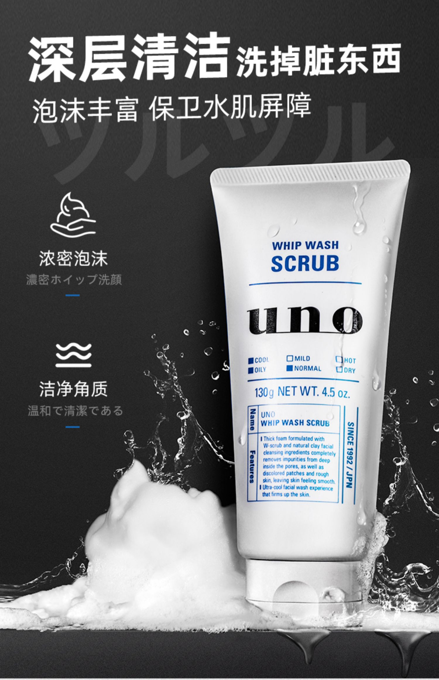 【保税仓】资生堂 UNO吾诺男士洗面奶蓝色