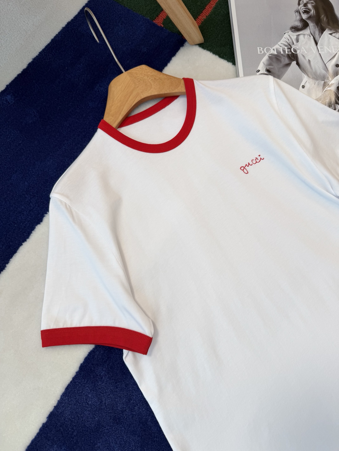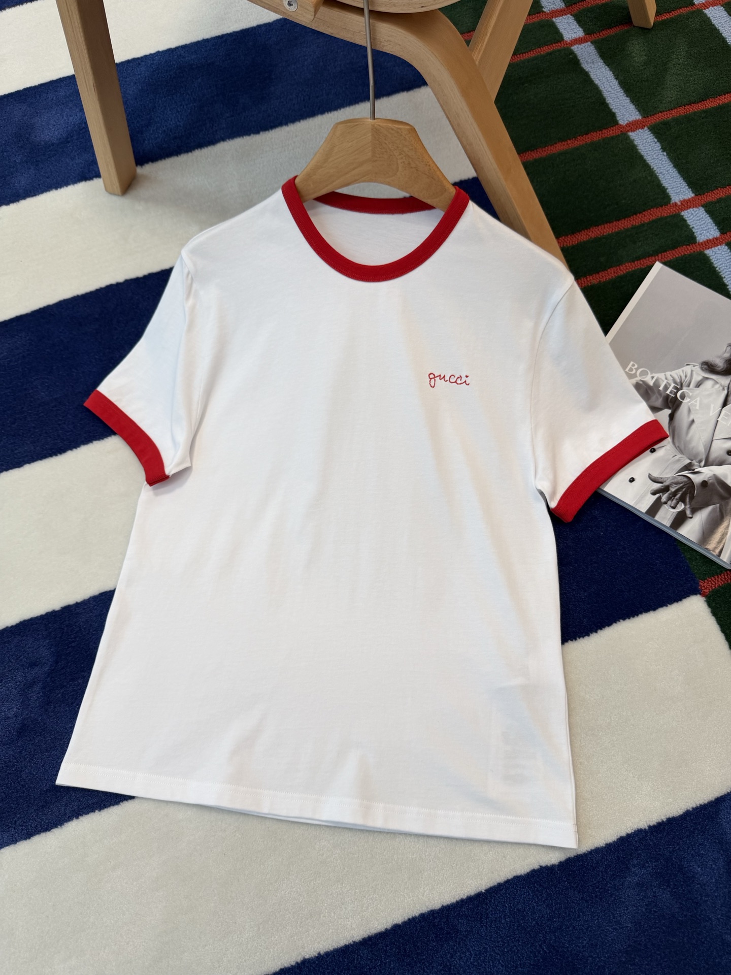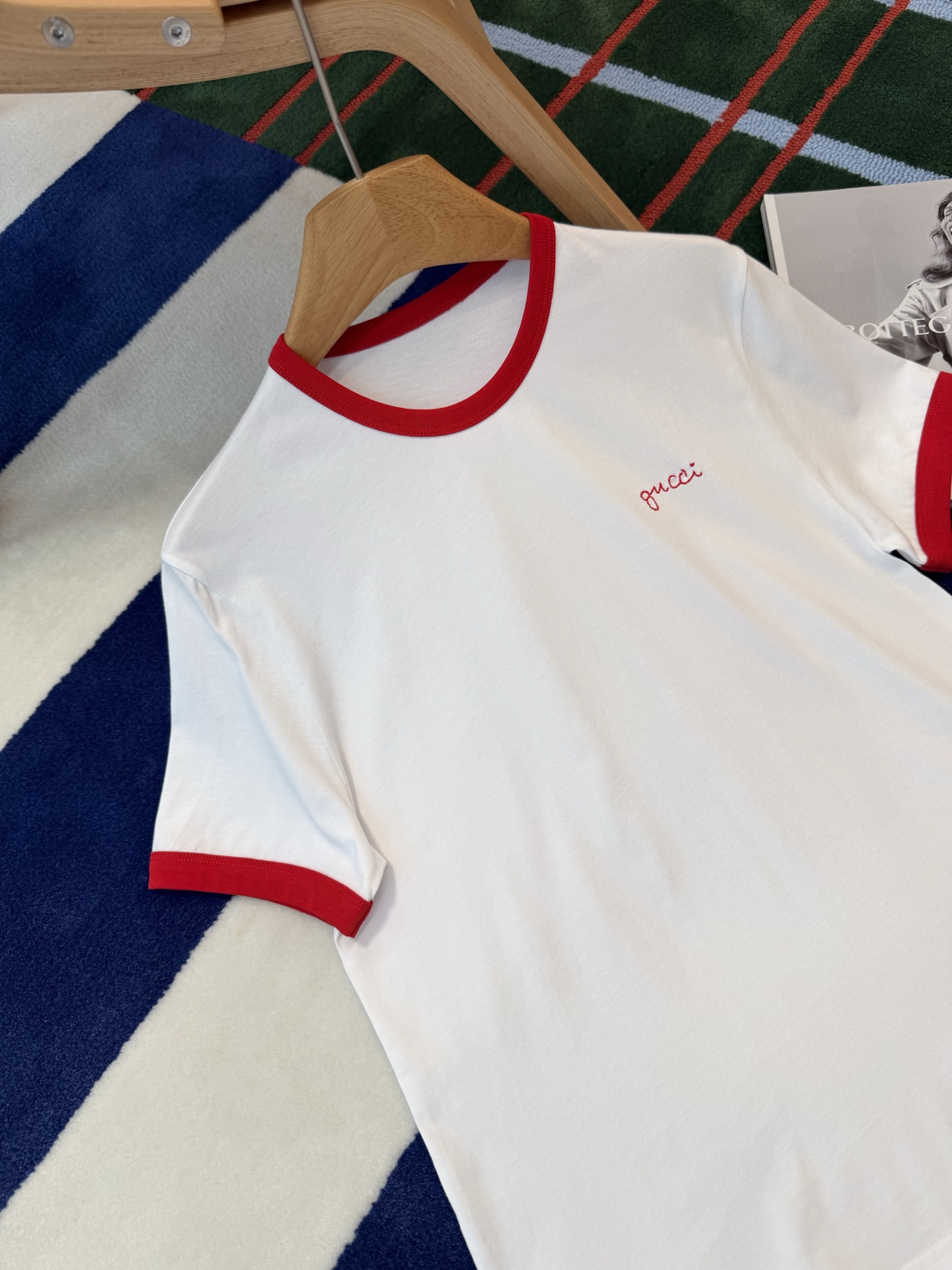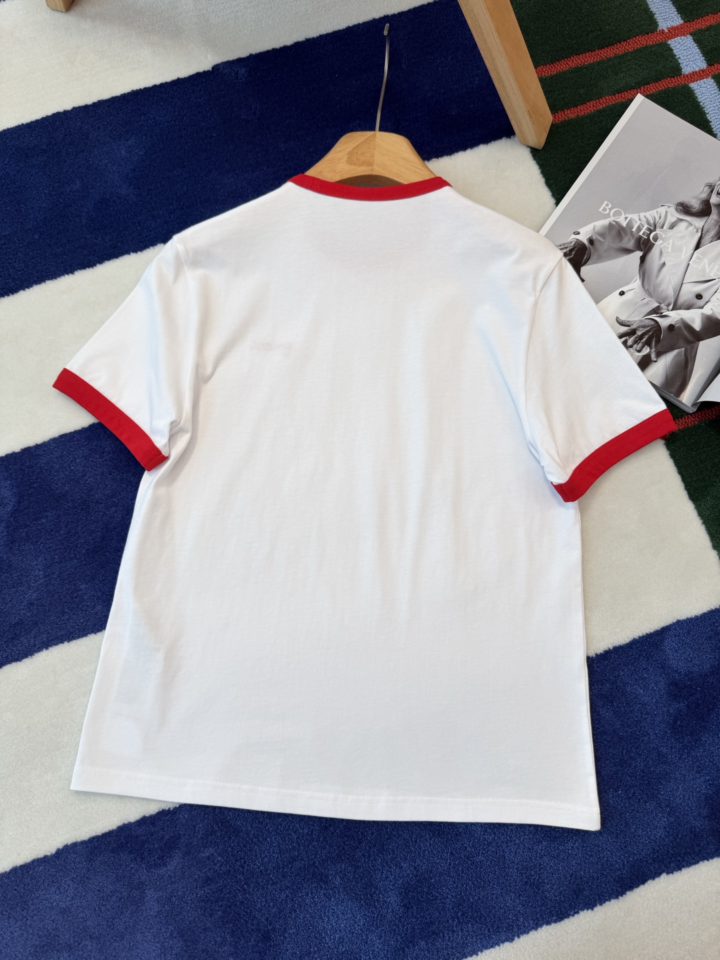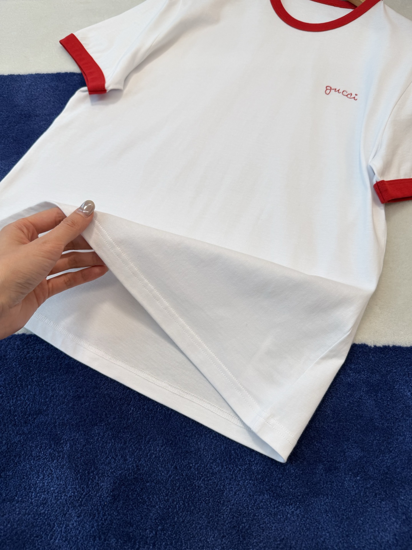 衣柜里永远缺一件白T📸直到遇见它✨经典红白配色❗️利落又明媚😘像把夏日骄阳穿在了身上💯胸口的刺绣小字是不动声色的精致❤️看似随意🍓却藏着毫不费力的高级感🎶定织高支纯棉面料'手感细腻 上身亲肤透气😘不必用力凹造型📷一件就足够干净利落⚠️自带松弛贵气😎极简主义!